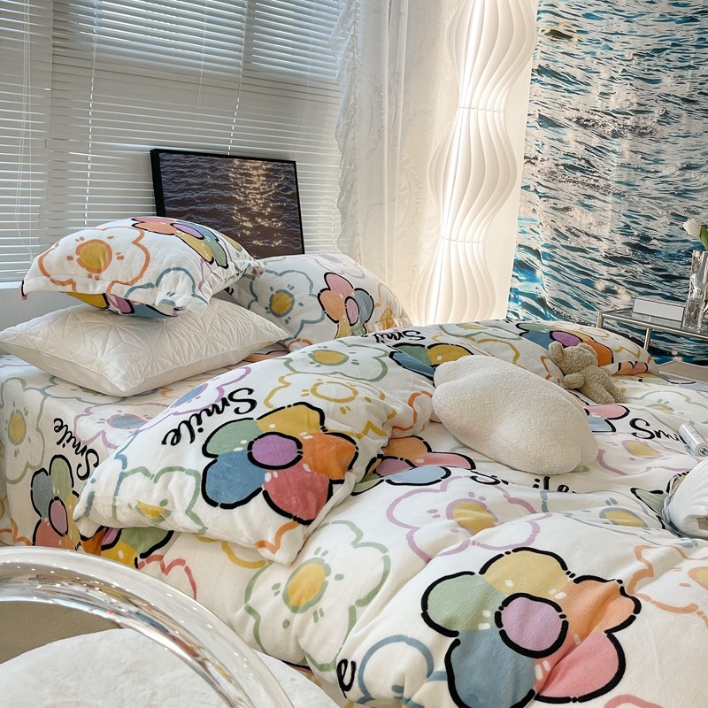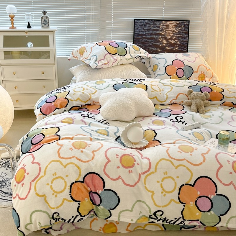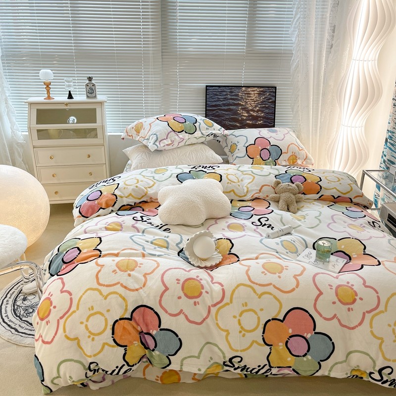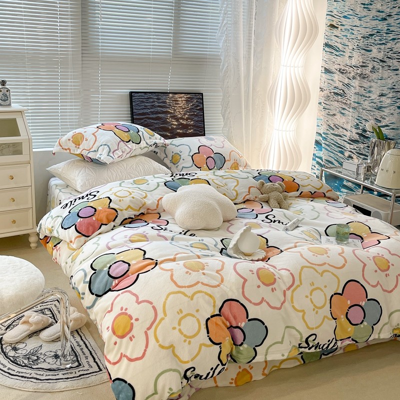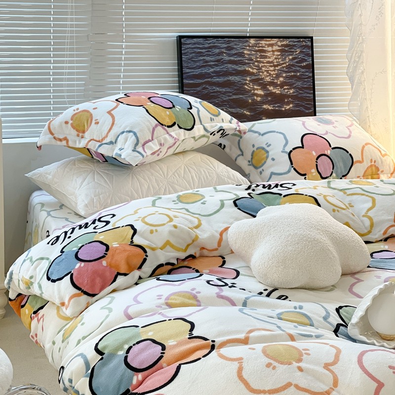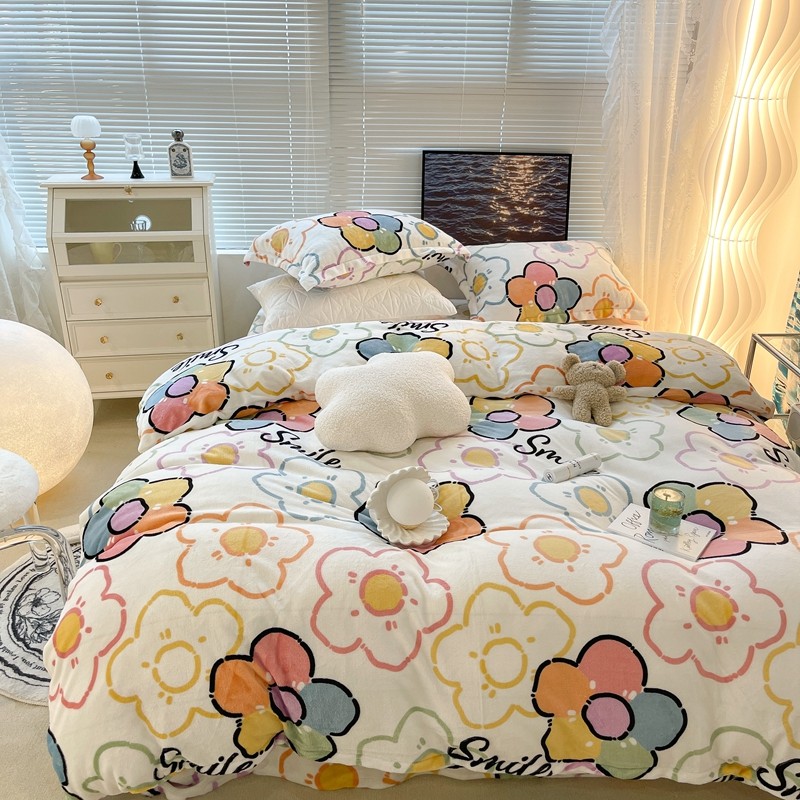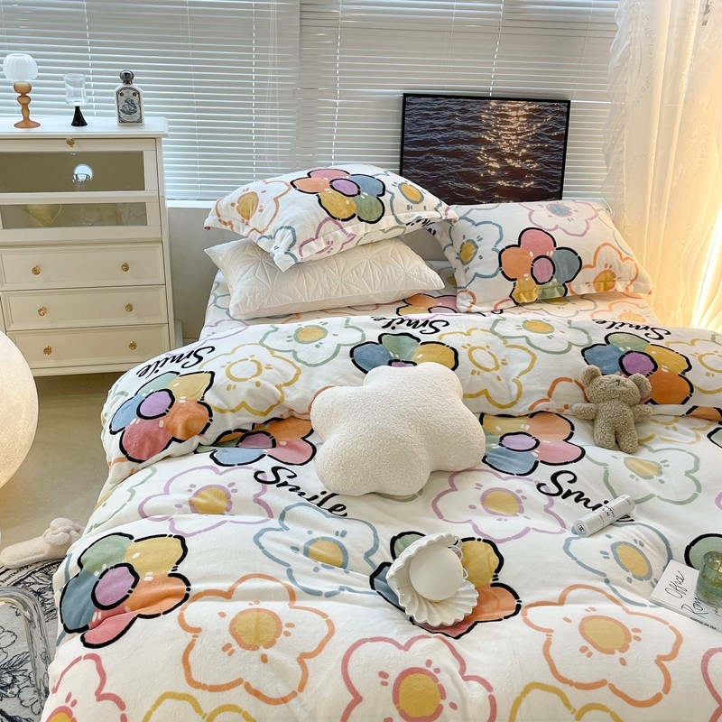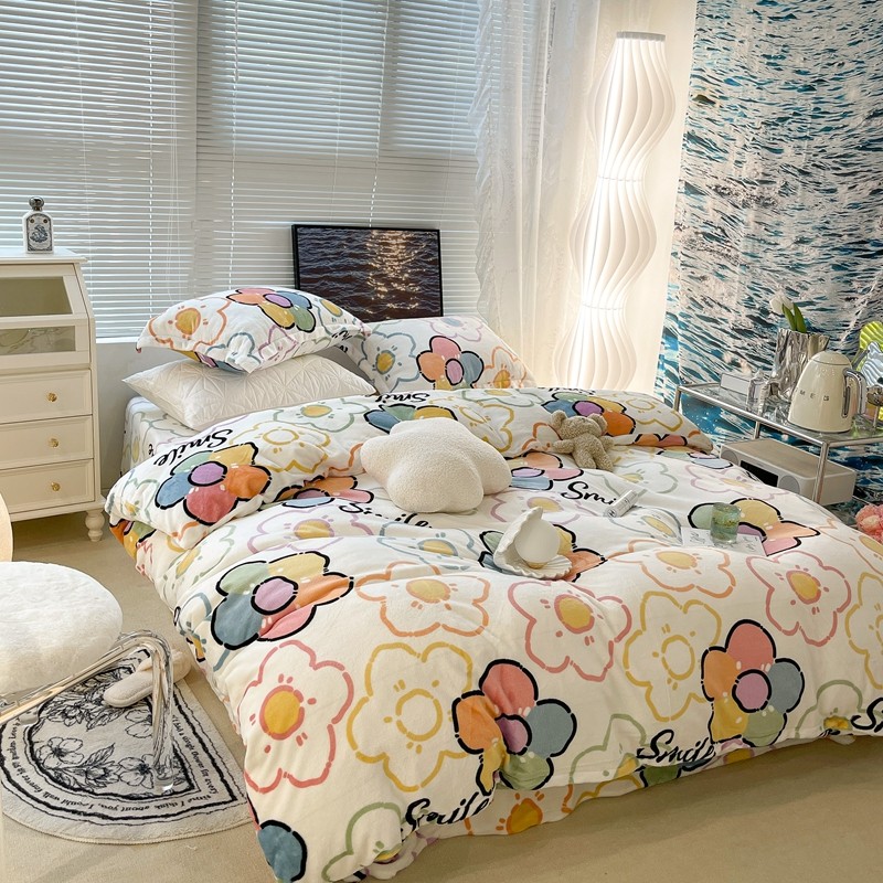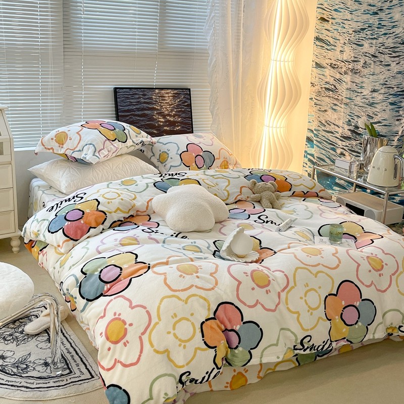 昔可家纺 2021新款牛奶绒四件套-一批 彩色微笑花