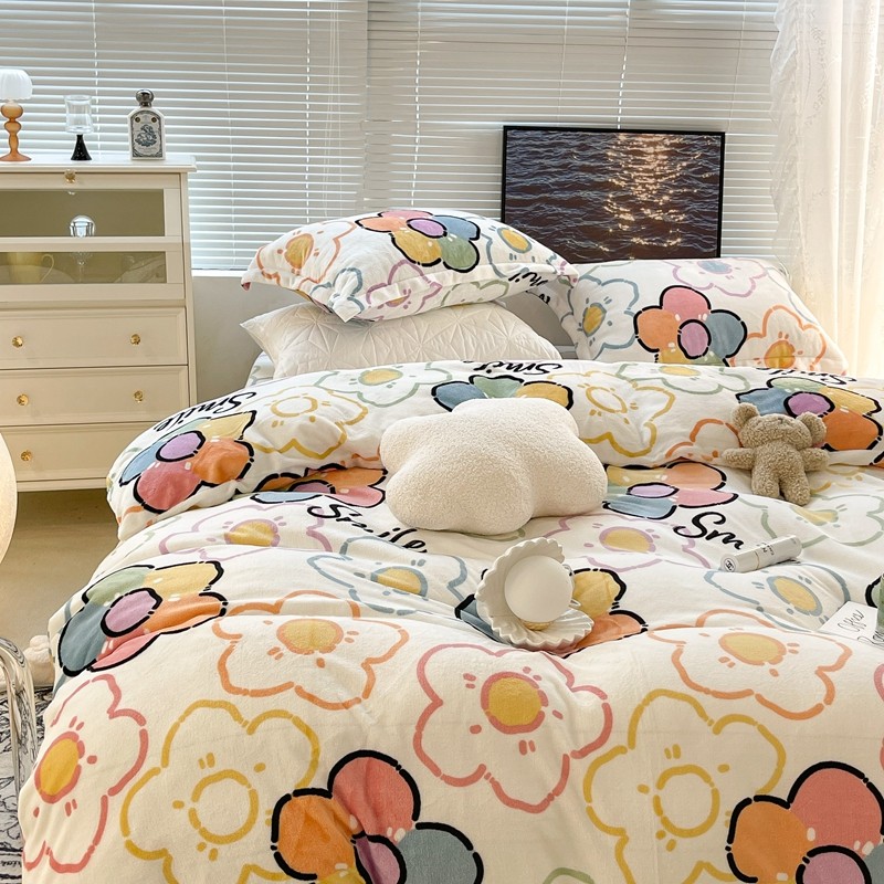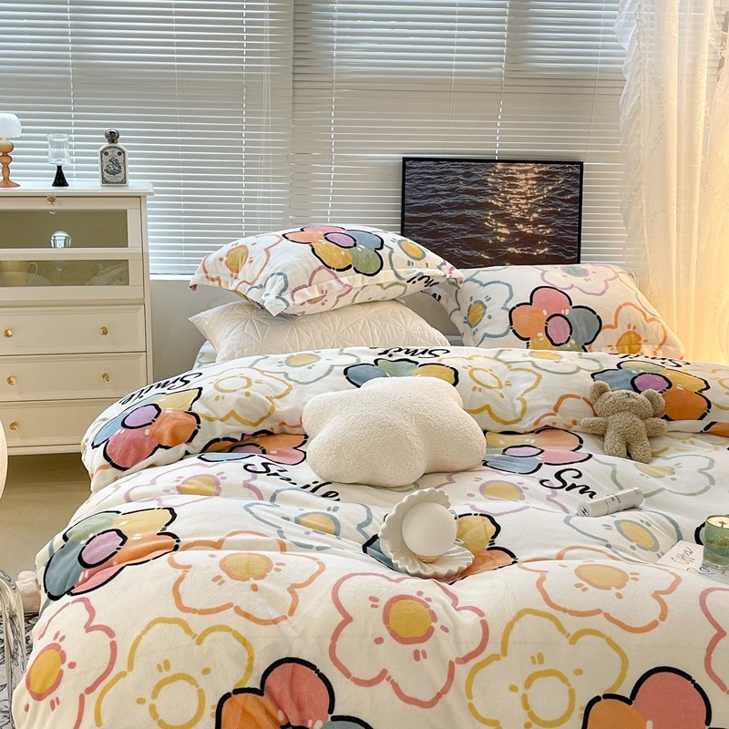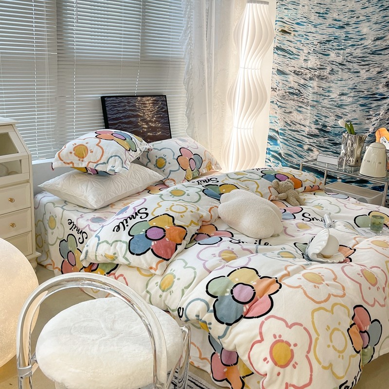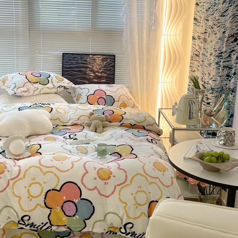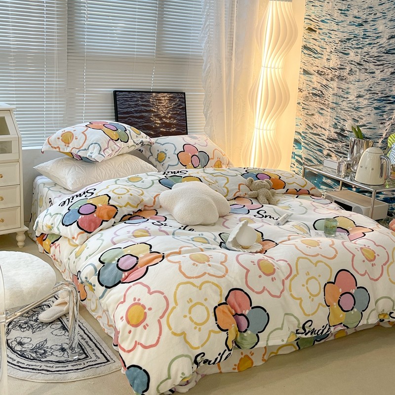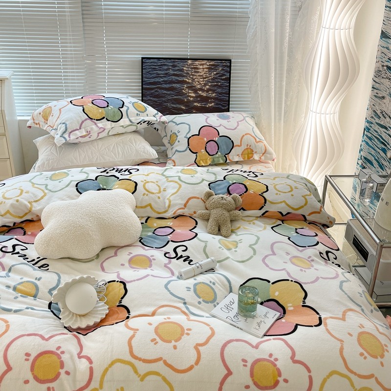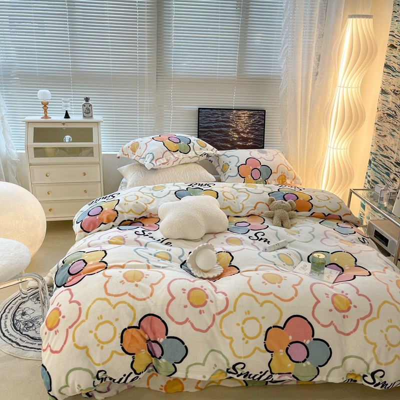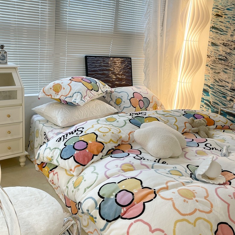 昔可家纺 2021新款牛奶绒四件套-一批 彩色微笑花