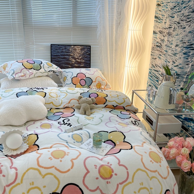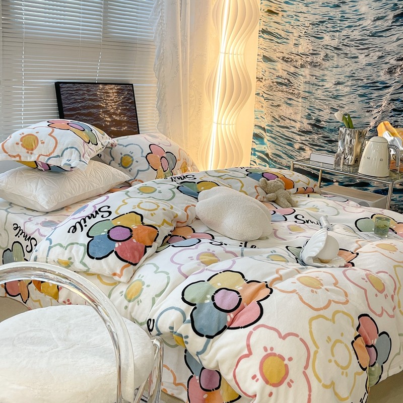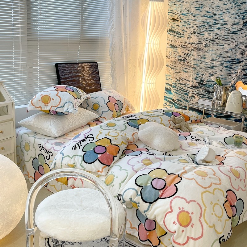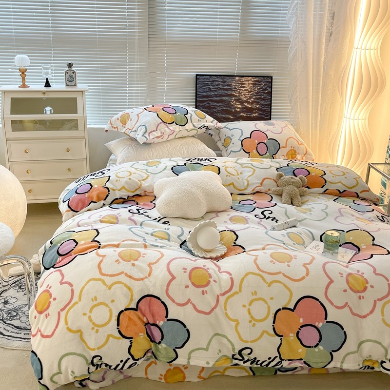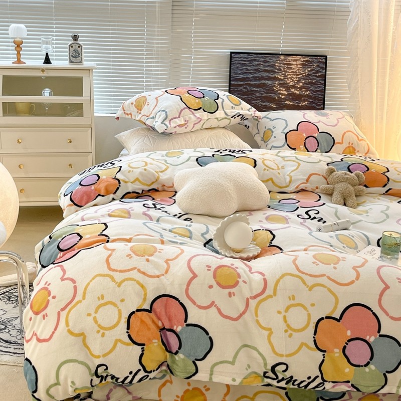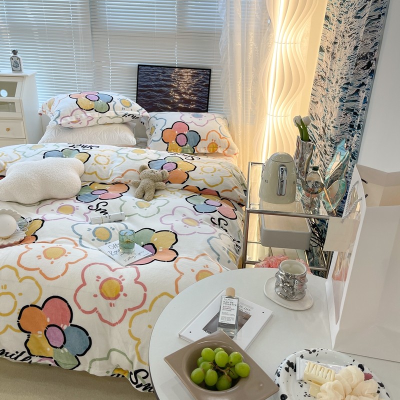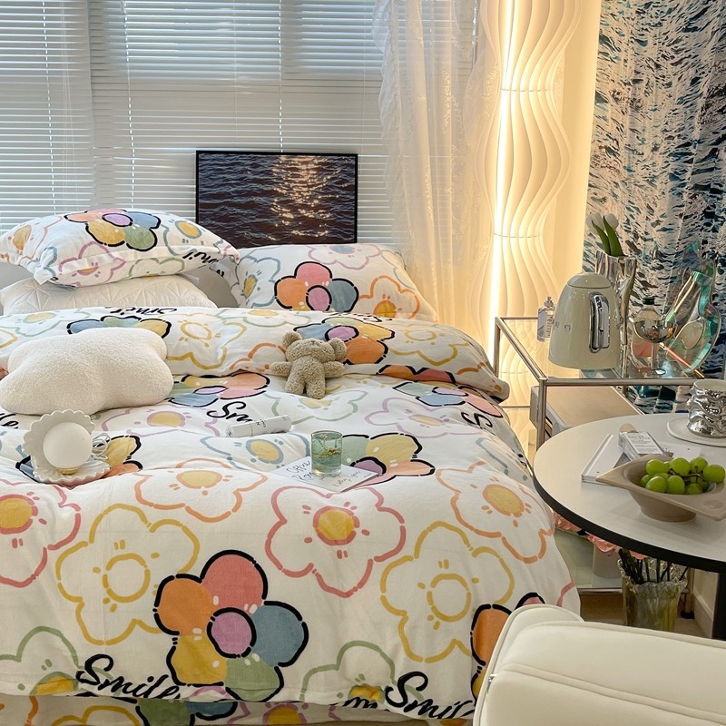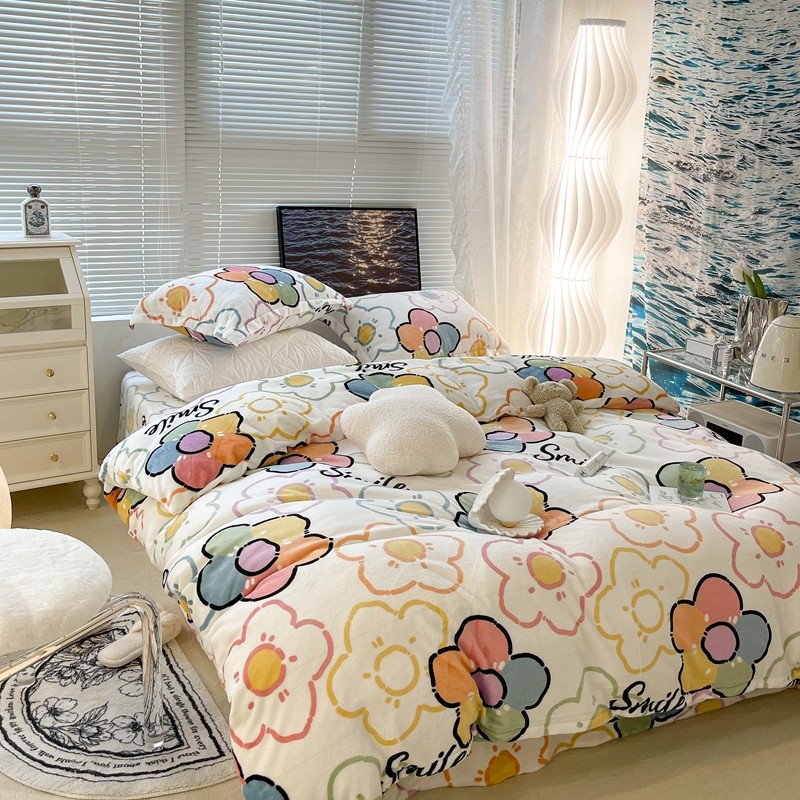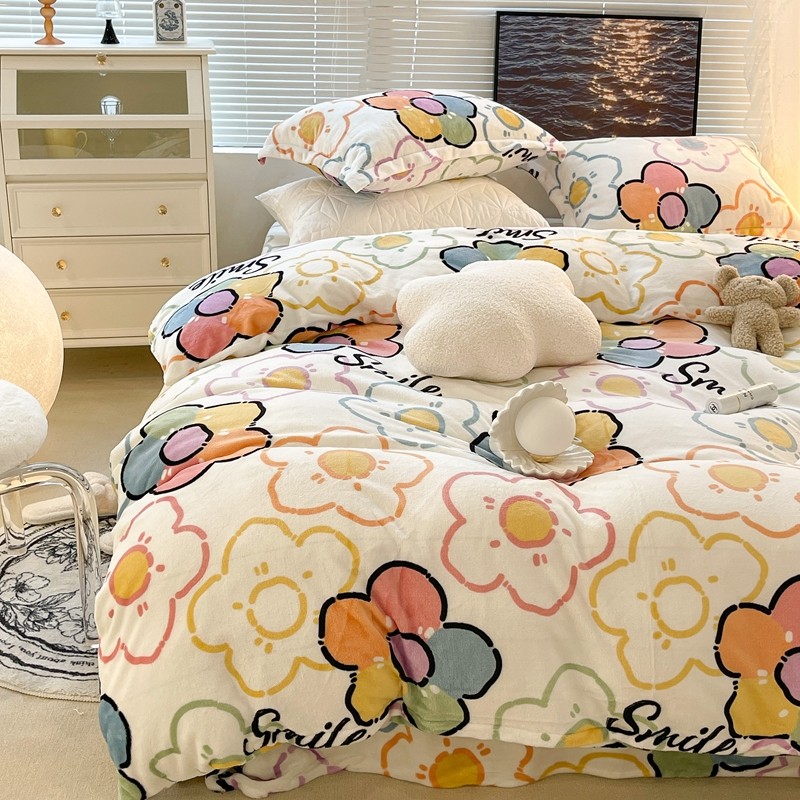 昔可家纺 2021新款牛奶绒四件套-一批 彩色微笑花