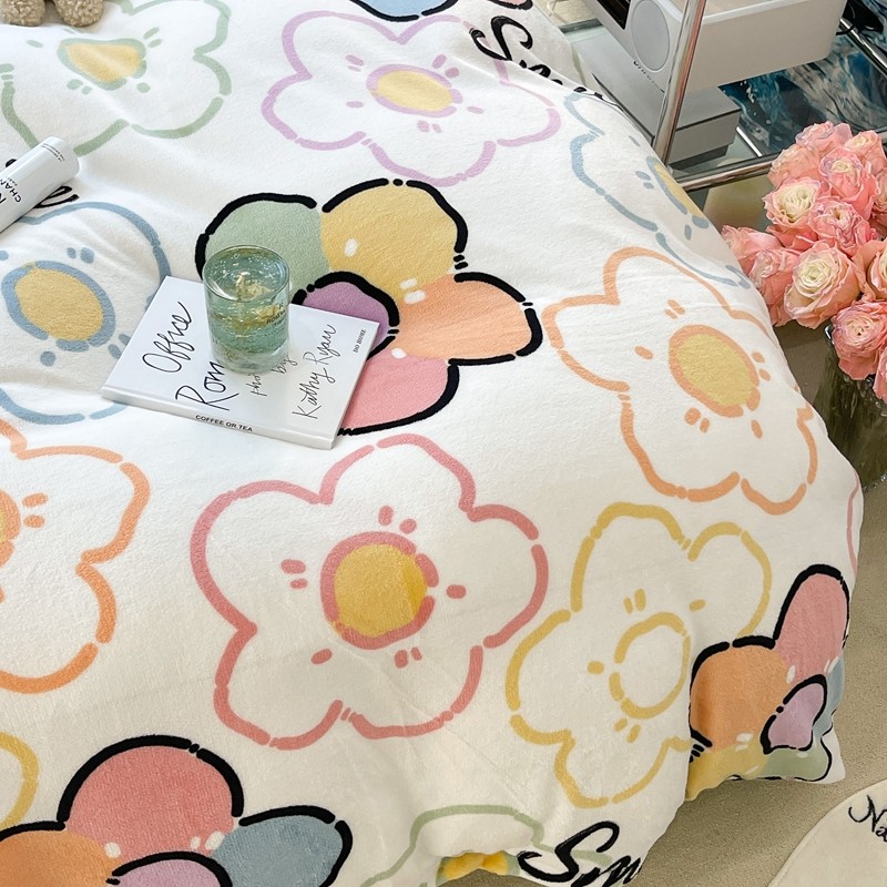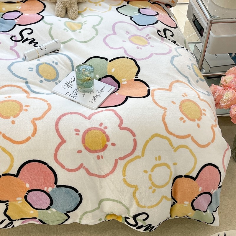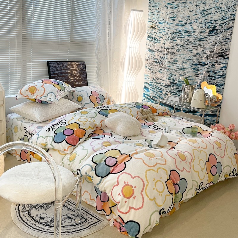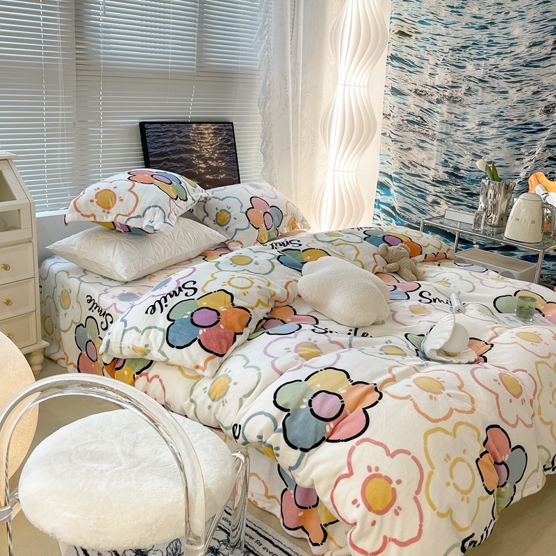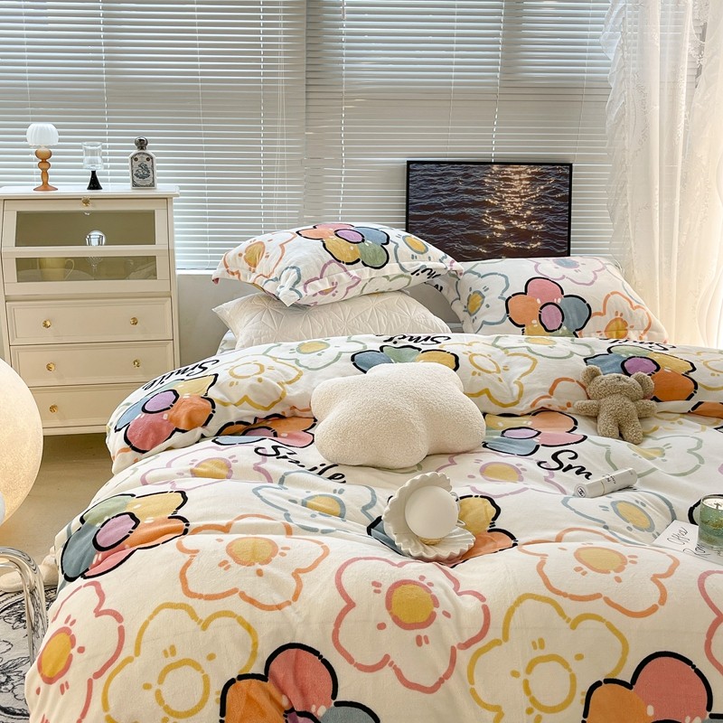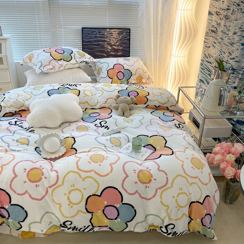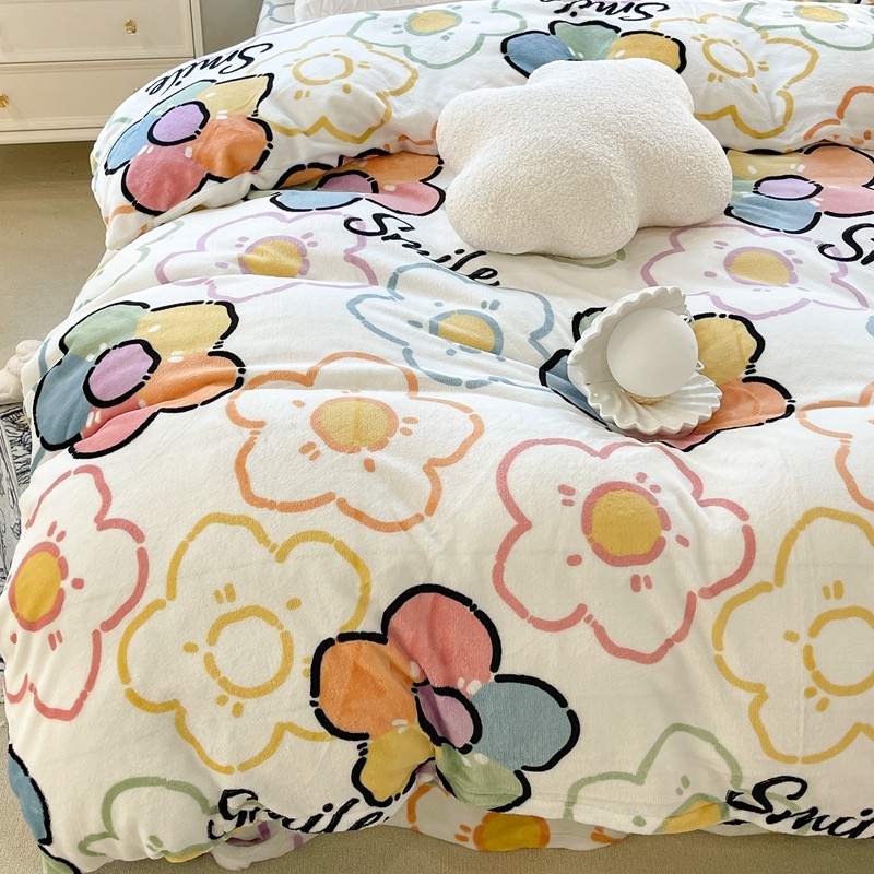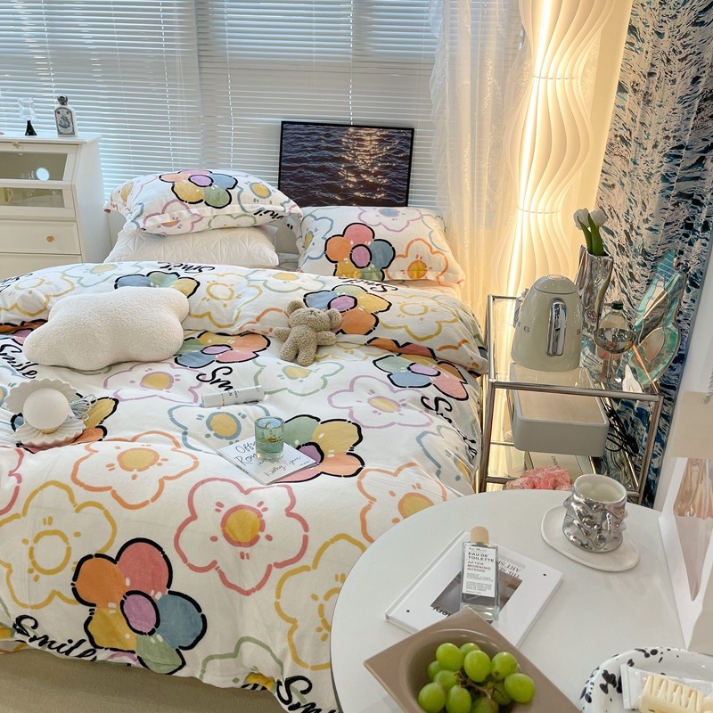 昔可家纺 2021新款牛奶绒四件套-一批 彩色微笑花