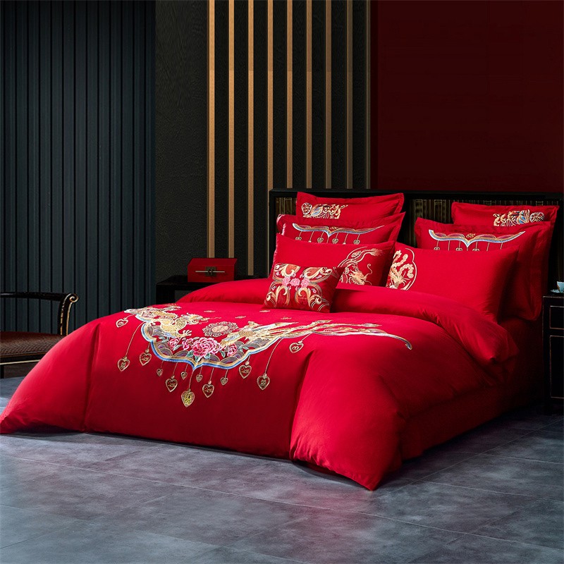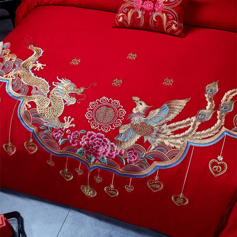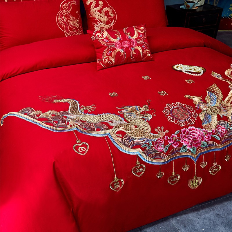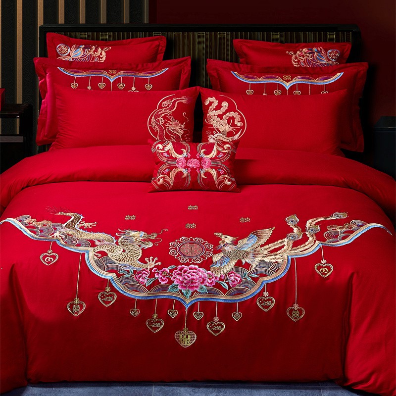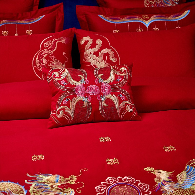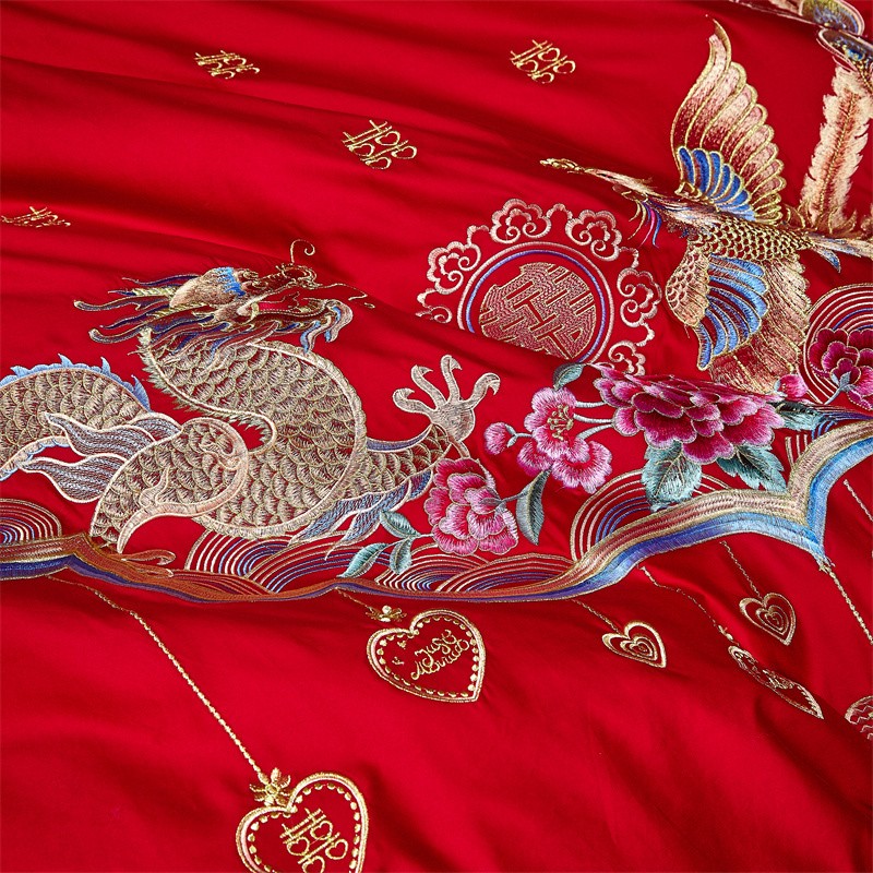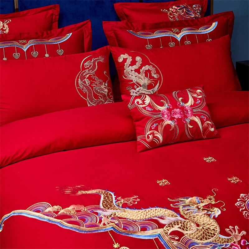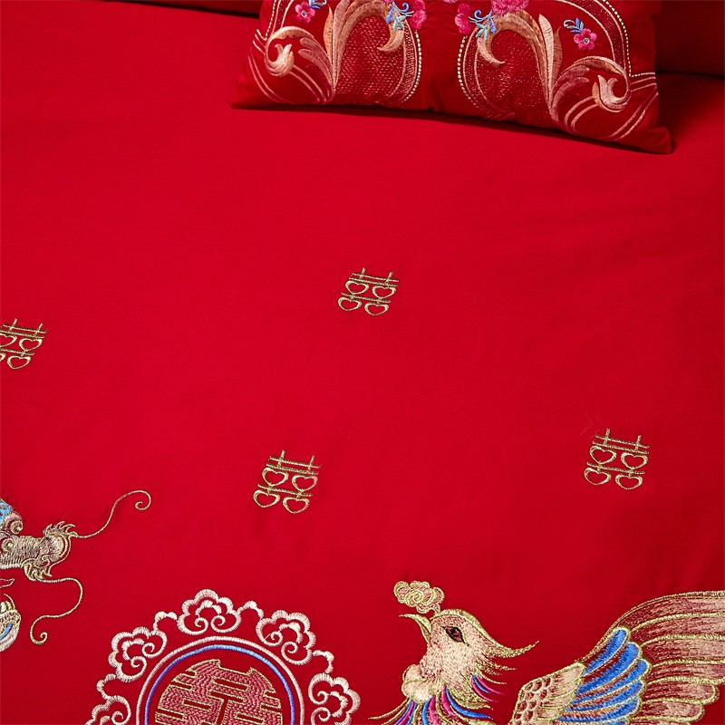 当前位置: 91家纺网 > 商品网购 > 床品套件 > 四件套 > 全棉普通四件套 > 布乐意 2025新款全棉绣花大红婚庆四件套多件套直播龙凤呈祥