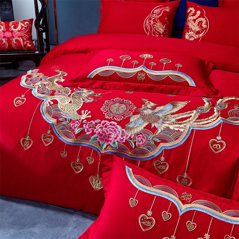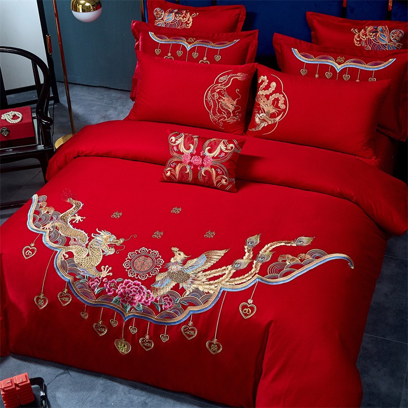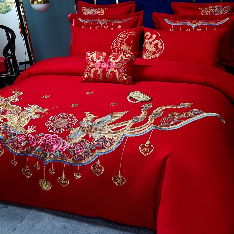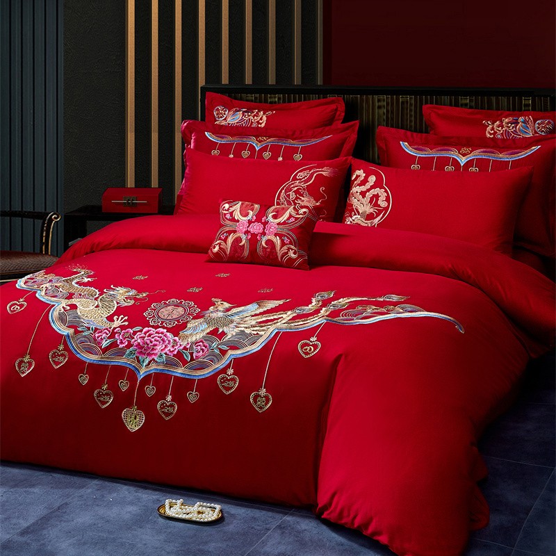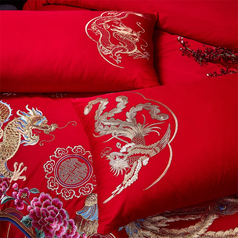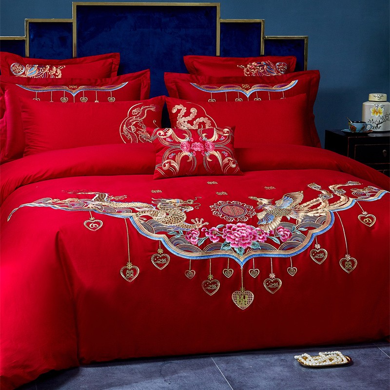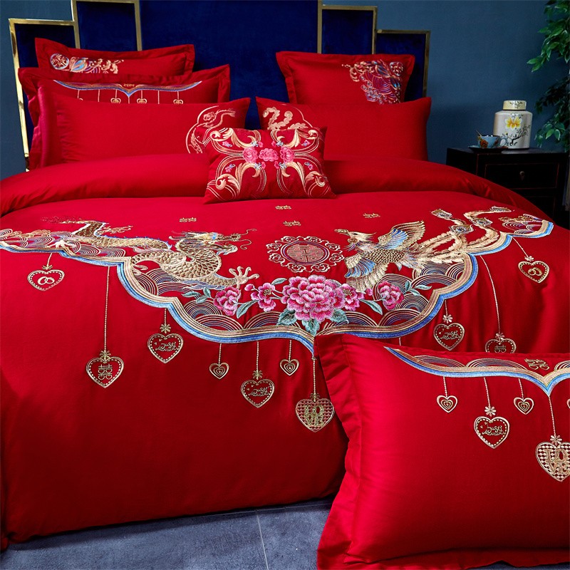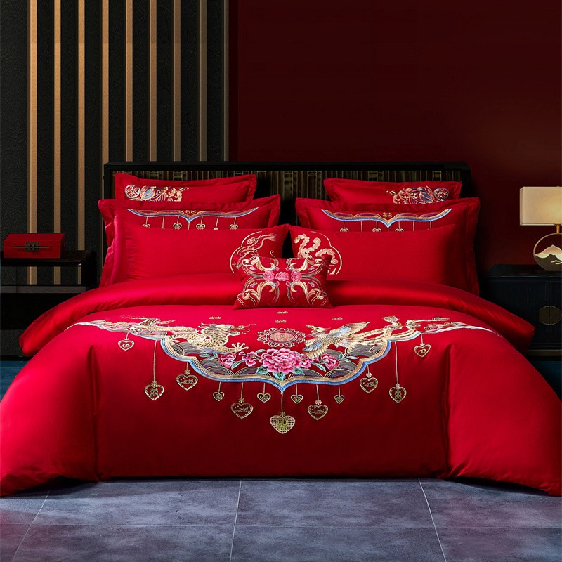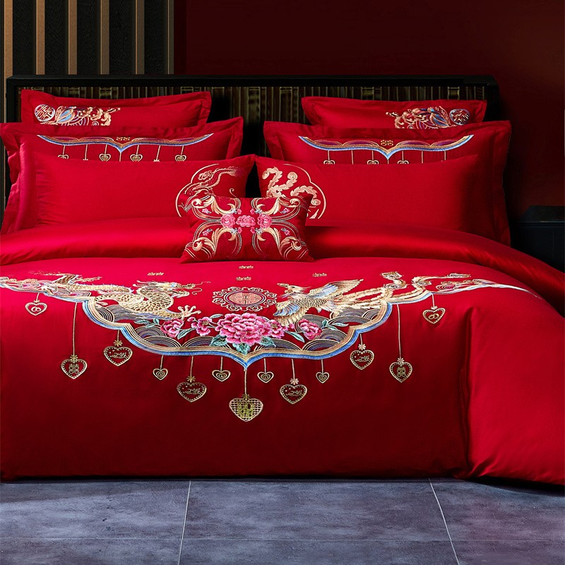 当前位置: 91家纺网 > 商品网购 > 床品套件 > 四件套 > 全棉普通四件套 > 布乐意 2025新款全棉绣花大红婚庆四件套多件套直播龙凤呈祥