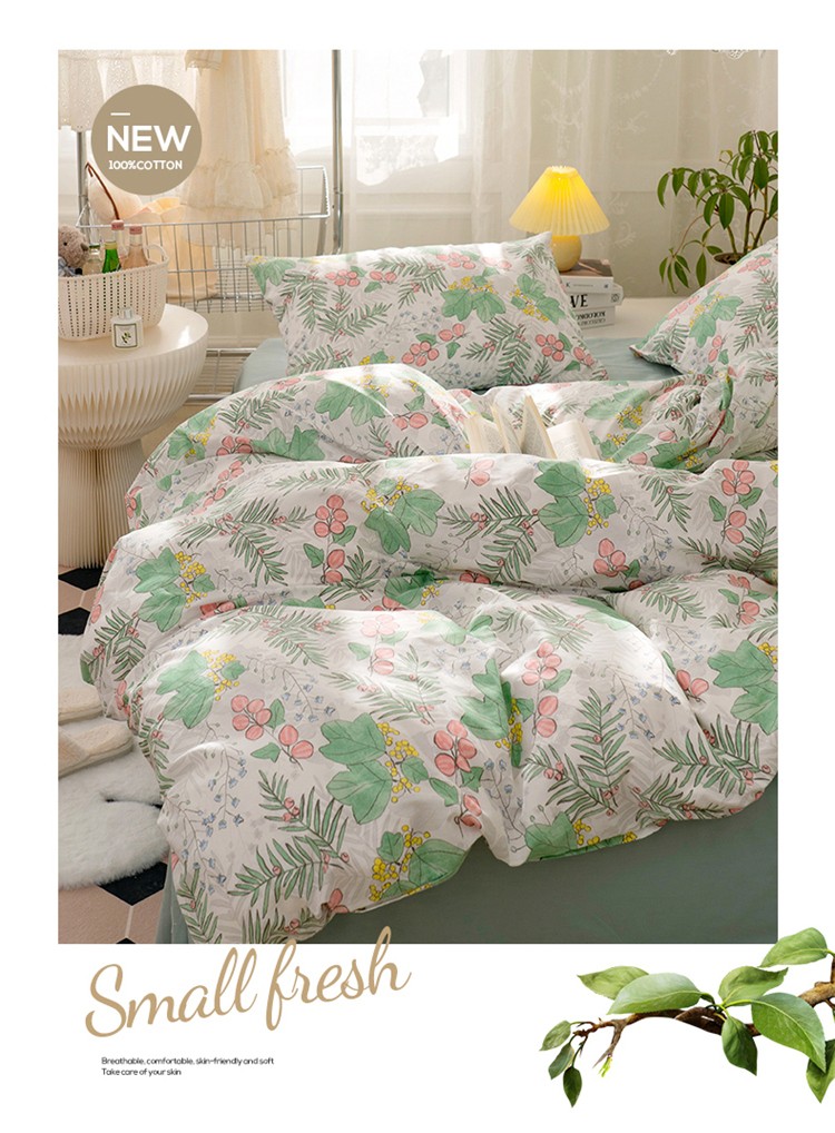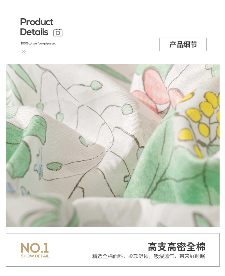 窝米 2020春夏新品全棉13372四件套小波西风系列小花花,小花花