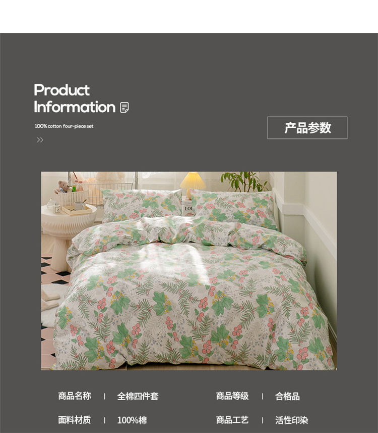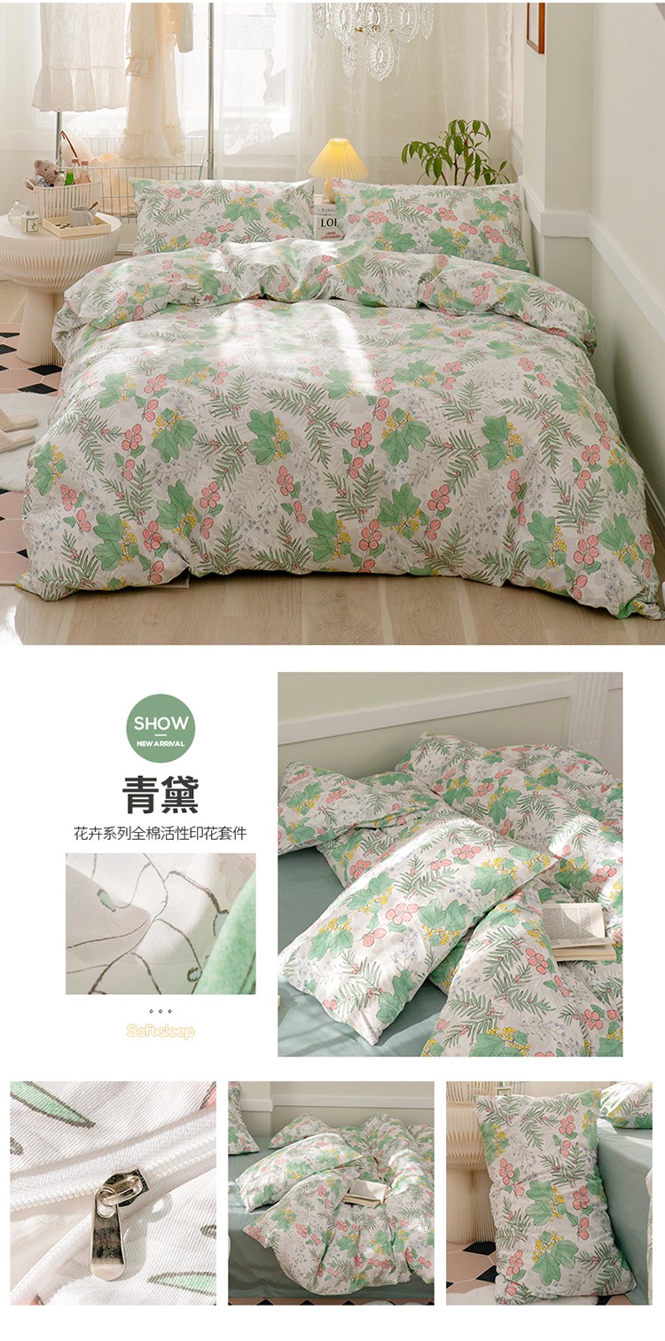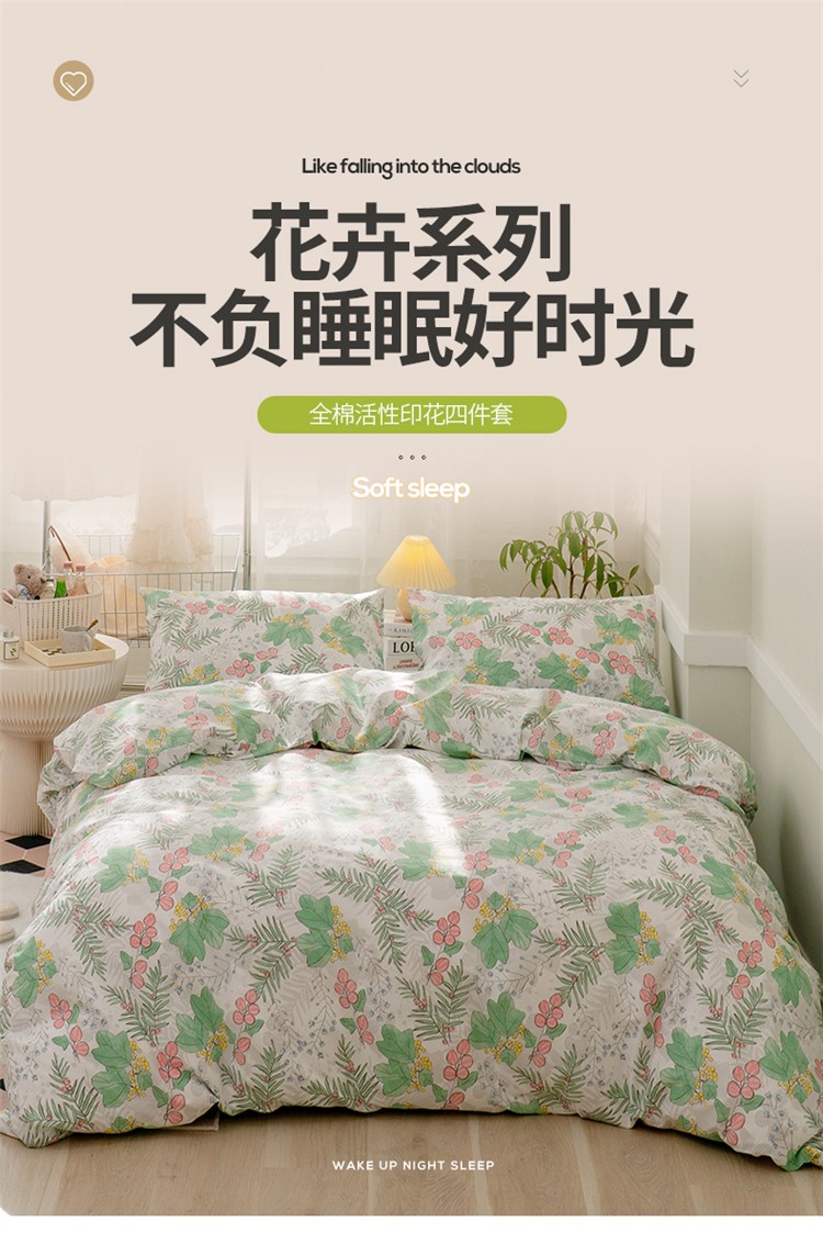 商品名称:窝米 2022新款全棉印花活性四件套花卉系列 青黛