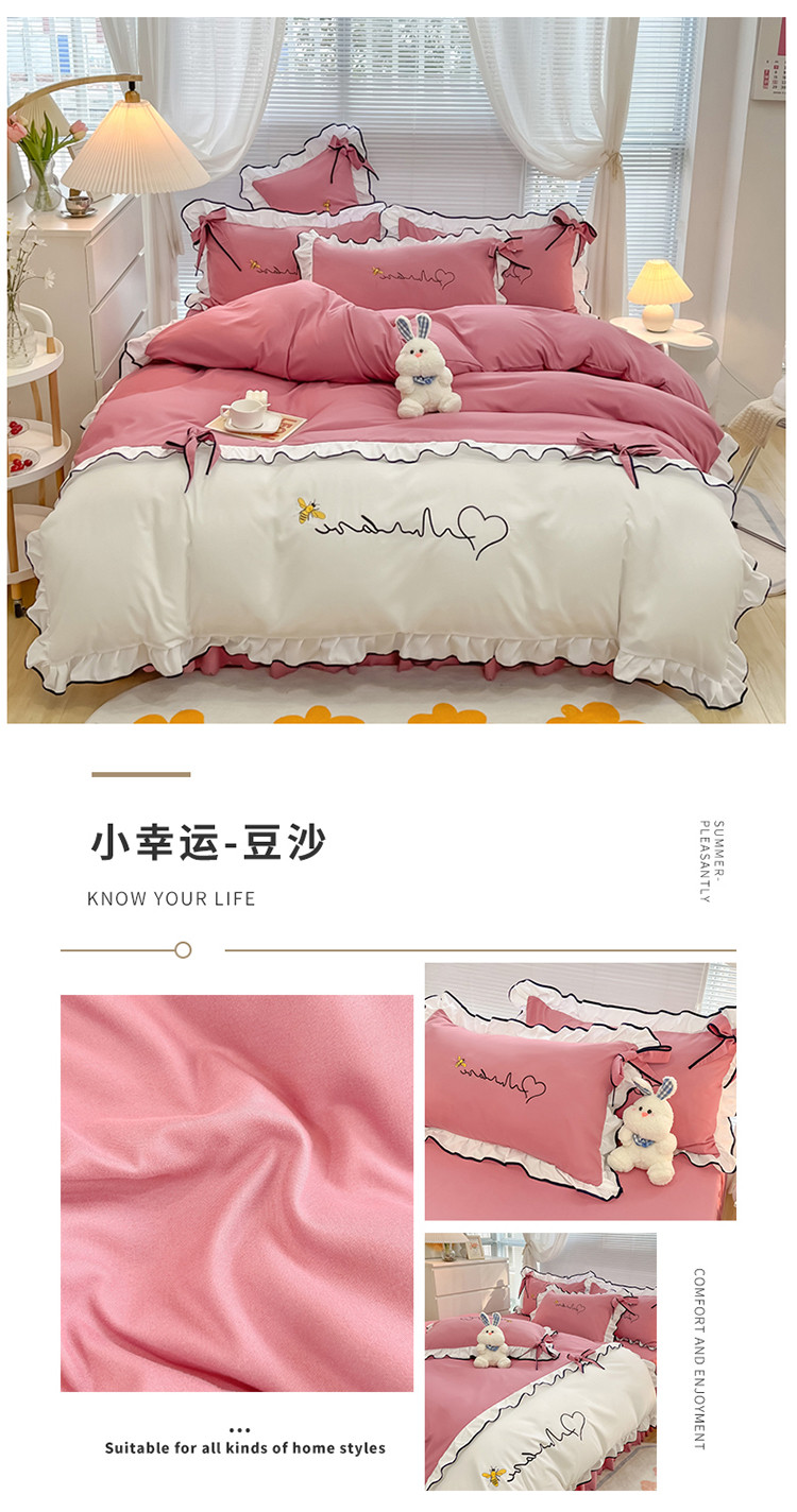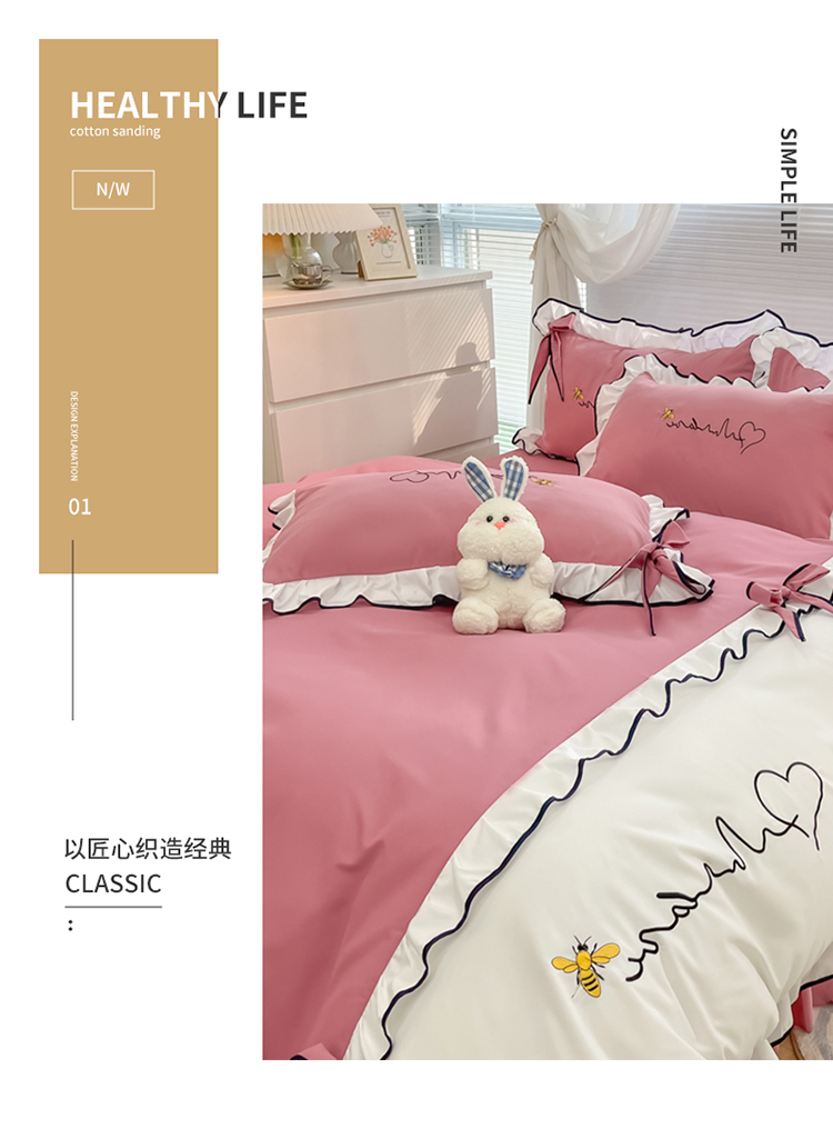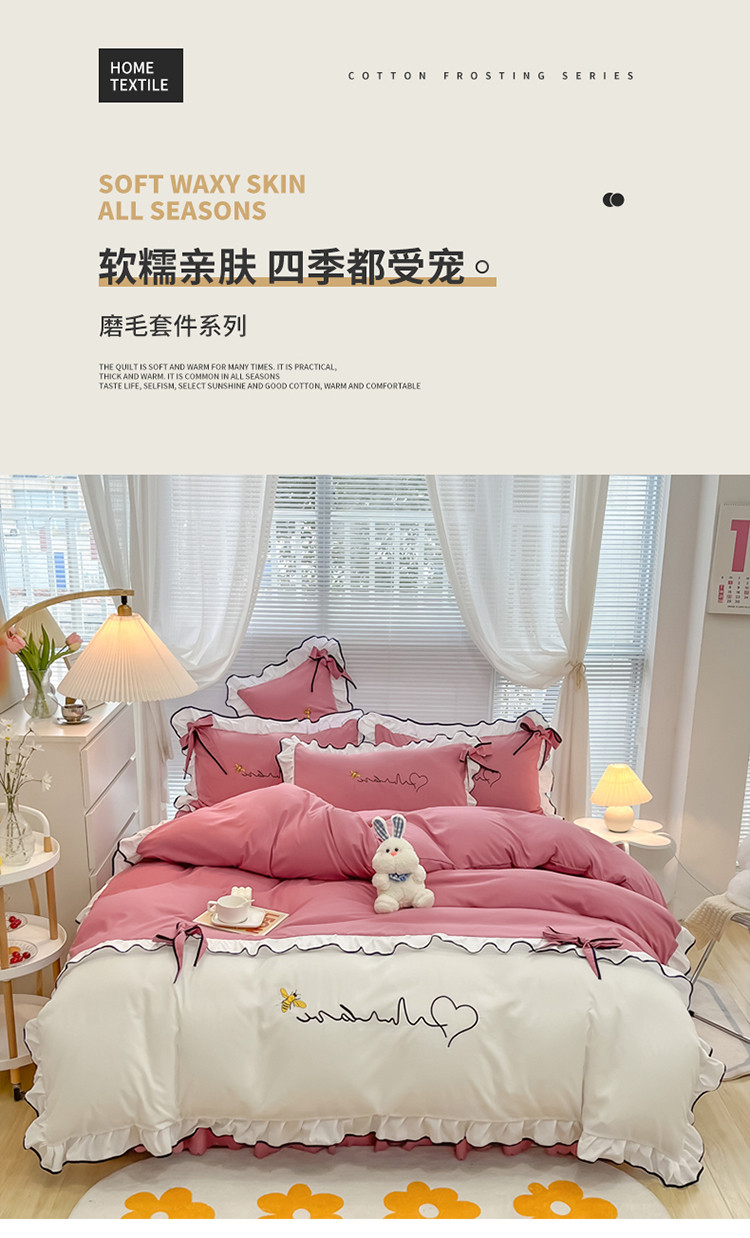 当前位置: 91家纺网 > 商品网购 > 床品套件 > 四件套 > 普通磨毛四件套 > 慕语家纺 2023新款亲肤磨毛高支高密四件套-小幸运 豆沙