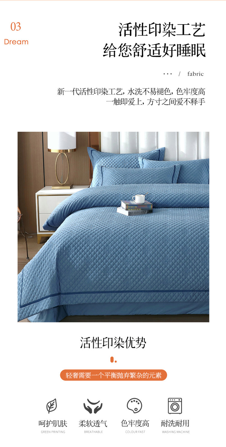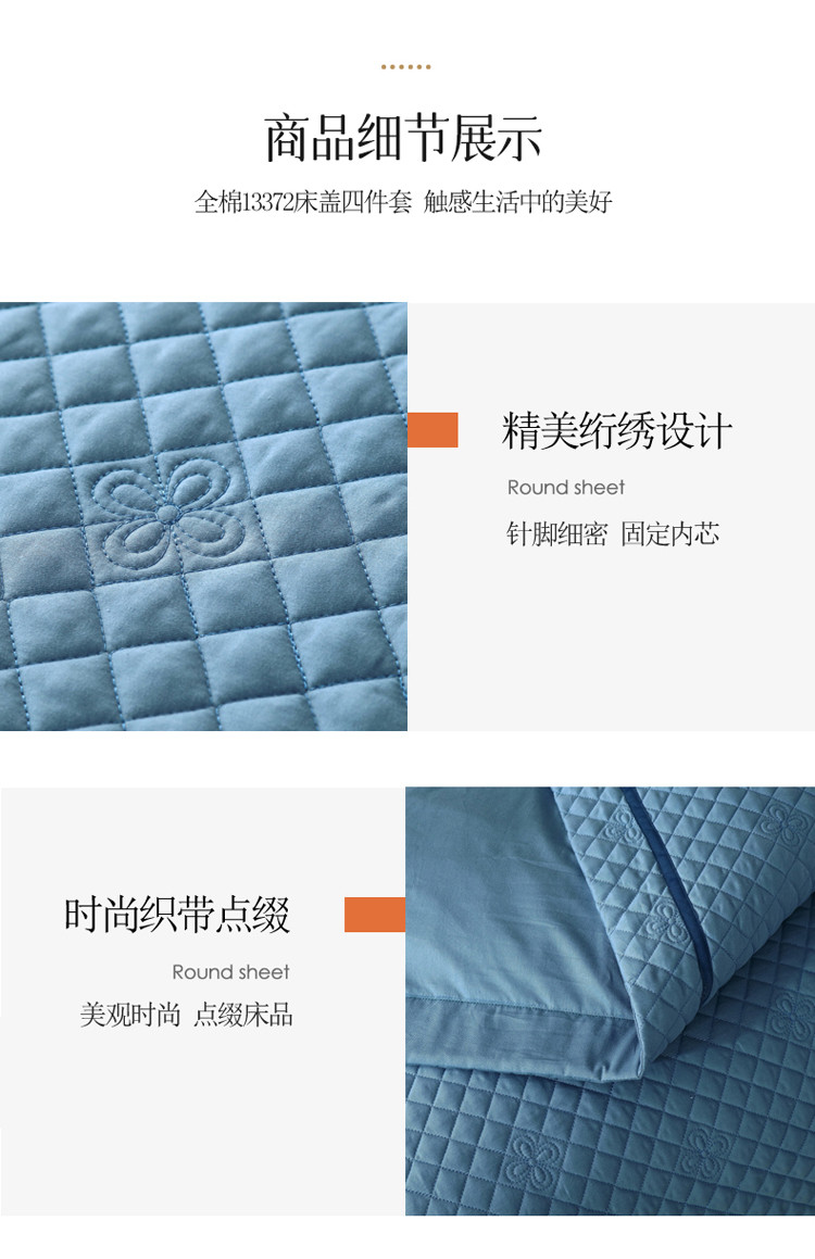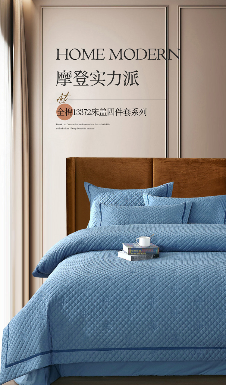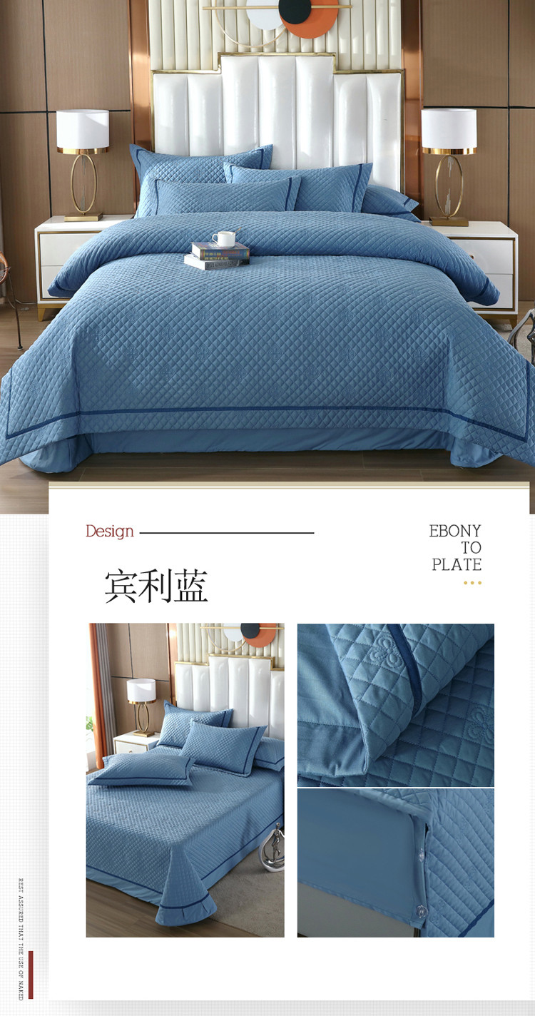 商品名称:ol 2022新款全棉纯色居家被套床盖枕套夹棉绗绣四件套 宾利蓝
