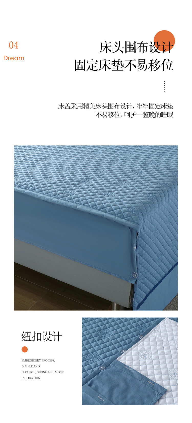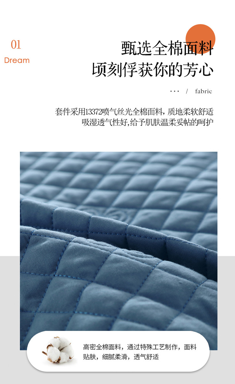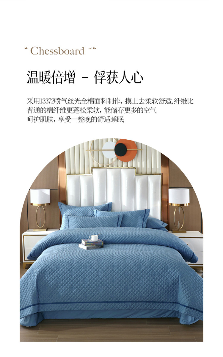 商品名称:ol 2022新款全棉纯色居家被套床盖枕套夹棉绗绣四件套 宾利蓝