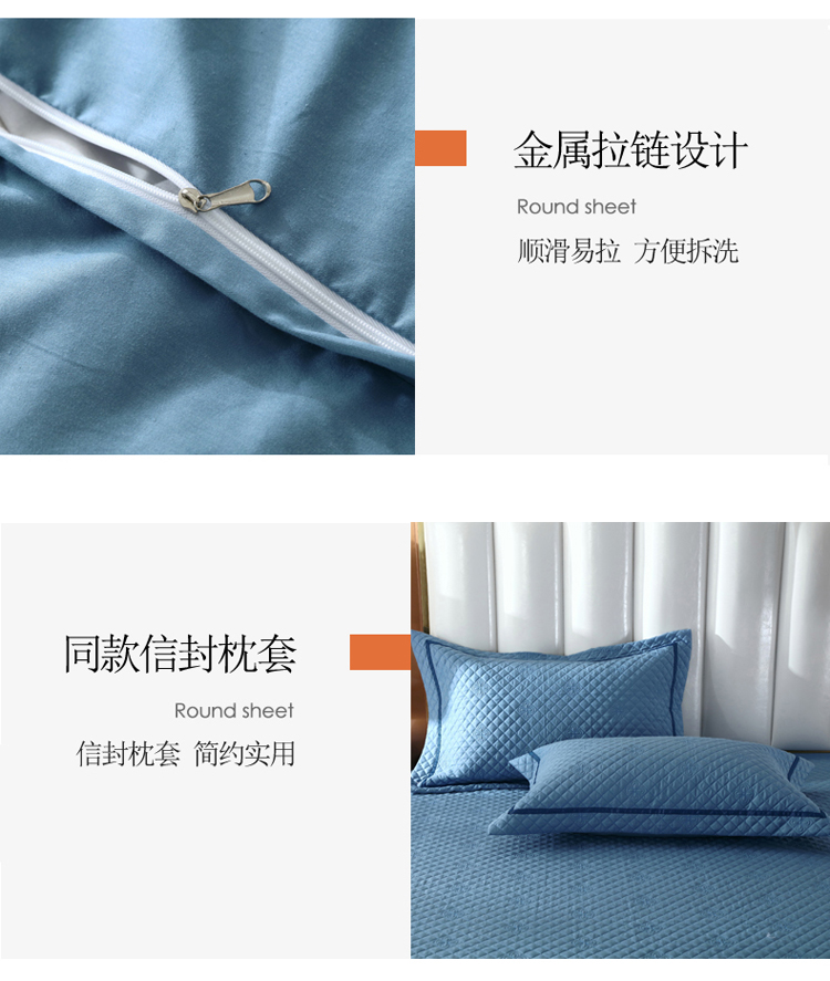 ol 2022新款全棉纯色居家被套床盖枕套夹棉绗绣四件套 宾利蓝
