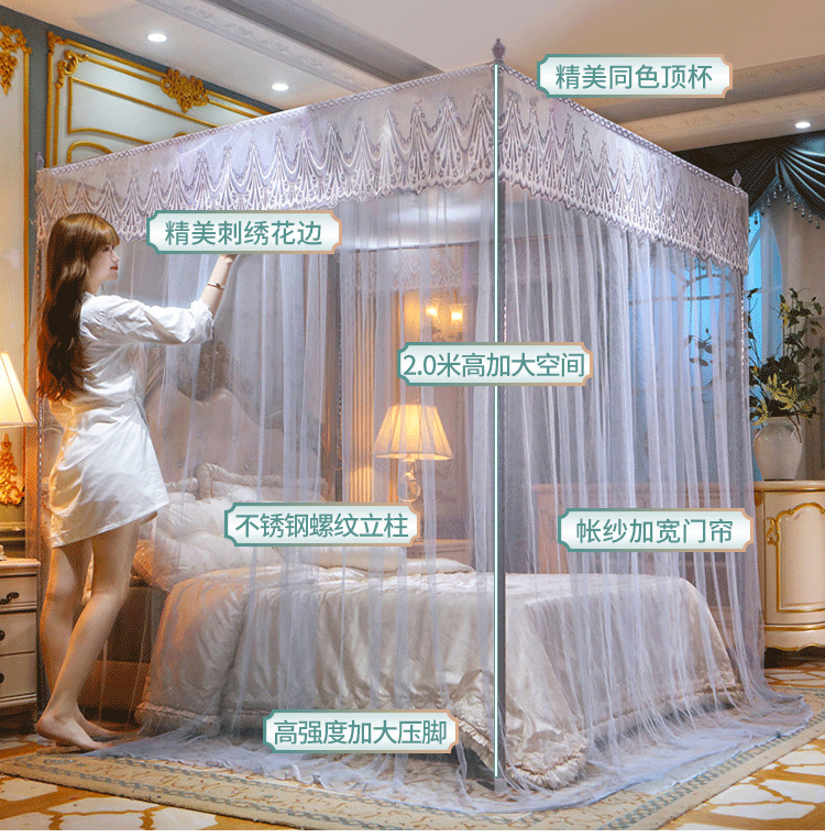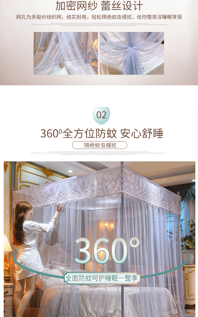 (总)初心家纺 2025新款欧式宫廷蕾丝落地蚊帐—繁花