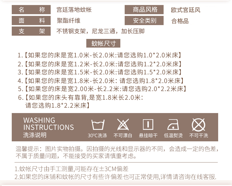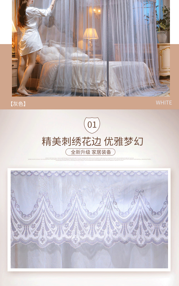 商品名称:(总)初心家纺 2025新款欧式宫廷蕾丝落地蚊帐—繁花