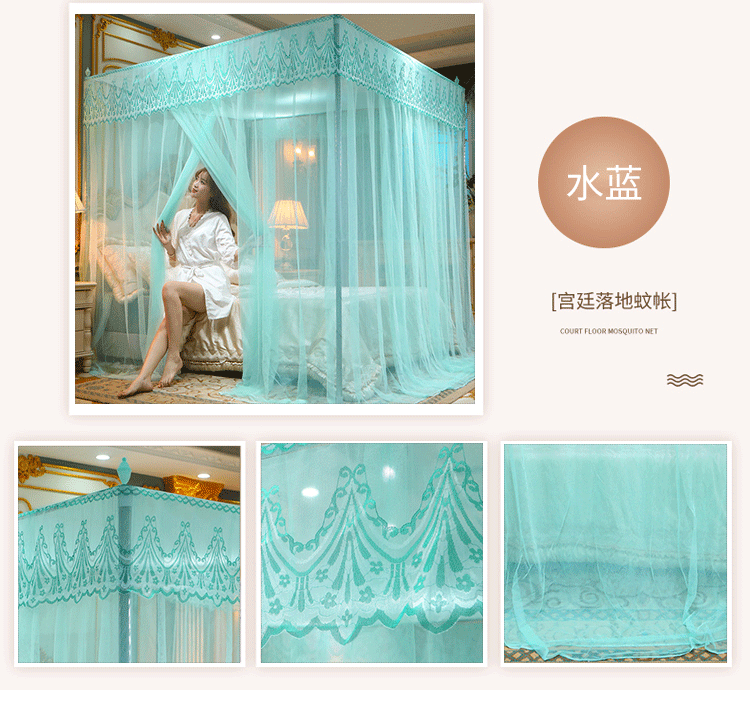 (总)初心 2025新款落地宫廷蚊帐-粉黛佳人,白色,粉,米黄,水蓝,玉色,紫色