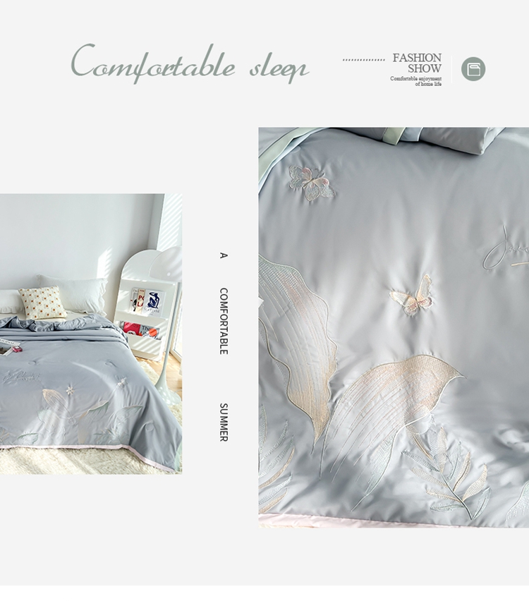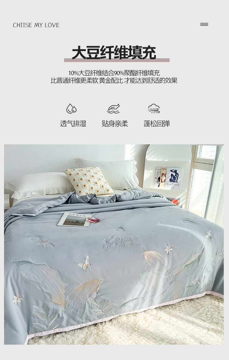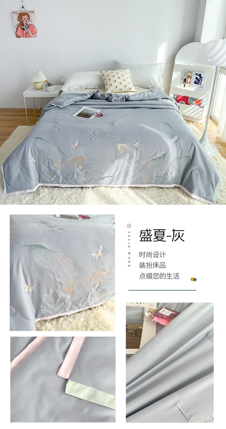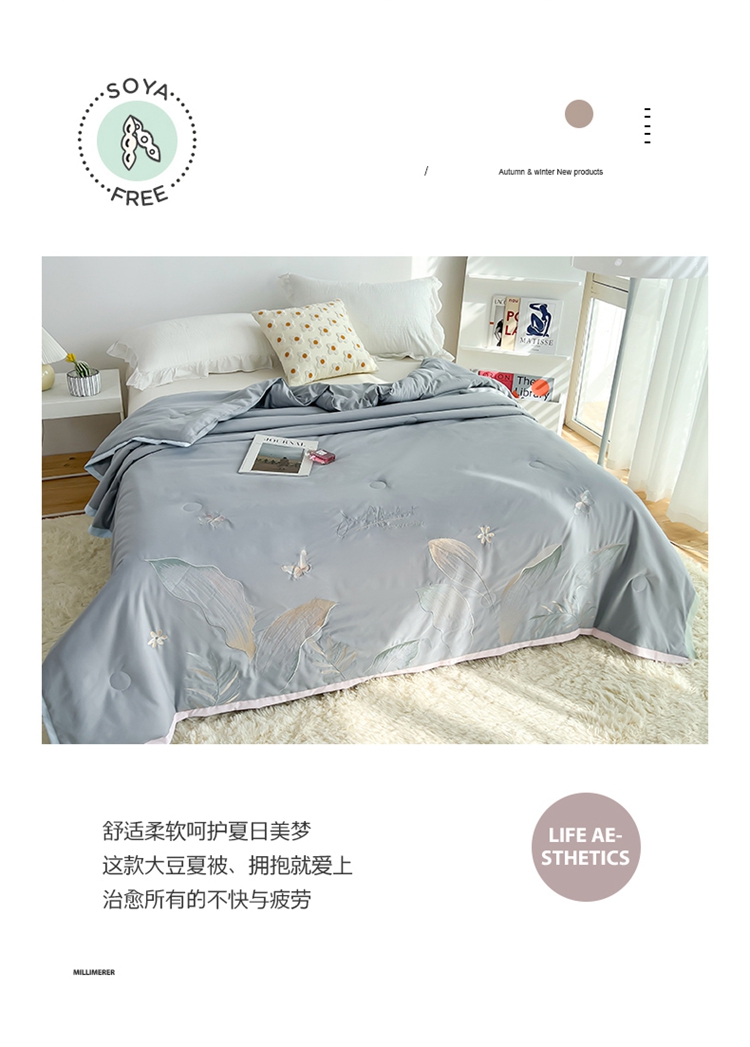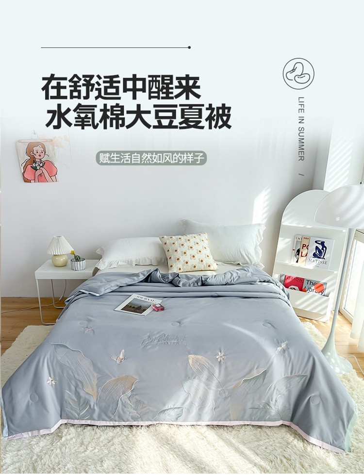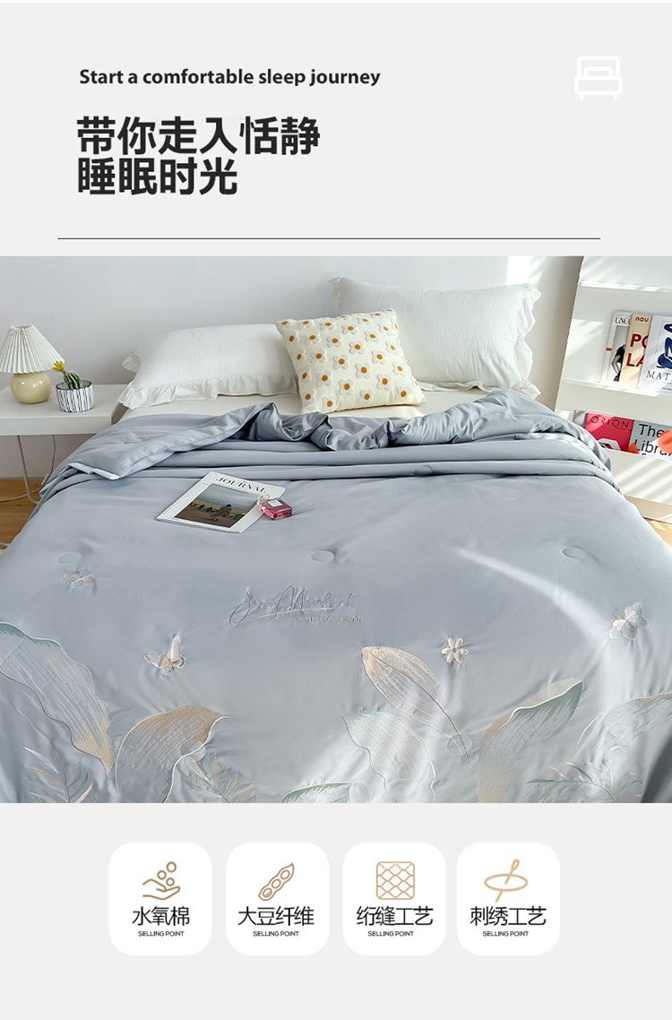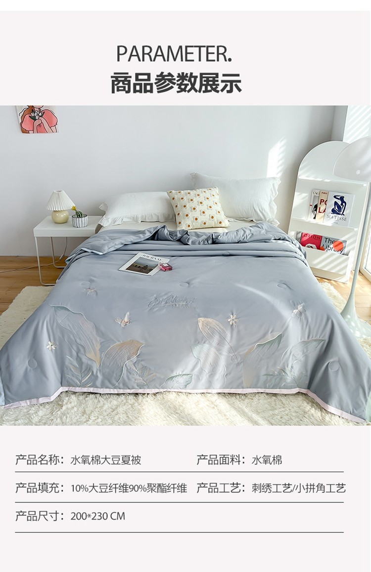 商品名称:澳洲羽 2024新水氧棉刺绣拼角大豆夏凉被直播空调被子盛夏灰