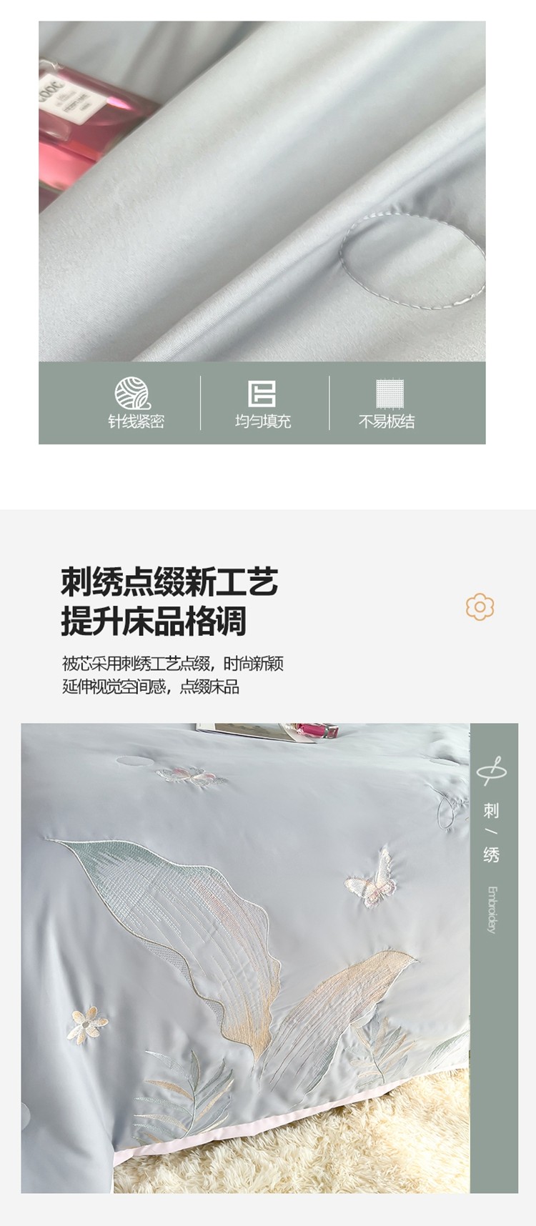 澳洲羽 2024新水氧棉刺绣拼角大豆夏凉被直播空调被子盛夏灰