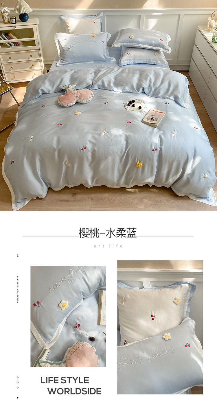 (总)初拾 2025新款60s兰精天丝四件套—樱桃奇奇,樱桃奇奇-海水蓝,樱桃奇奇-浅灰,樱桃奇奇-少女粉,樱桃奇奇-象牙白