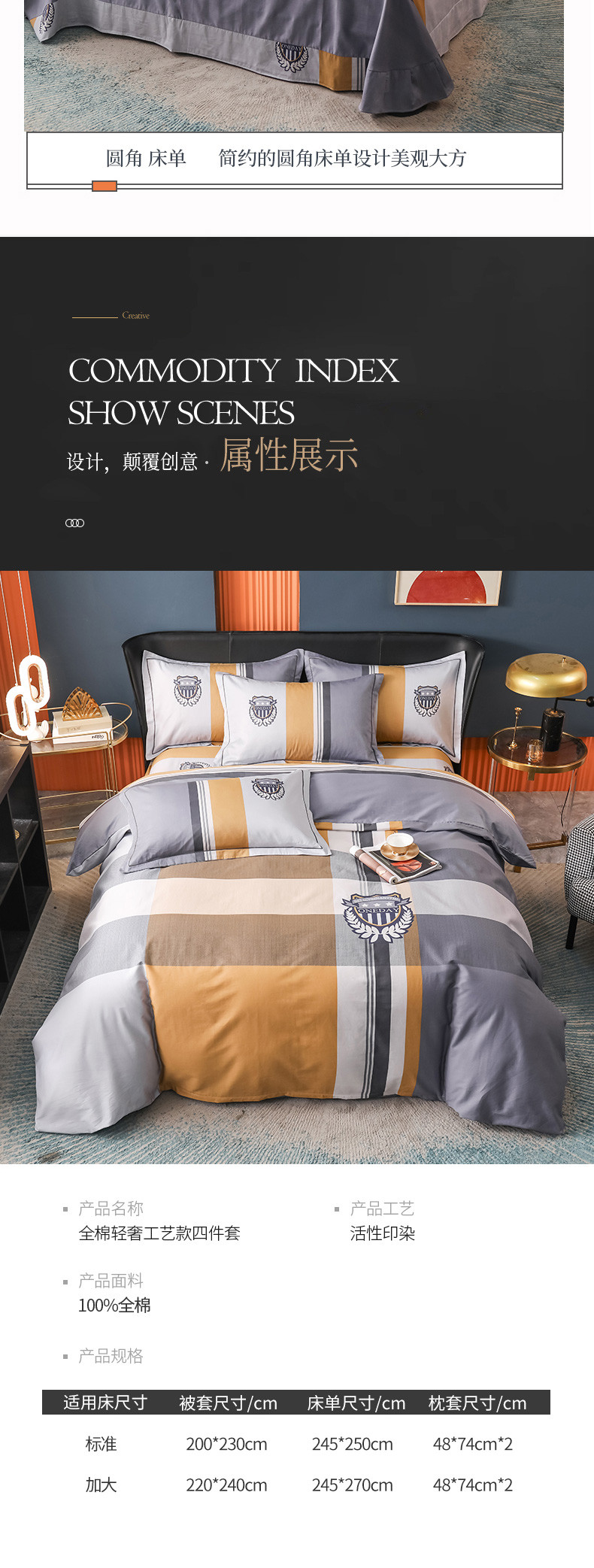 (总)雲归梦 2021新款全棉生态磨毛刺绣四件套,慕思-橙色,慕思-粉紫,慕思-灰,慕思-米黄,慕思-青绿,慕思-天蓝