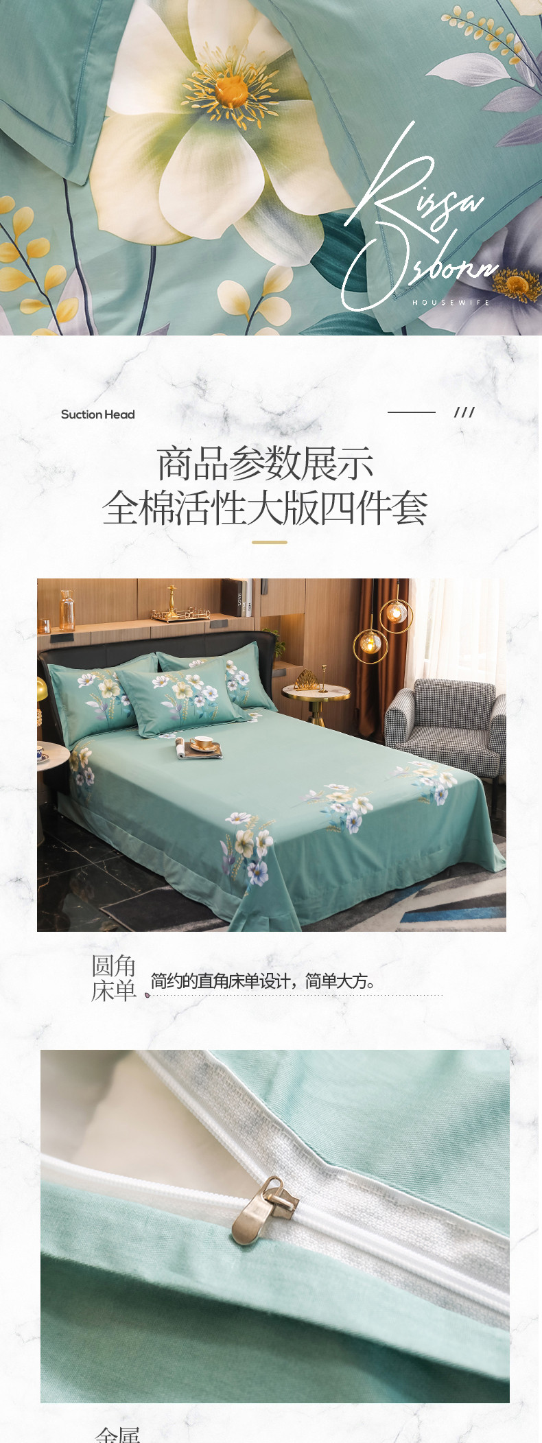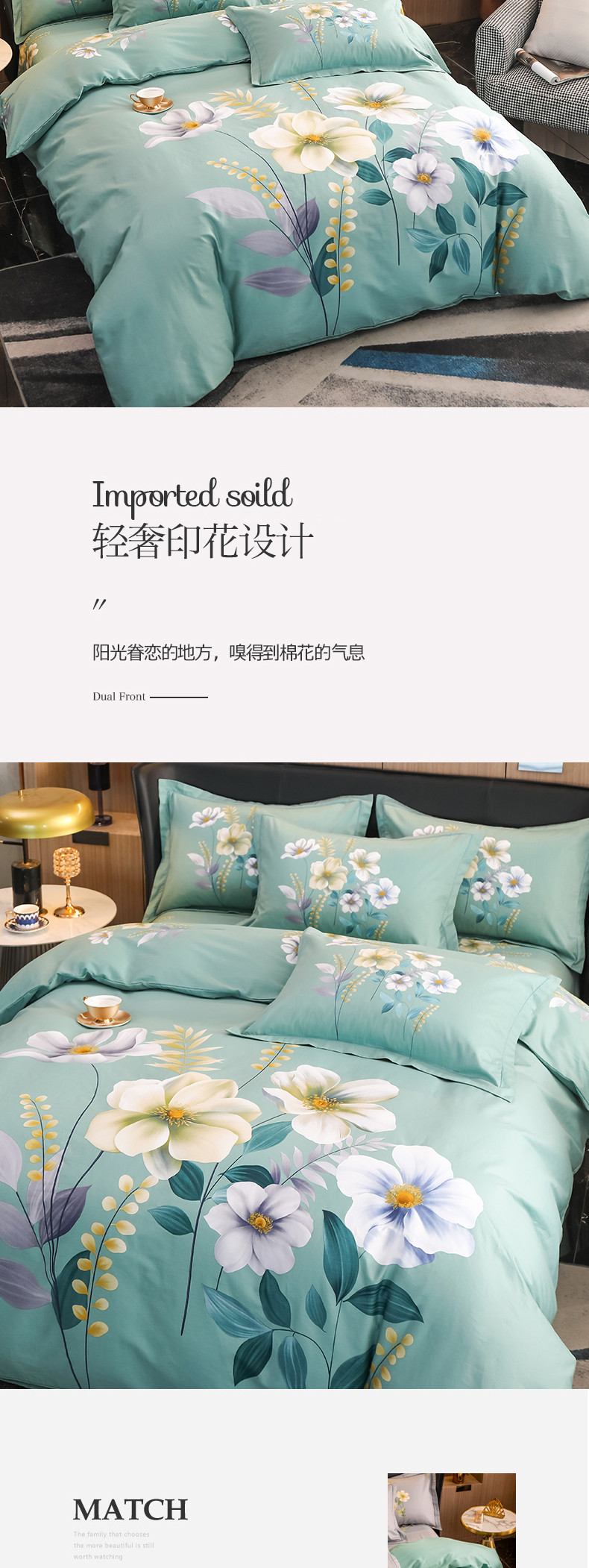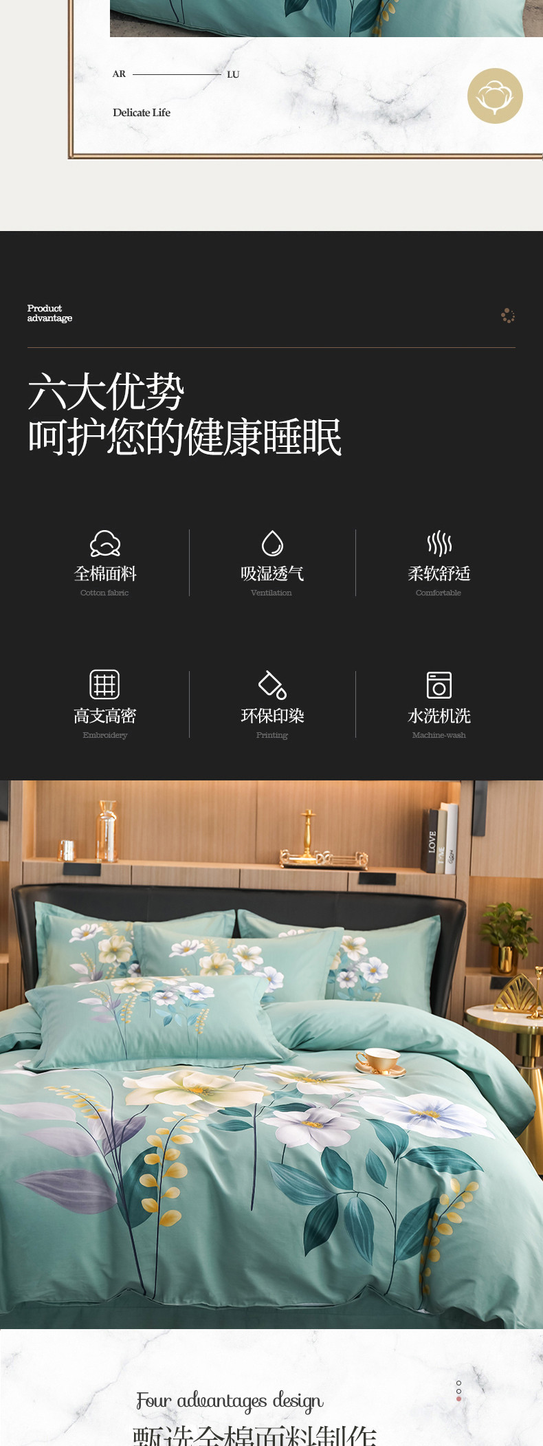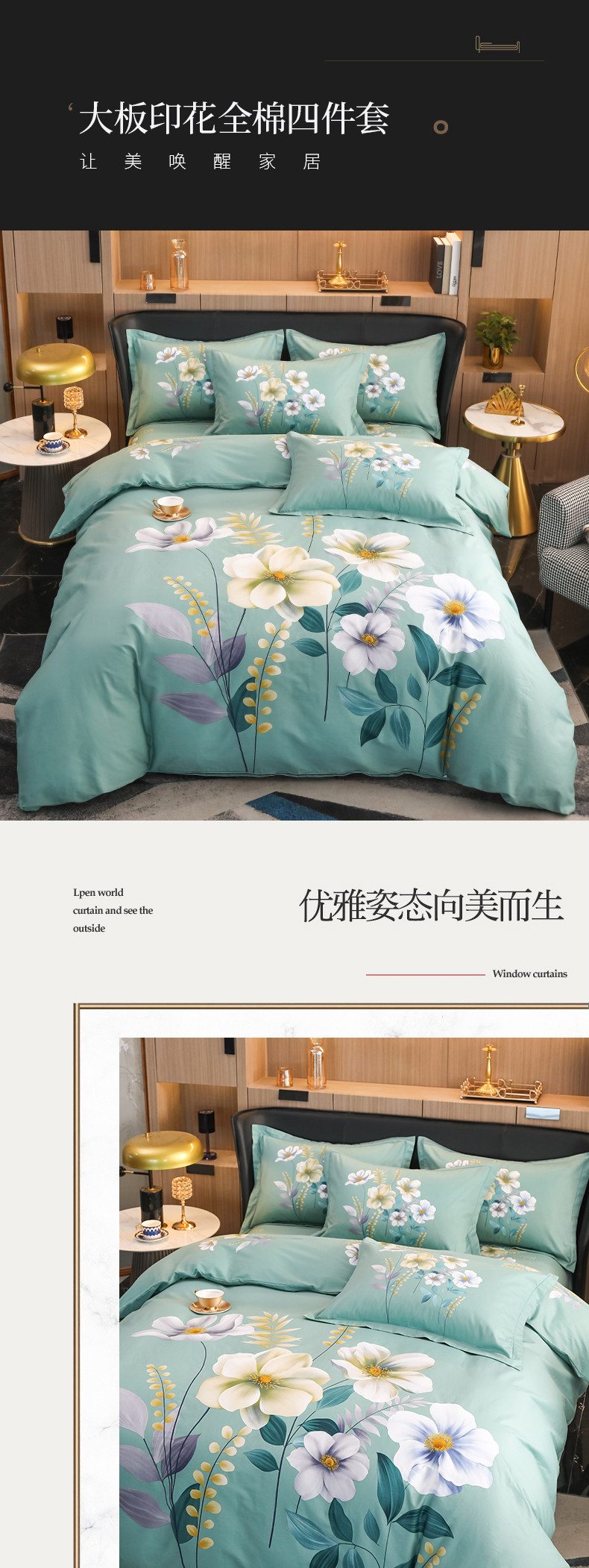 商品名称:雲归梦 2022新款全棉大版四件套 花卉花型 花语情缘-绿