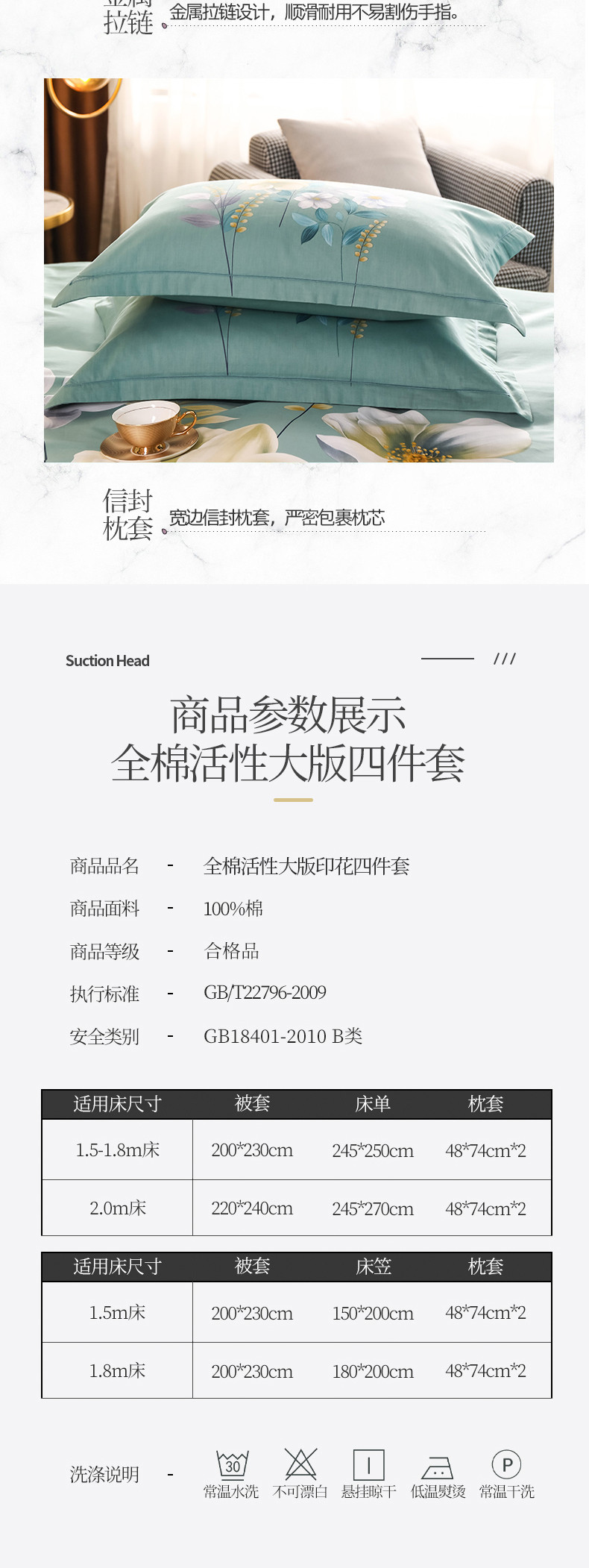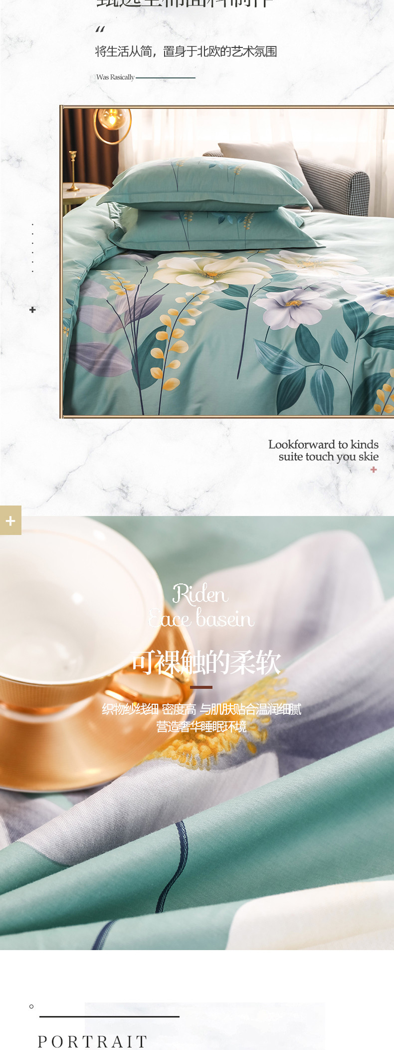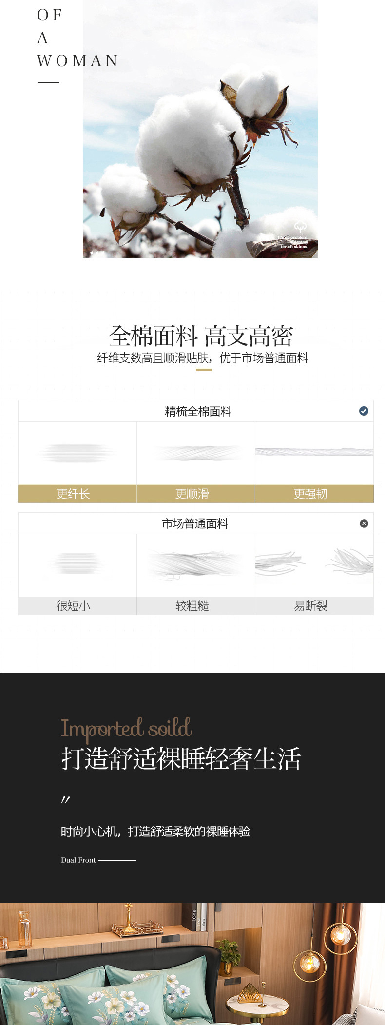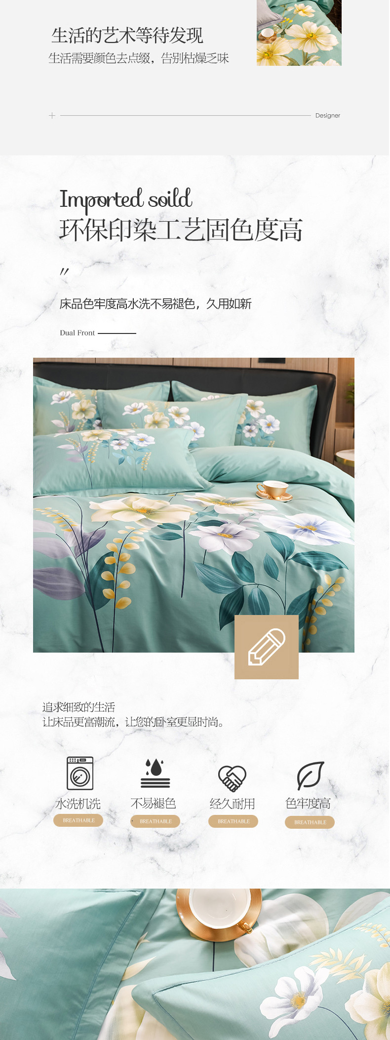商品名称:雲归梦 2022新款全棉大版四件套 花卉花型 花语情缘-绿