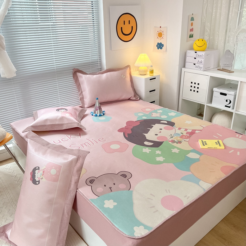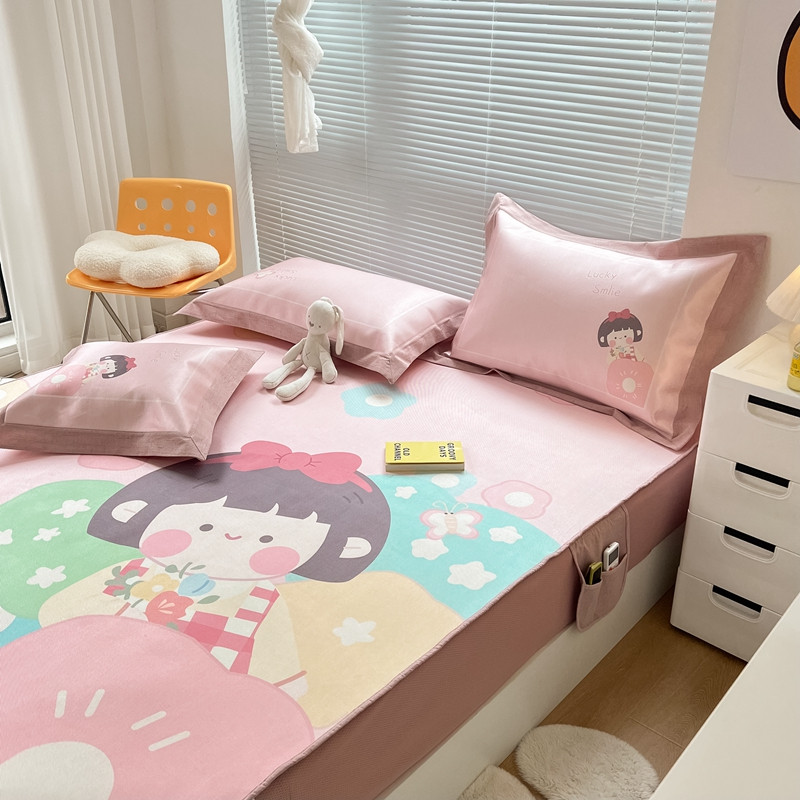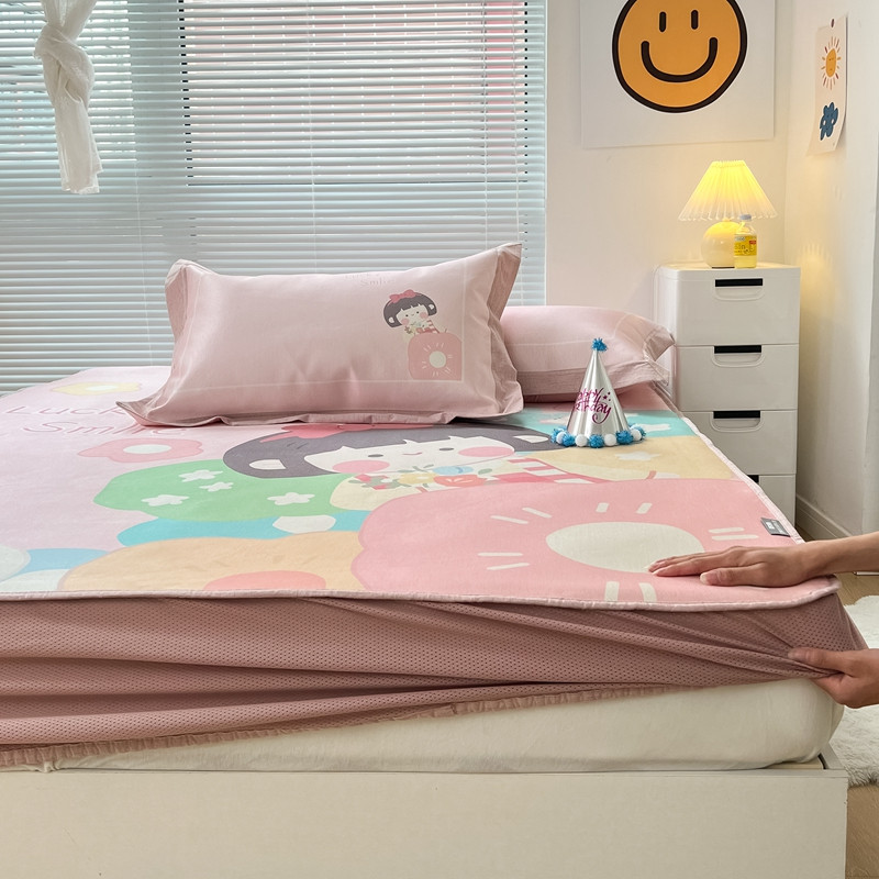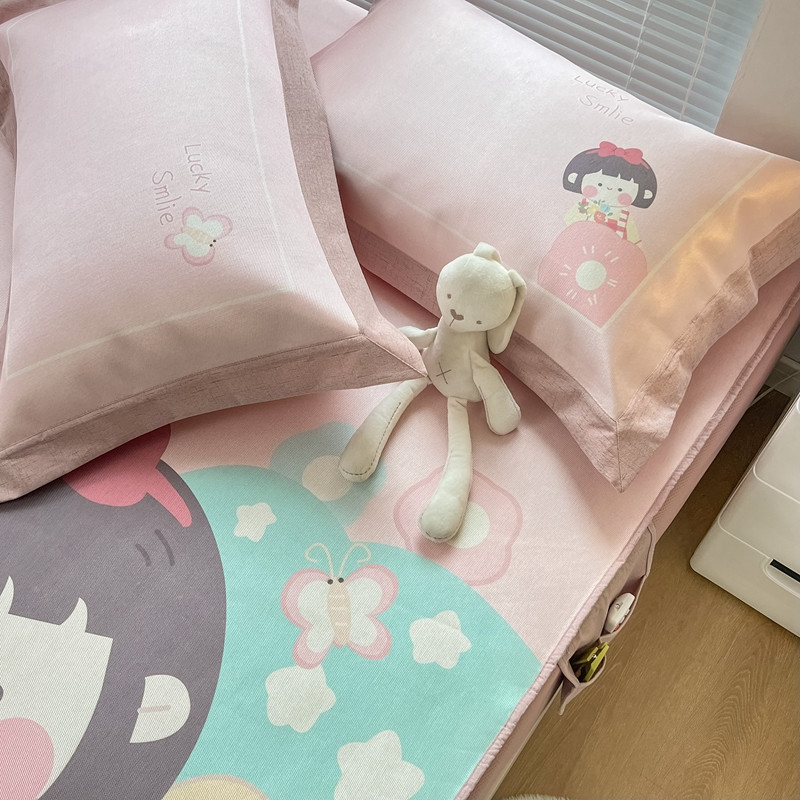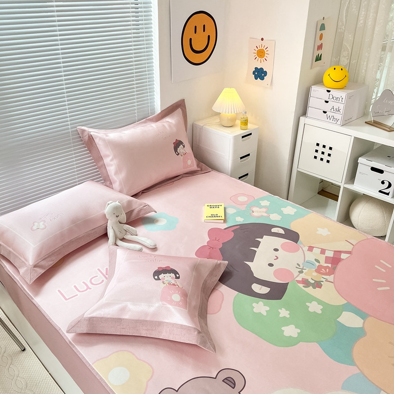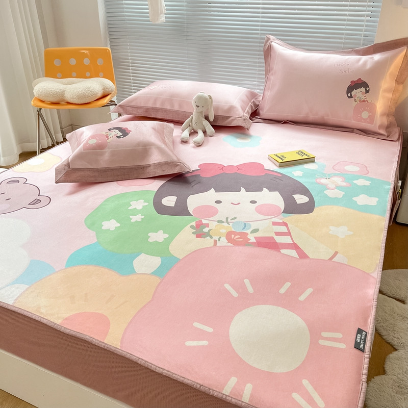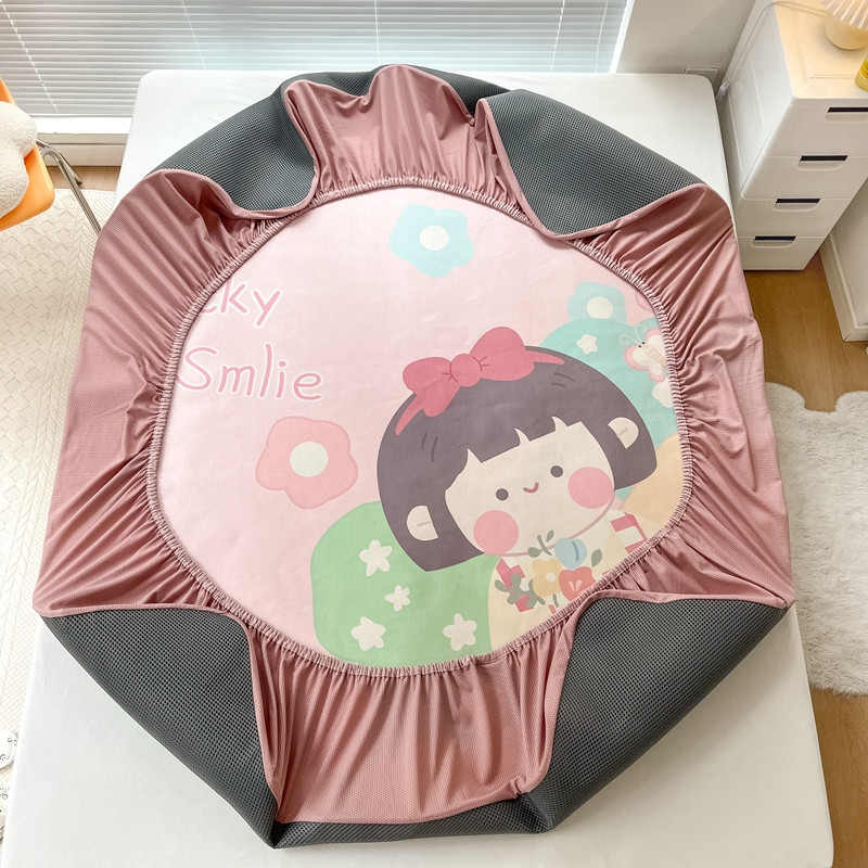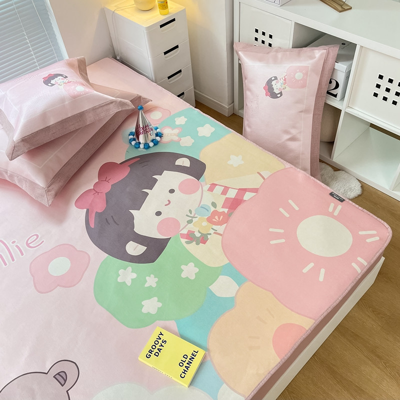 本希 2022新款水洗数码印花卡通简约冰丝席床笠款 茶茶妹妹