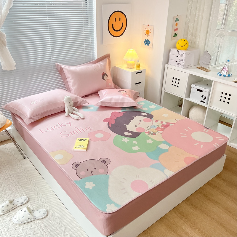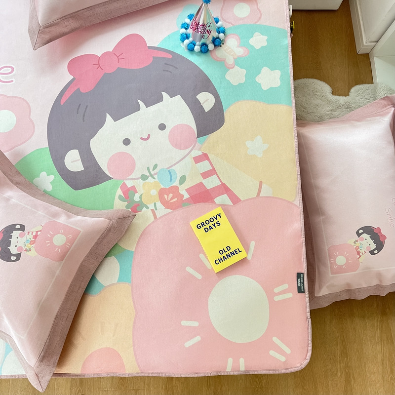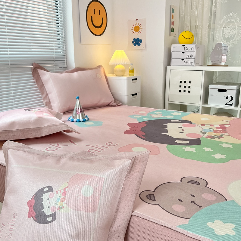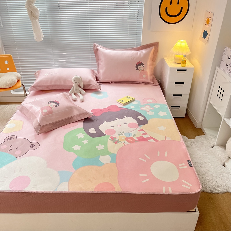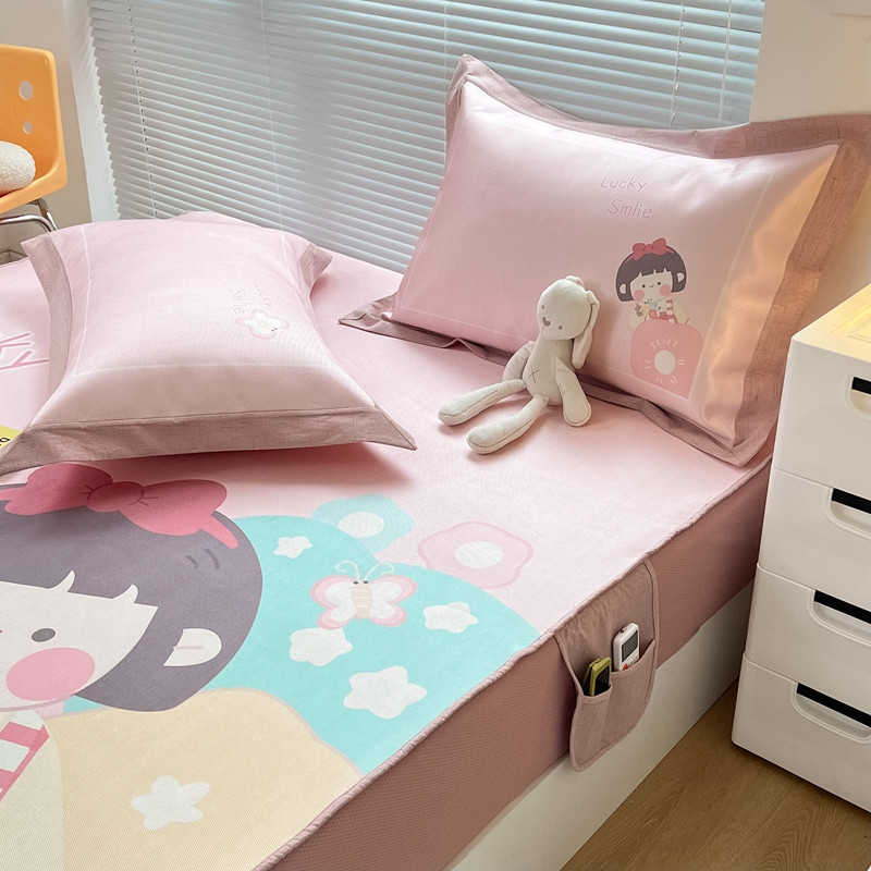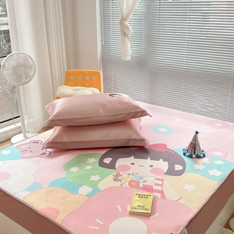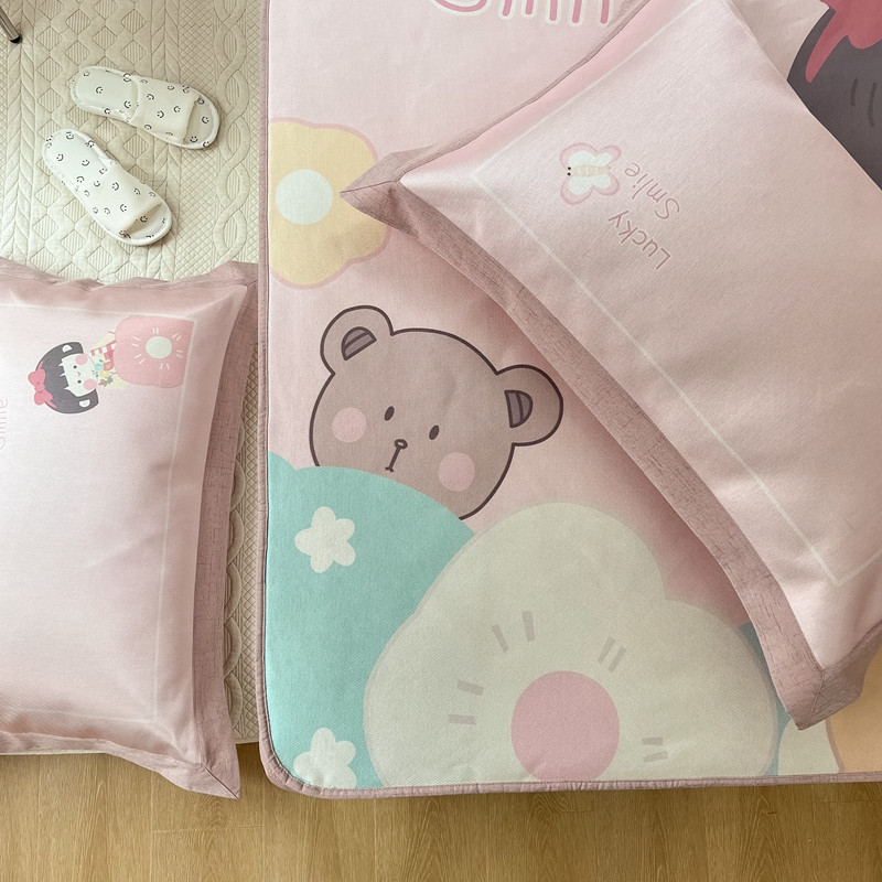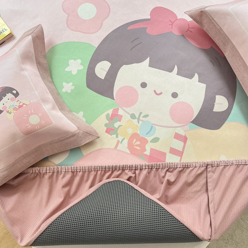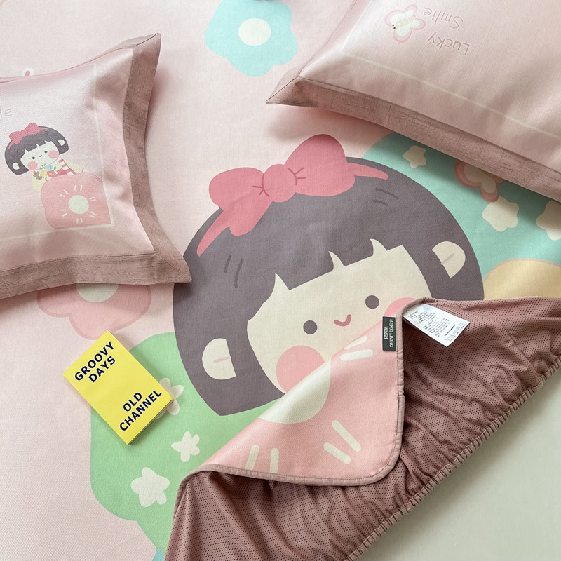 本希 2022新款水洗数码印花卡通简约冰丝席床笠款 茶茶妹妹