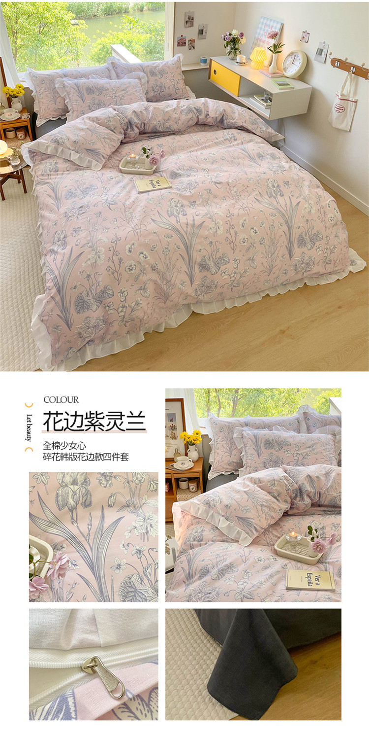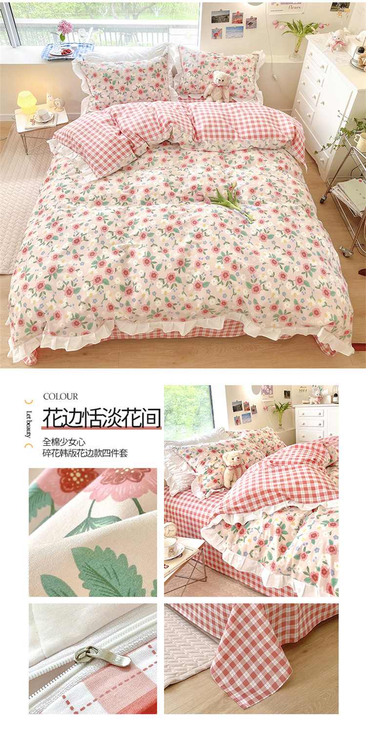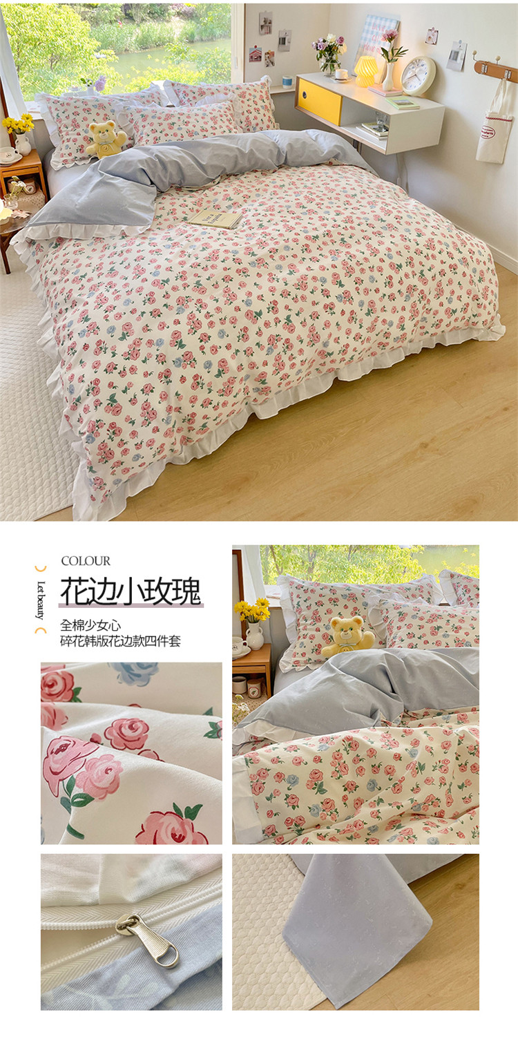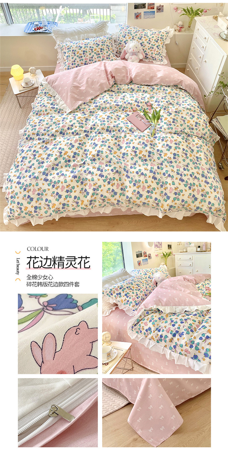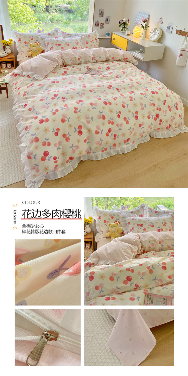 总 桃子家居2022新款仙气奶油碎花少女心韩版花边纯棉四件套