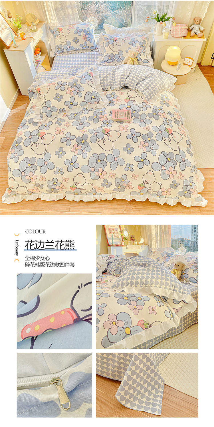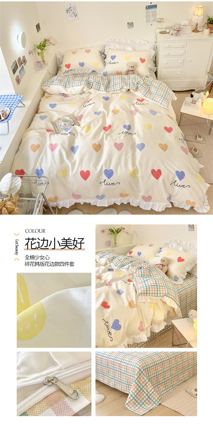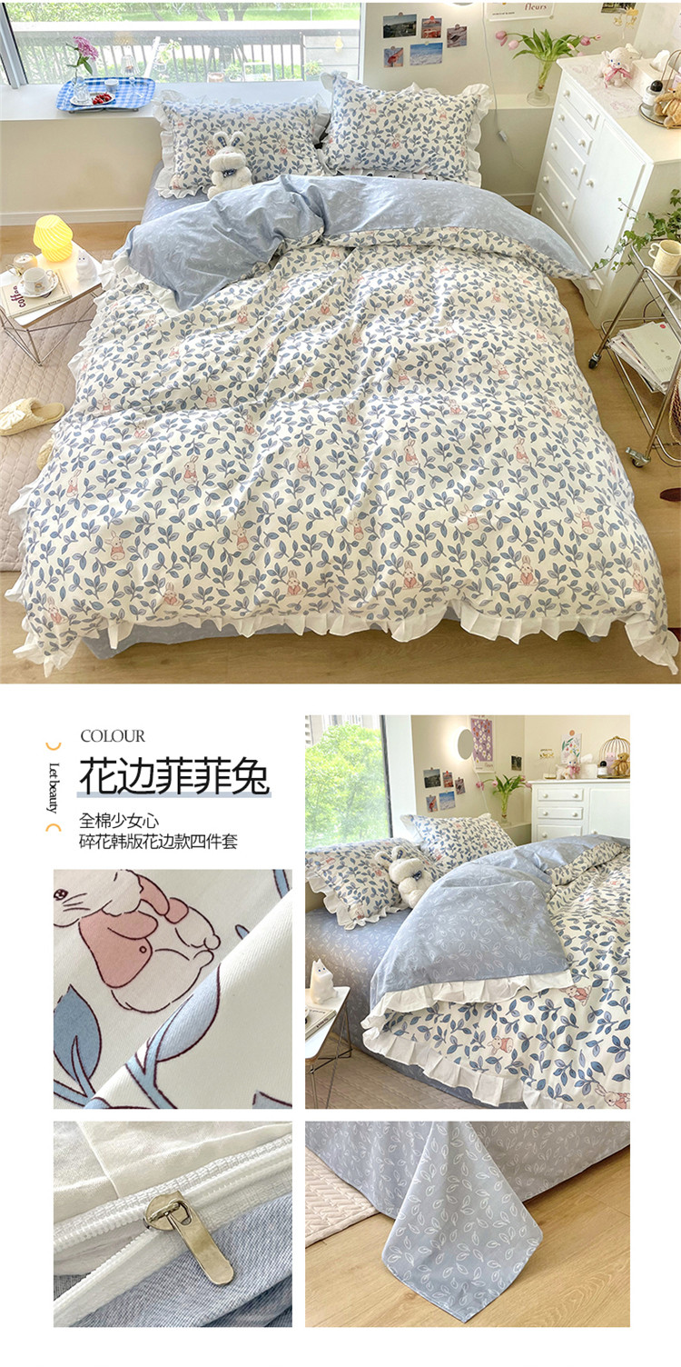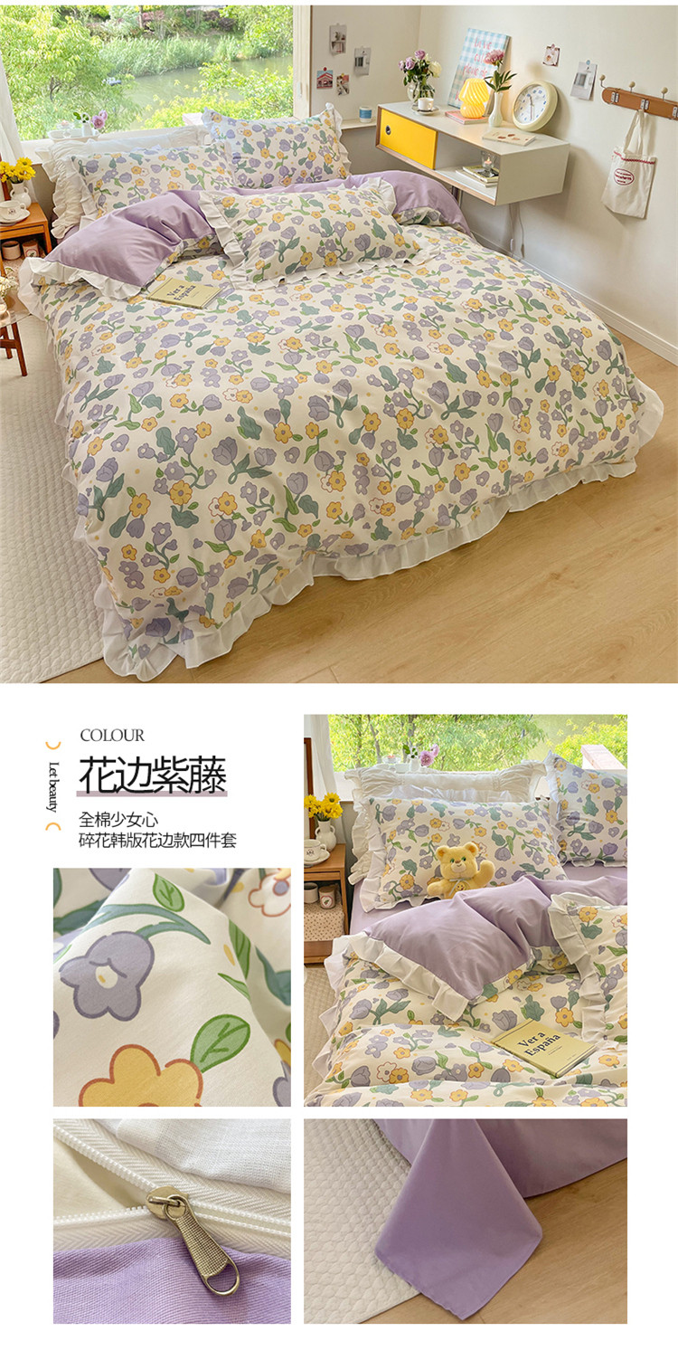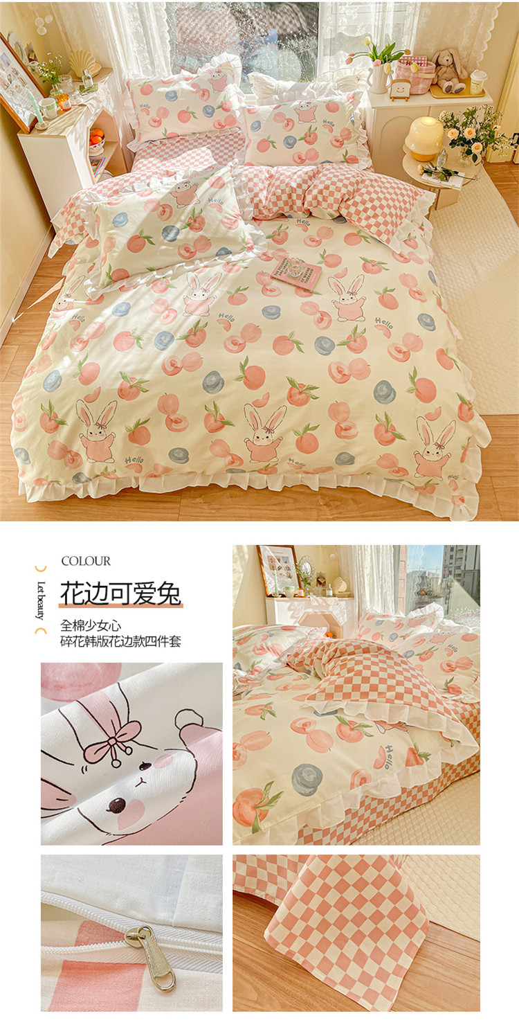 总 桃子家居2022新款仙气奶油碎花少女心韩版花边纯棉四件套