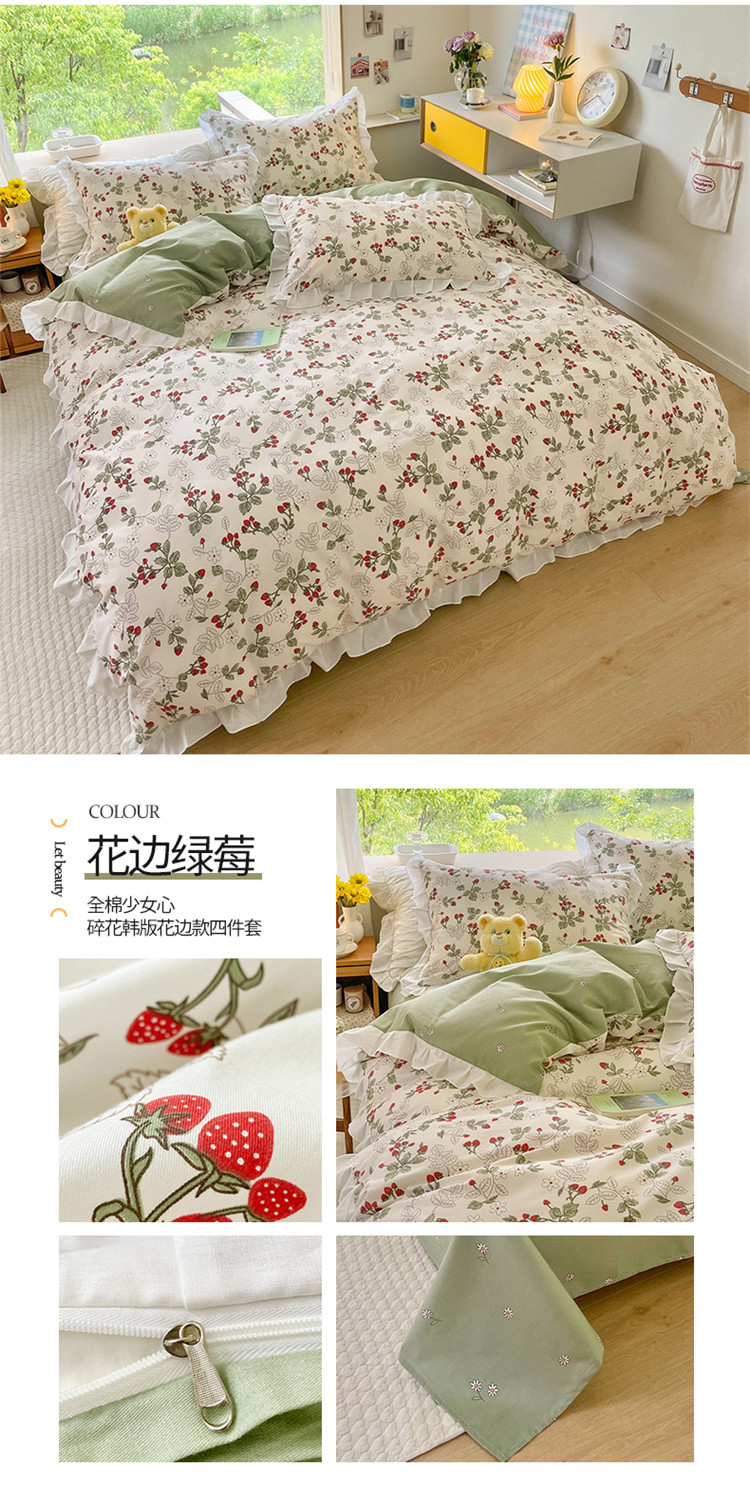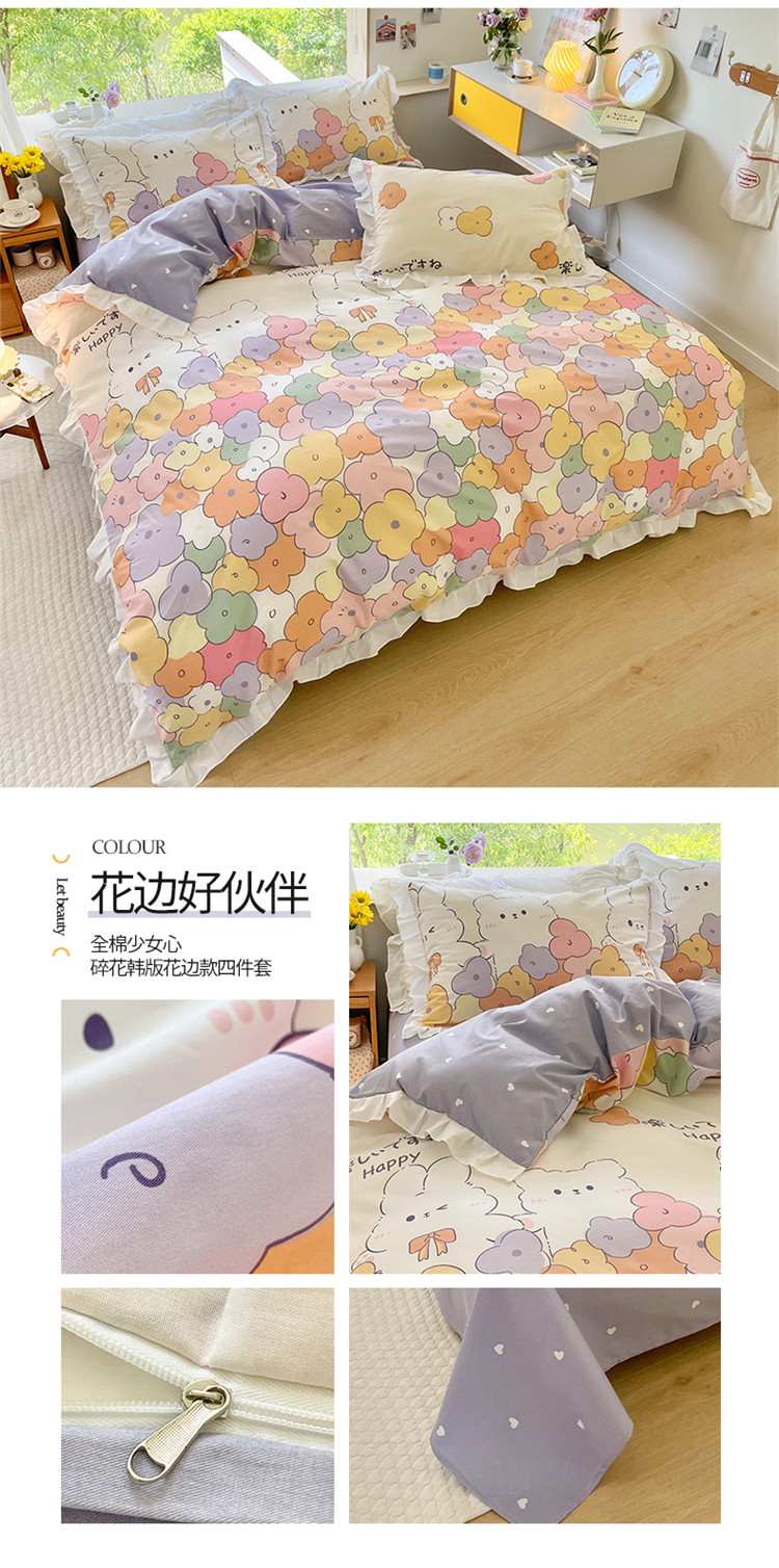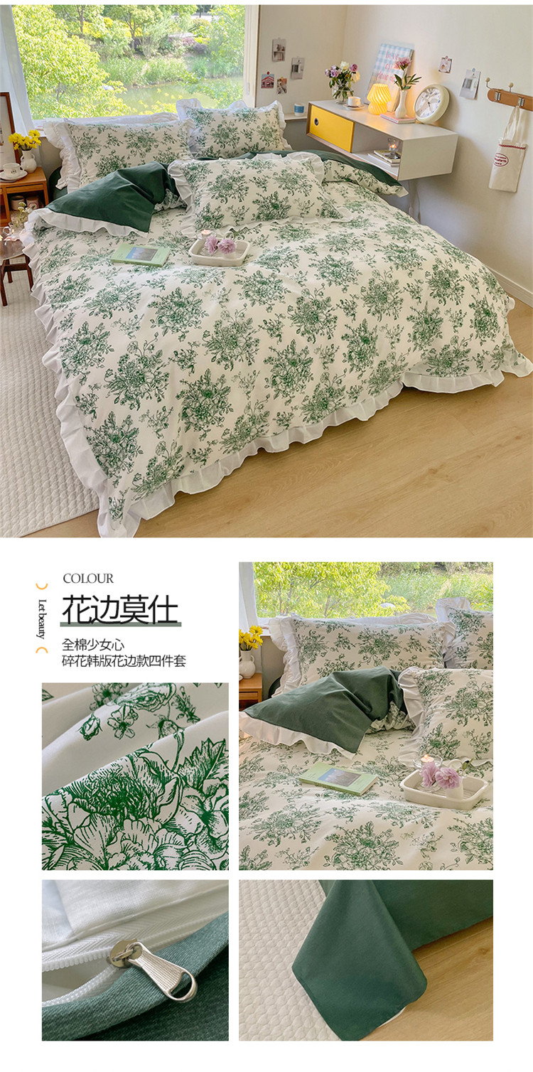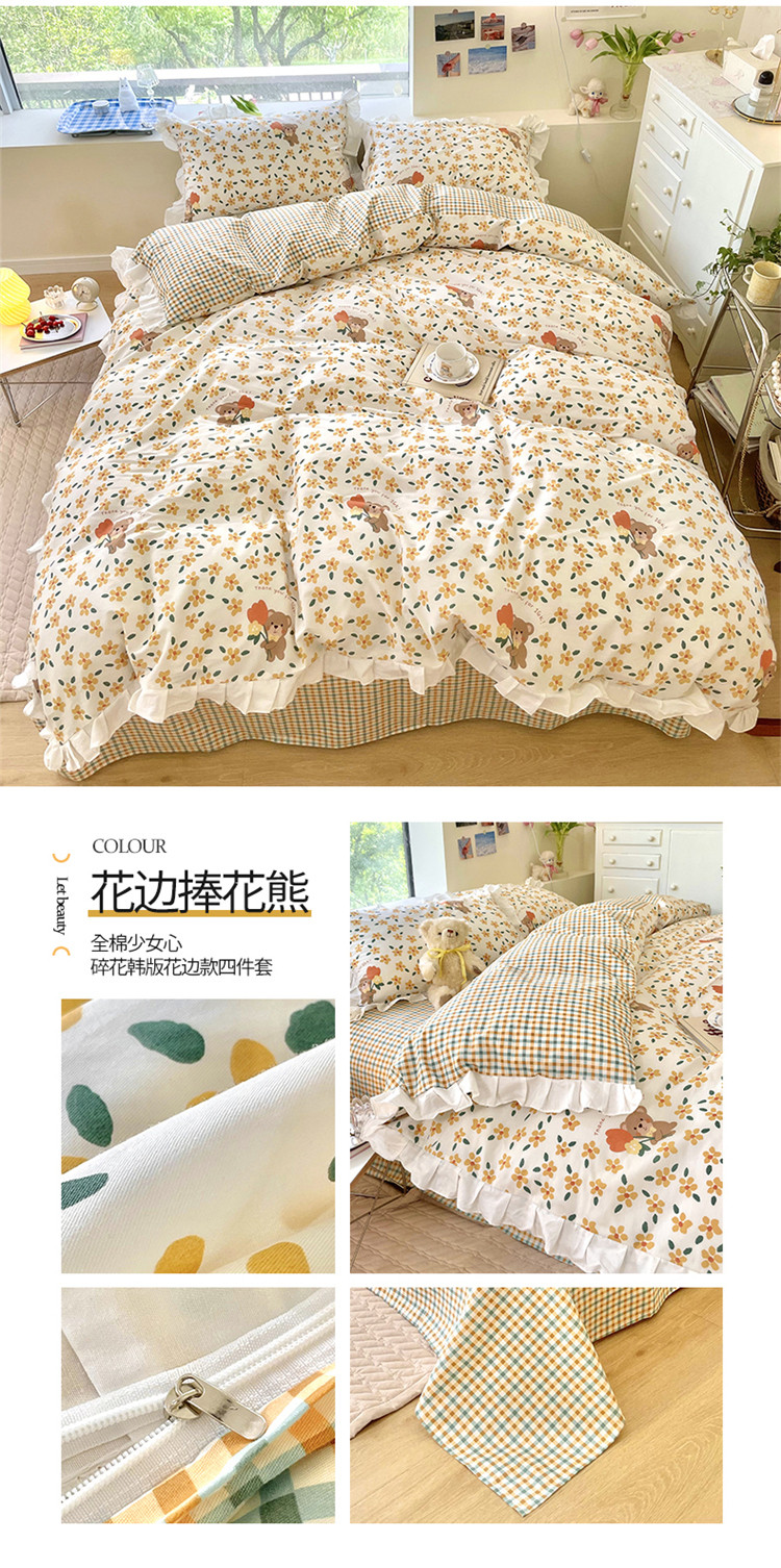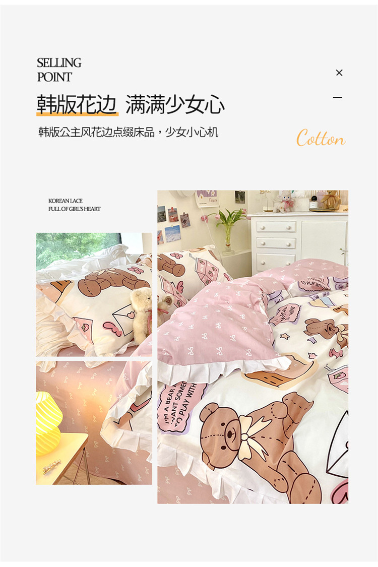 总 桃子家居2022新款仙气奶油碎花少女心韩版花边纯棉四件套