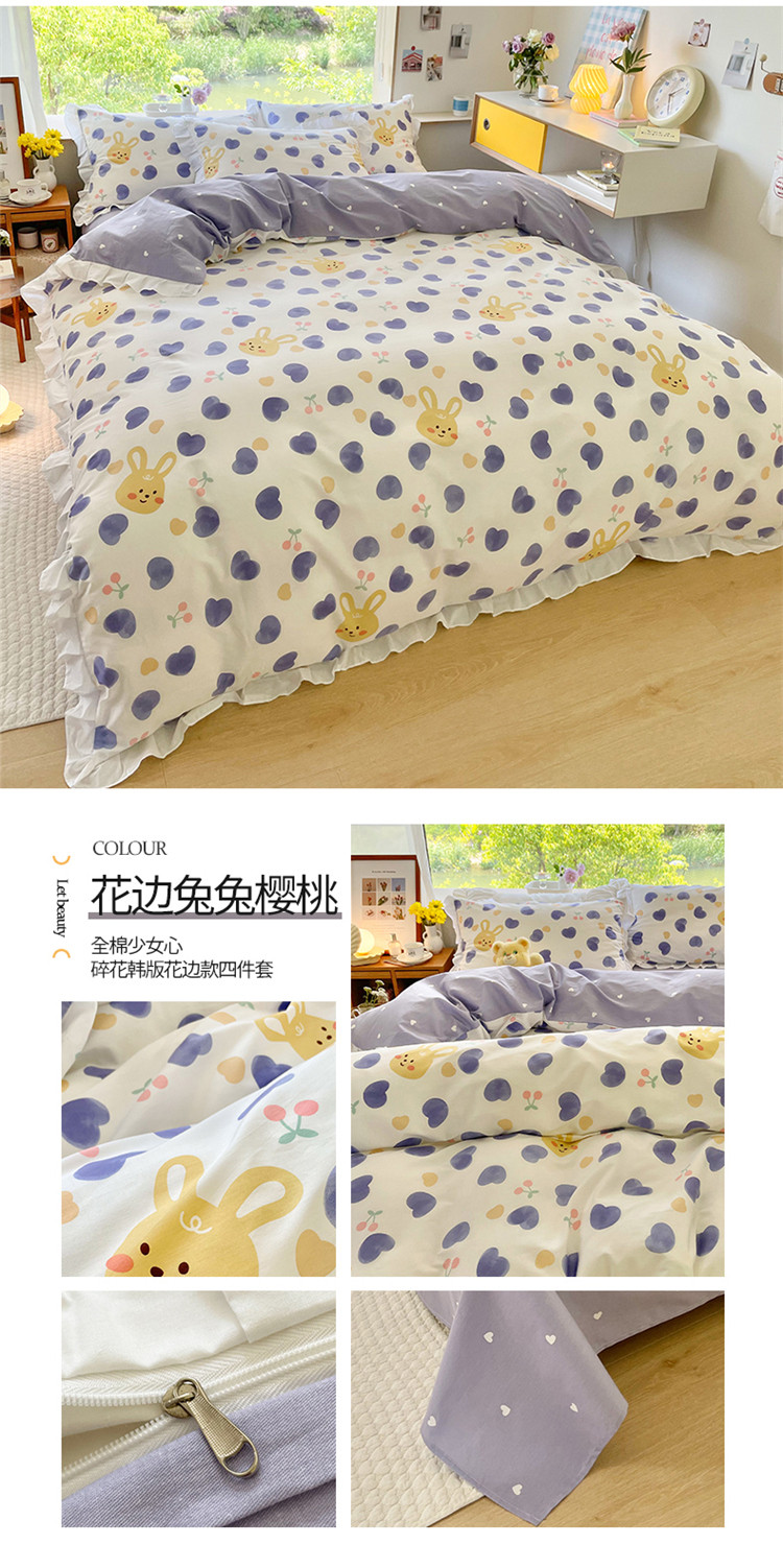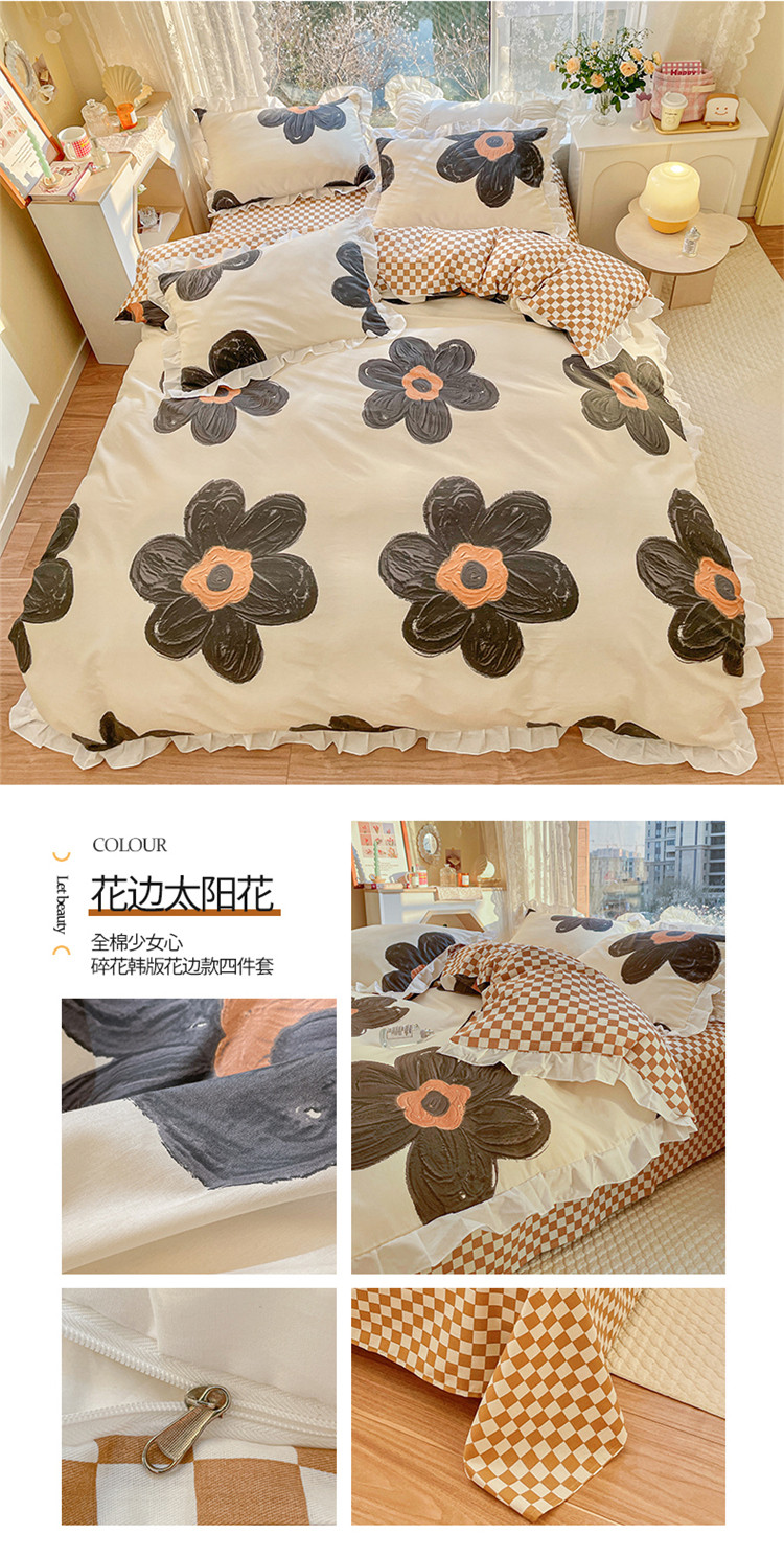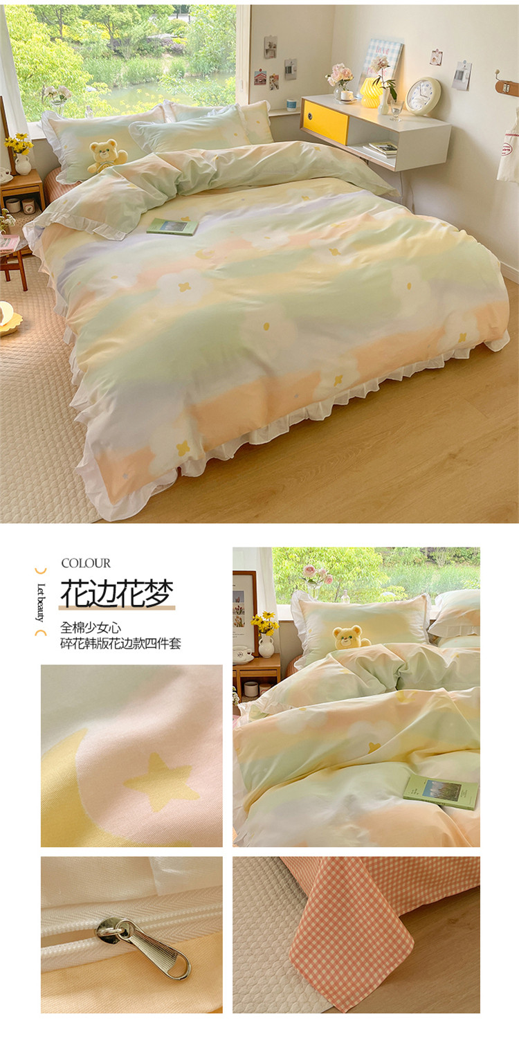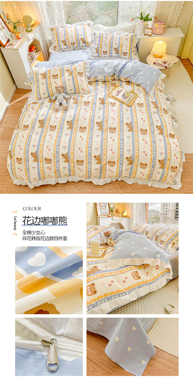 总 桃子家居2022新款仙气奶油碎花少女心韩版花边纯棉四件套