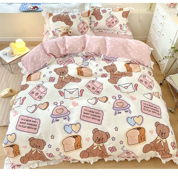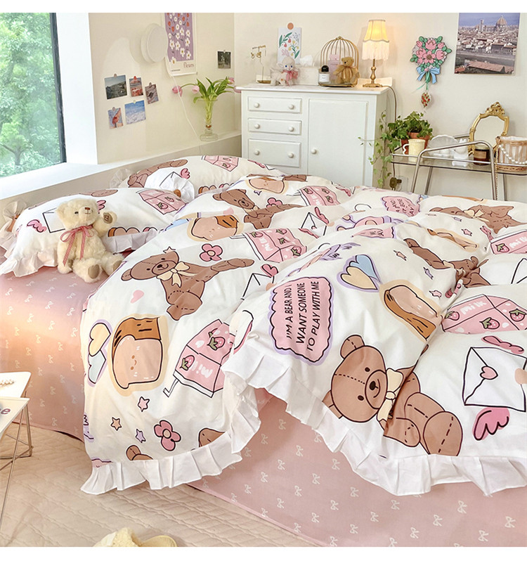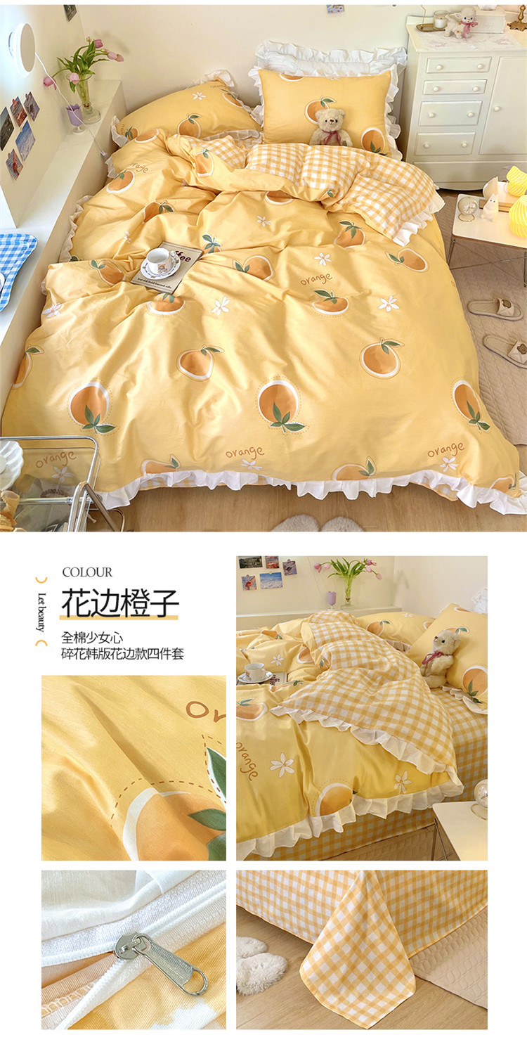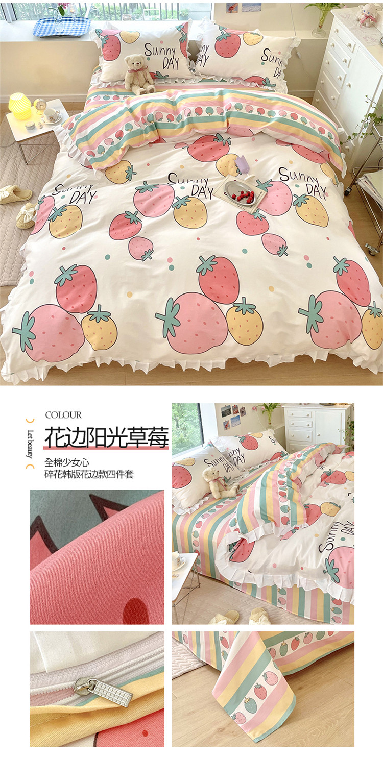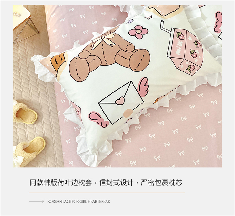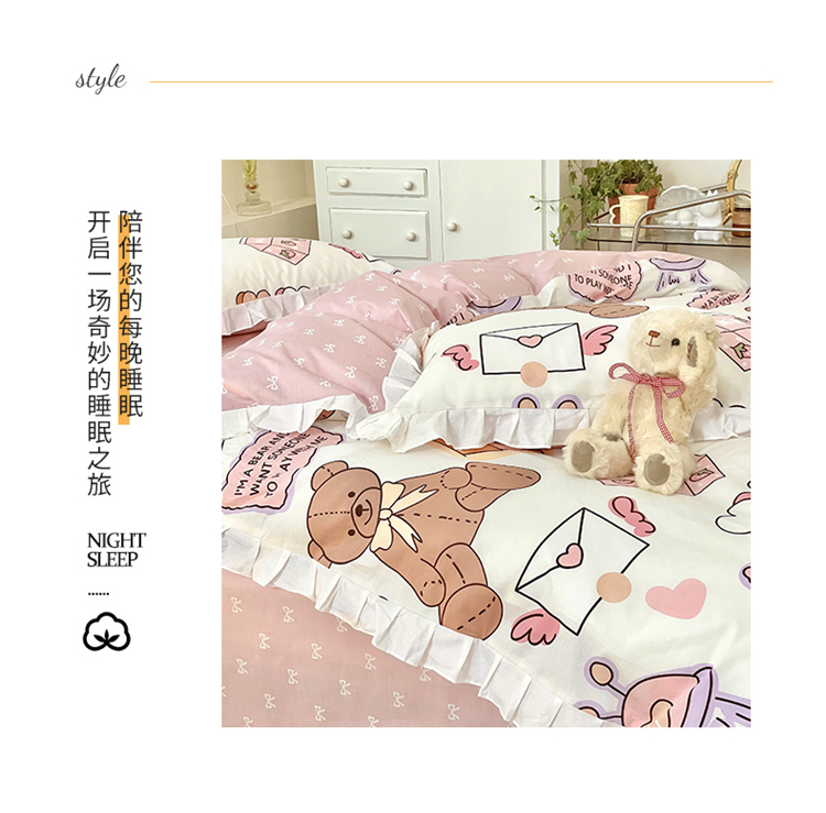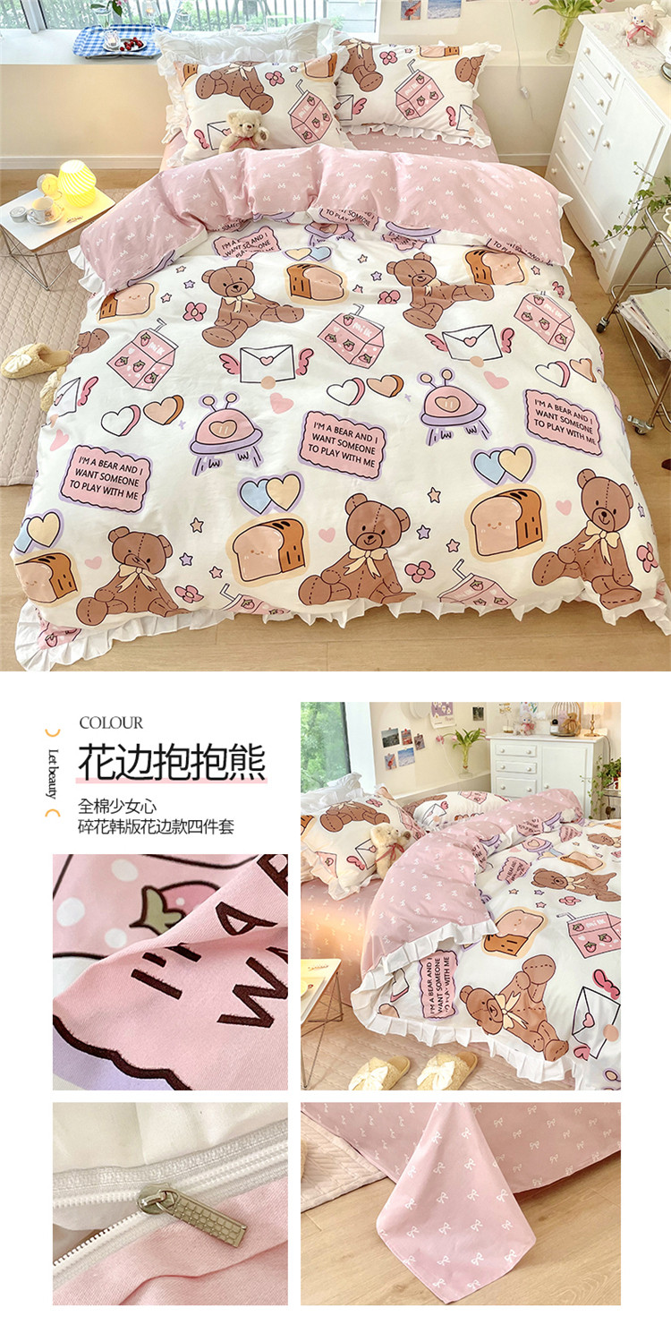 总 桃子家居2022新款仙气奶油碎花少女心韩版花边纯棉四件套
