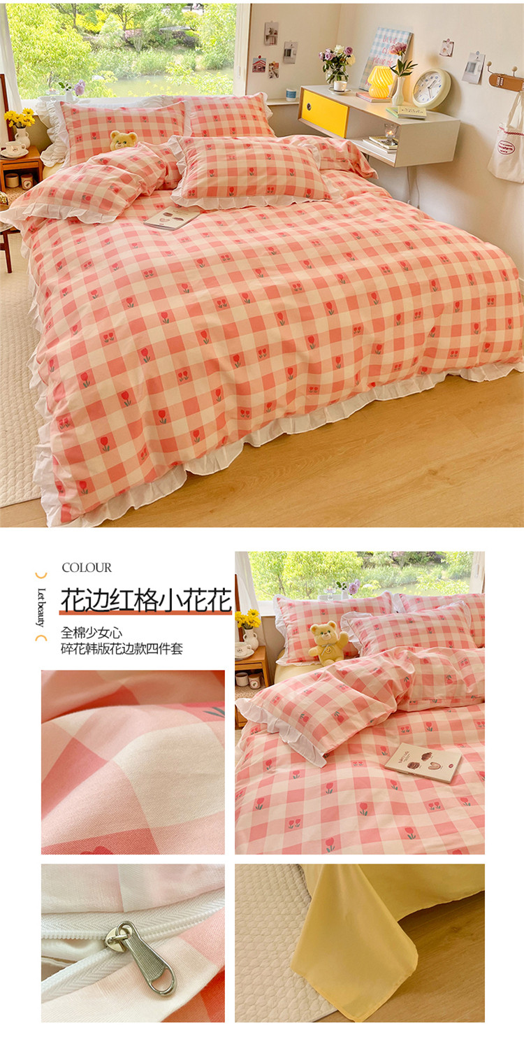 (总)桃子家居 2026新款A类韩版花边纯棉色织提花格子撞色奶油四件套,棉花边提花-蓝黄格,棉花边提花-幻境蓝格,棉花边提花-米咖格,棉花边提花-璎珞粉格