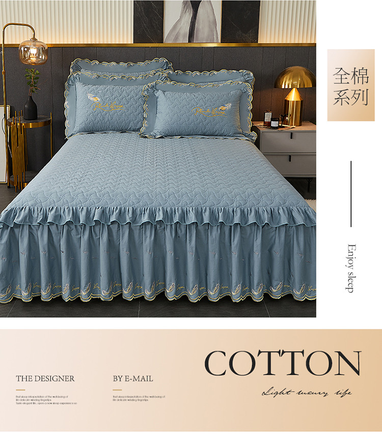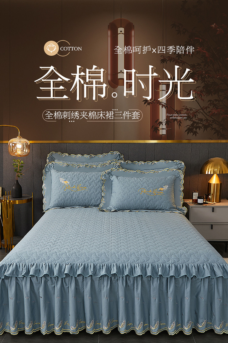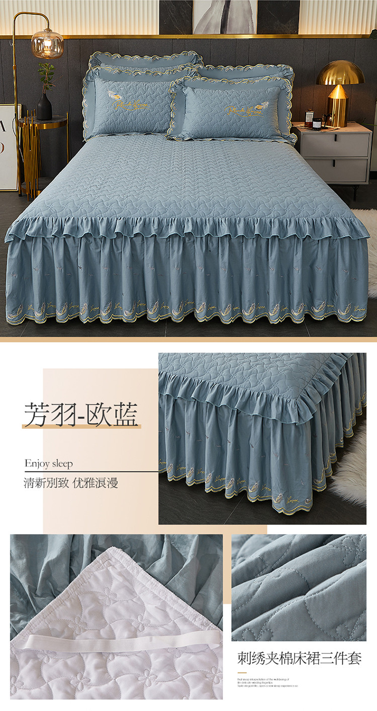 当前位置: 91家纺网 > 商品网购 > 床品套件 > 三件套 > 宜凡 2022新款全棉刺绣夹棉床裙款三件套-芳羽 芳羽欧蓝
