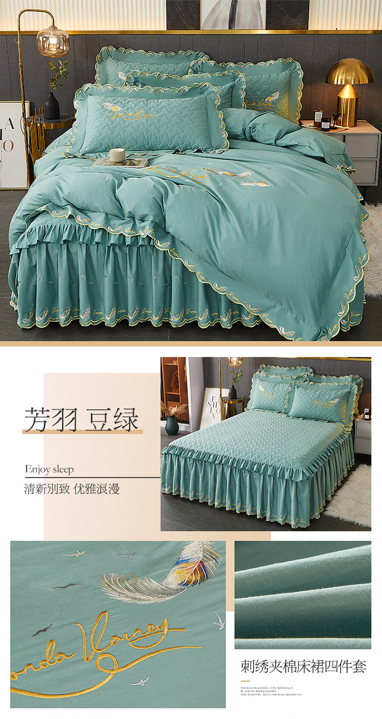 (总)宜凡 2022新款全棉刺绣夹棉床裙款四件套-芳羽
