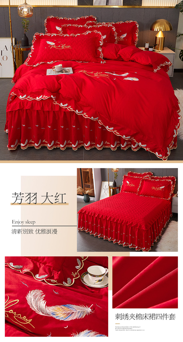 (总)宜凡家纺 2025新款婴儿绒压花全夹棉床裙四件套,韵雅-中国红,韵雅-黑天鹅