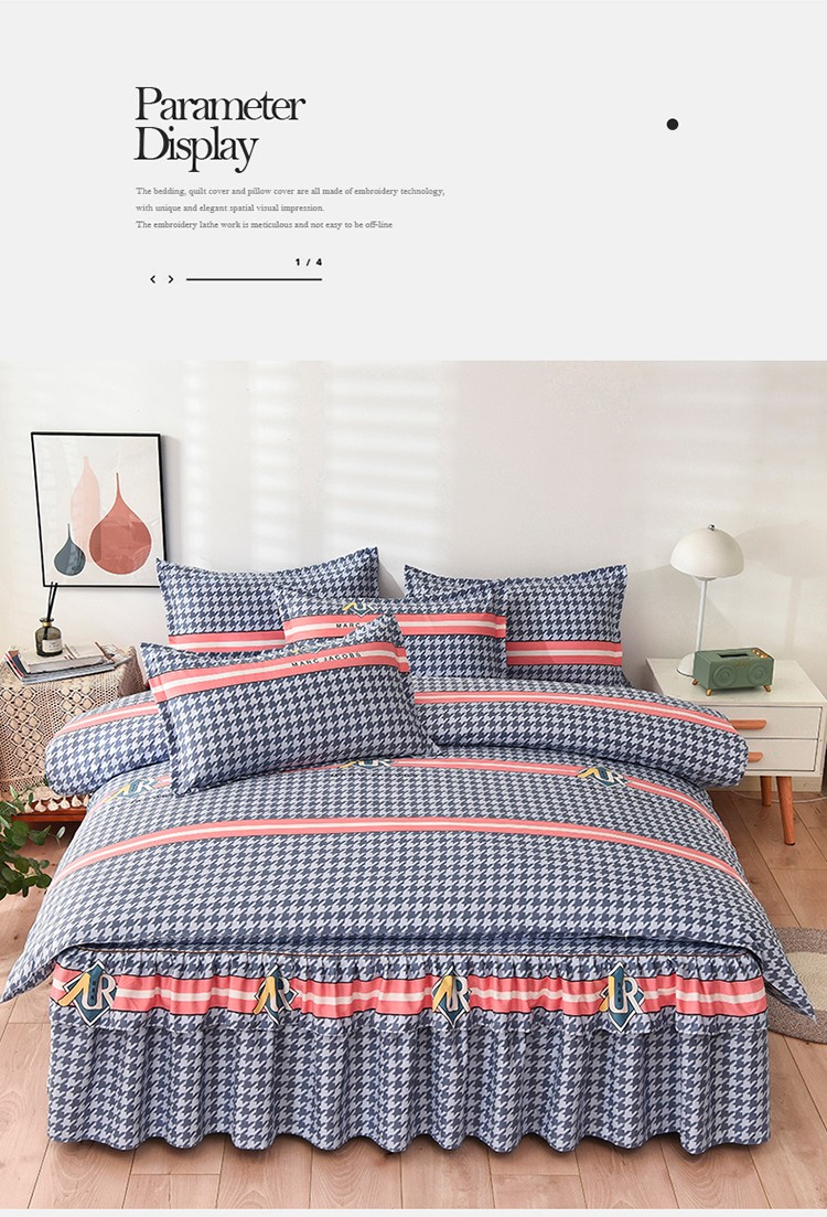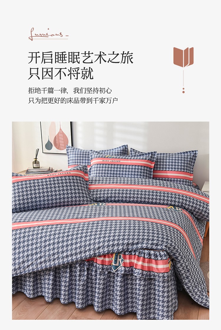 商品名称:代芙 2022新款加厚磨毛双边床裙四件套 千鸟故事