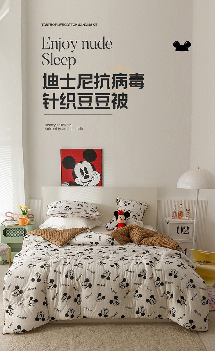 有货 迪士尼正版授权抗 病毒针织豆豆被春秋被冬被 米奇的微笑