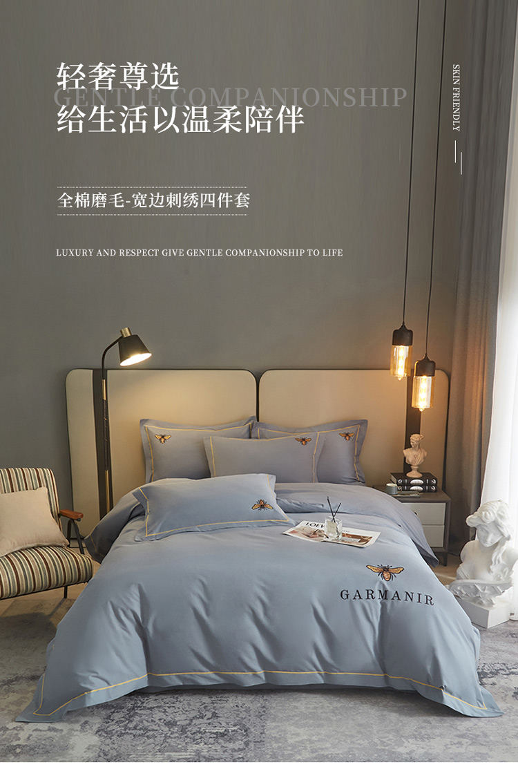 (总)启航家居 2025直播爆款全棉纯色磨毛刺绣四件套古欧时尚系列,古欧时尚宾利蓝,古欧时尚豆沙,古欧时尚浅橙,古欧时尚优雅紫,古欧时尚珍珠白
