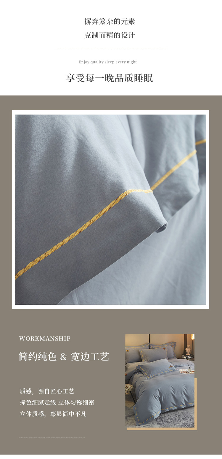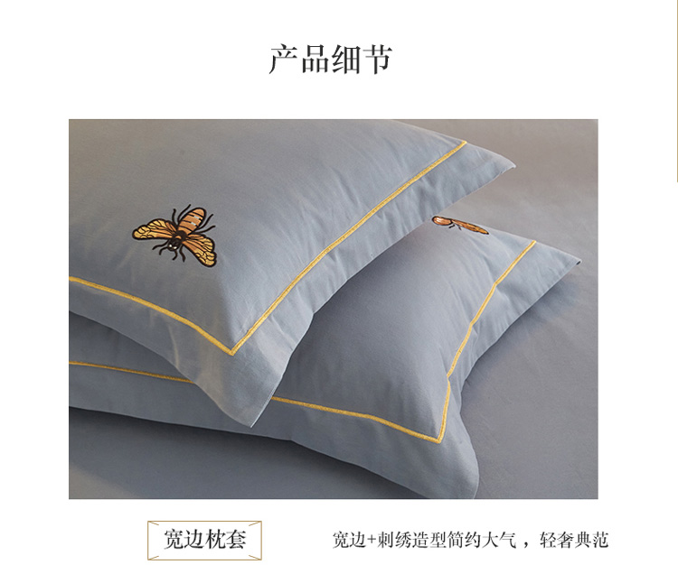 启航家居2025新款全棉磨毛宽边刺绣四件套英伦潮派系列 英伦潮派-银灰