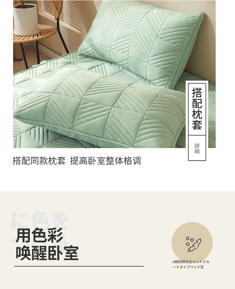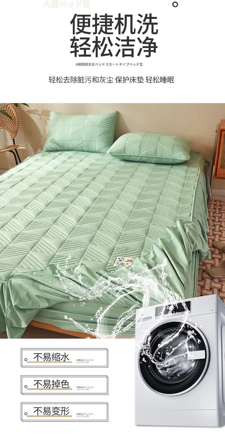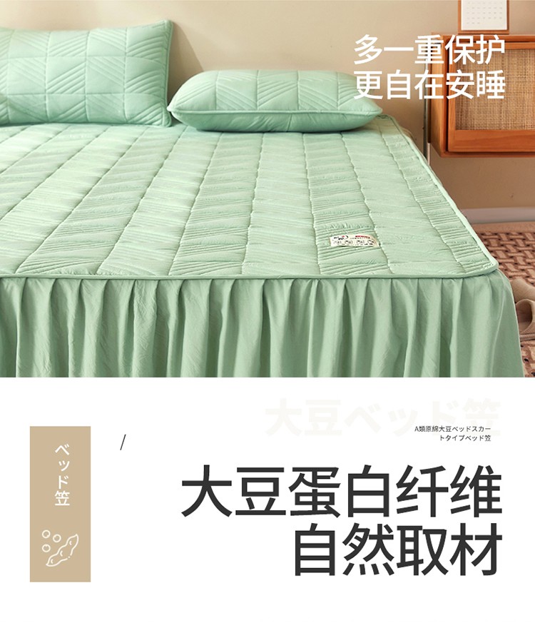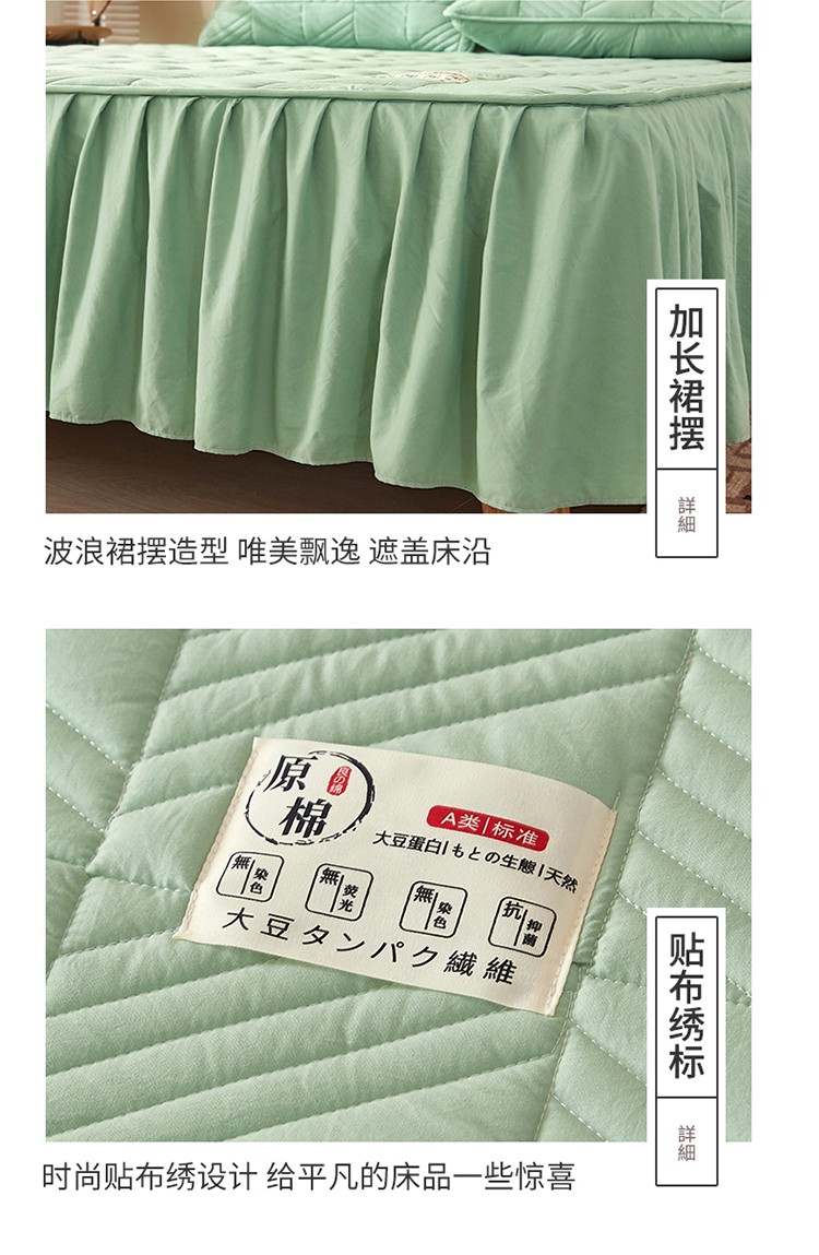 2022新款A类原棉大豆夹棉床裙款床笠全棉原棉床笠错落格抹茶