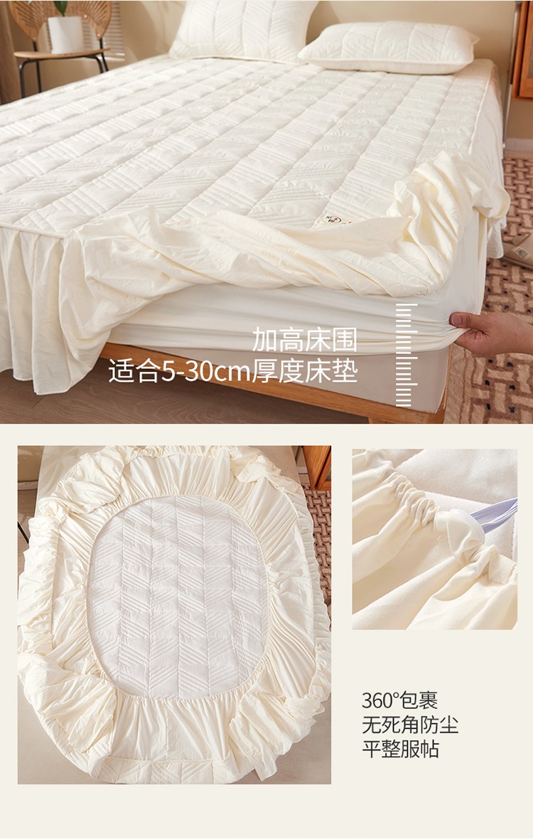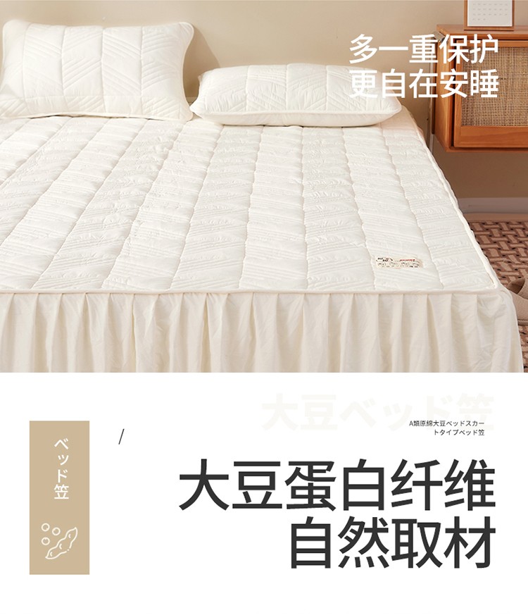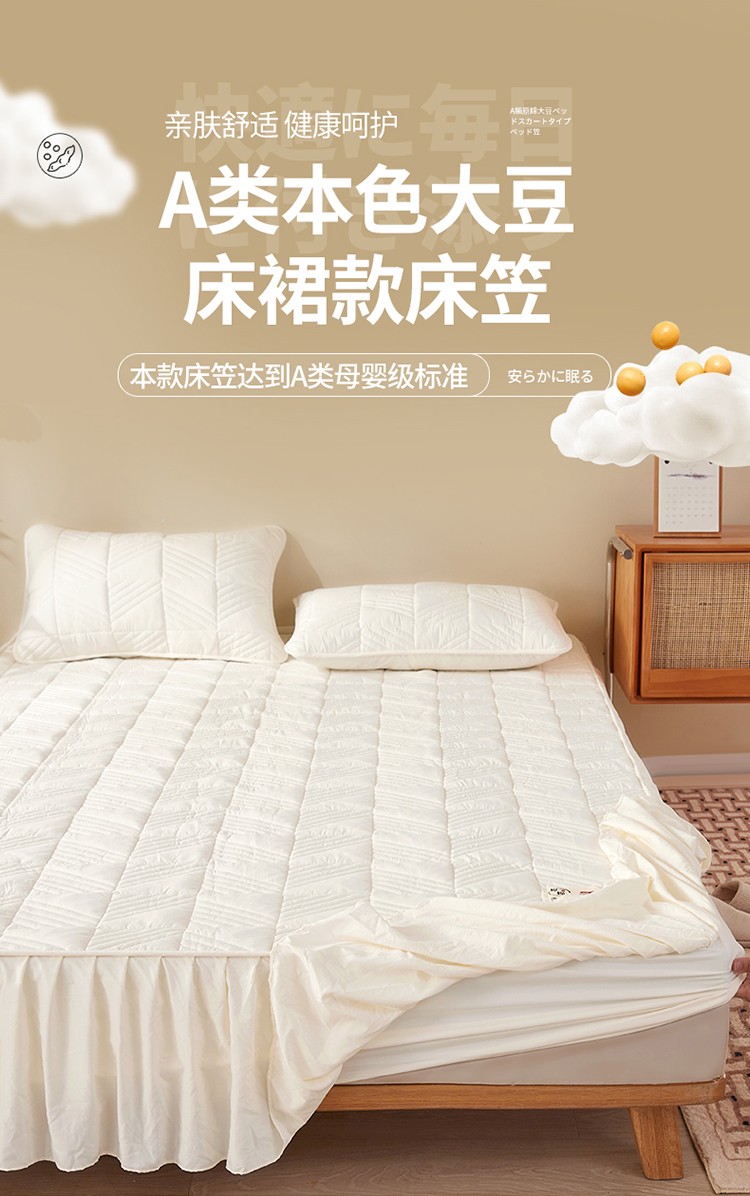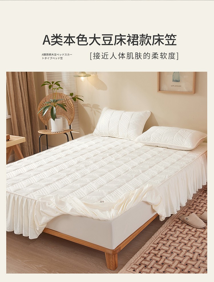 (总)居眠2022新款A类原棉大豆夹棉床裙款床笠本色大豆床笠