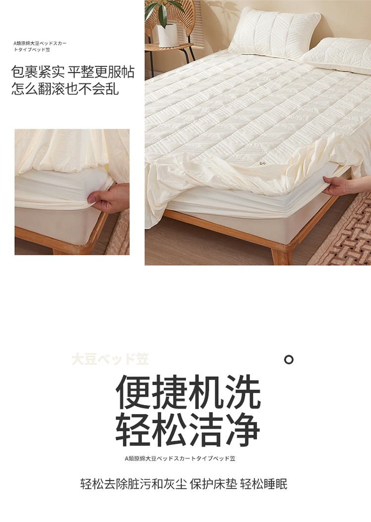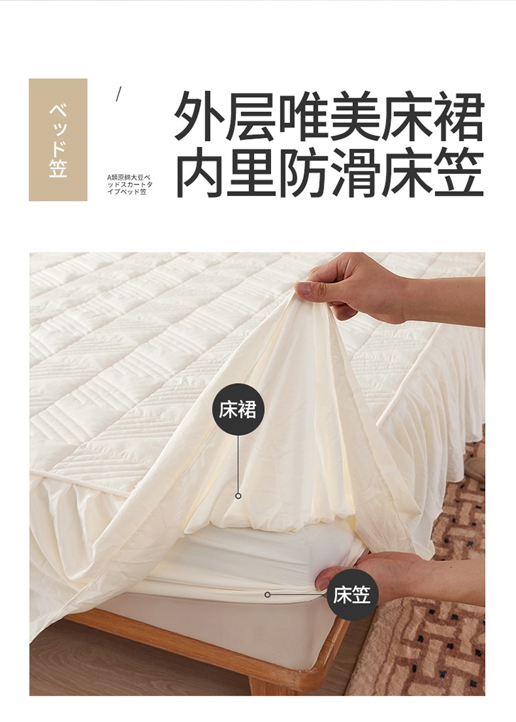 商品名称:(总)居眠2022新款A类原棉大豆夹棉床裙款床笠本色大豆床笠