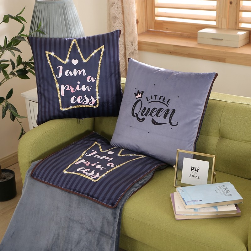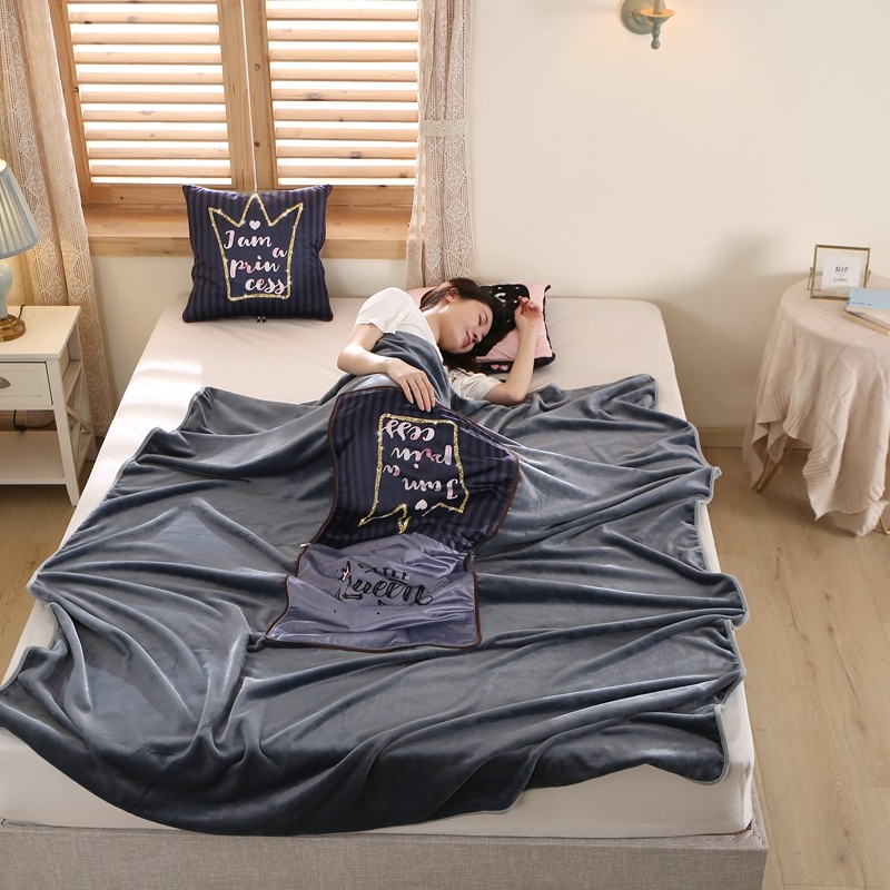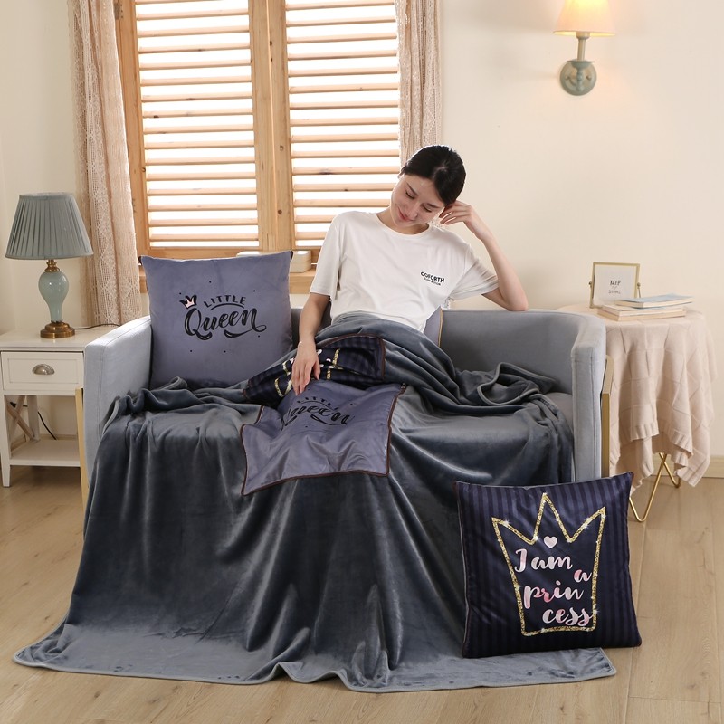 素玖抱枕被 2023新款外面水晶绒里面灰色法兰绒毛毯抱枕毯 皇冠