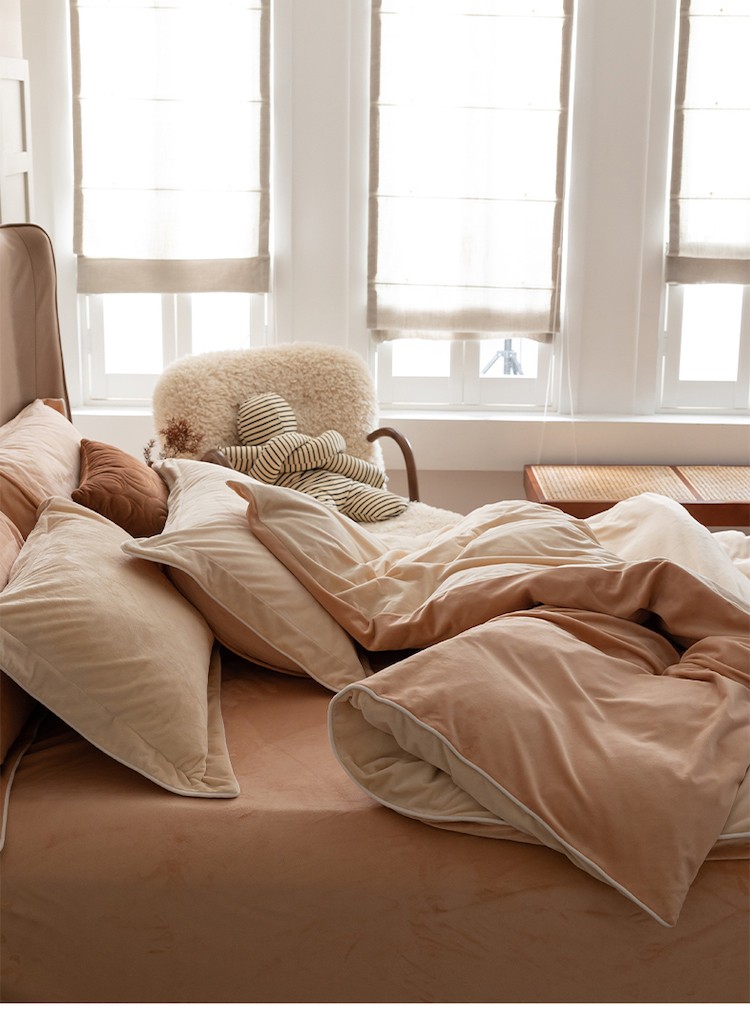 当前位置: 91家纺网 > 商品网购 > 床品套件 > 四件套 > 磨绒四件套 > 万盛家纺 2025新款德芙绒牛奶绒法莱双拼四件套 浅米-奶油橘