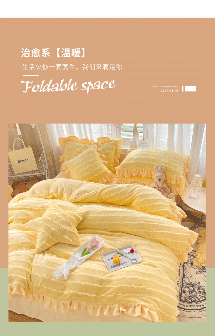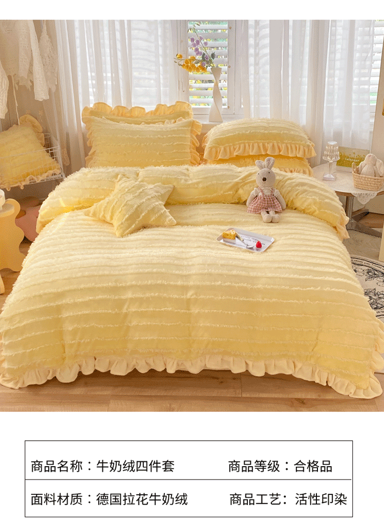 欧冠家纺 2022新款 高端牛奶绒提花四件套 柠檬黄