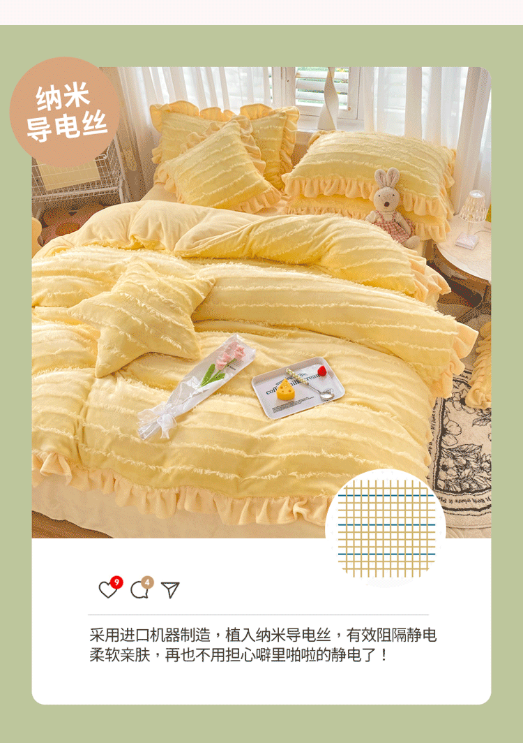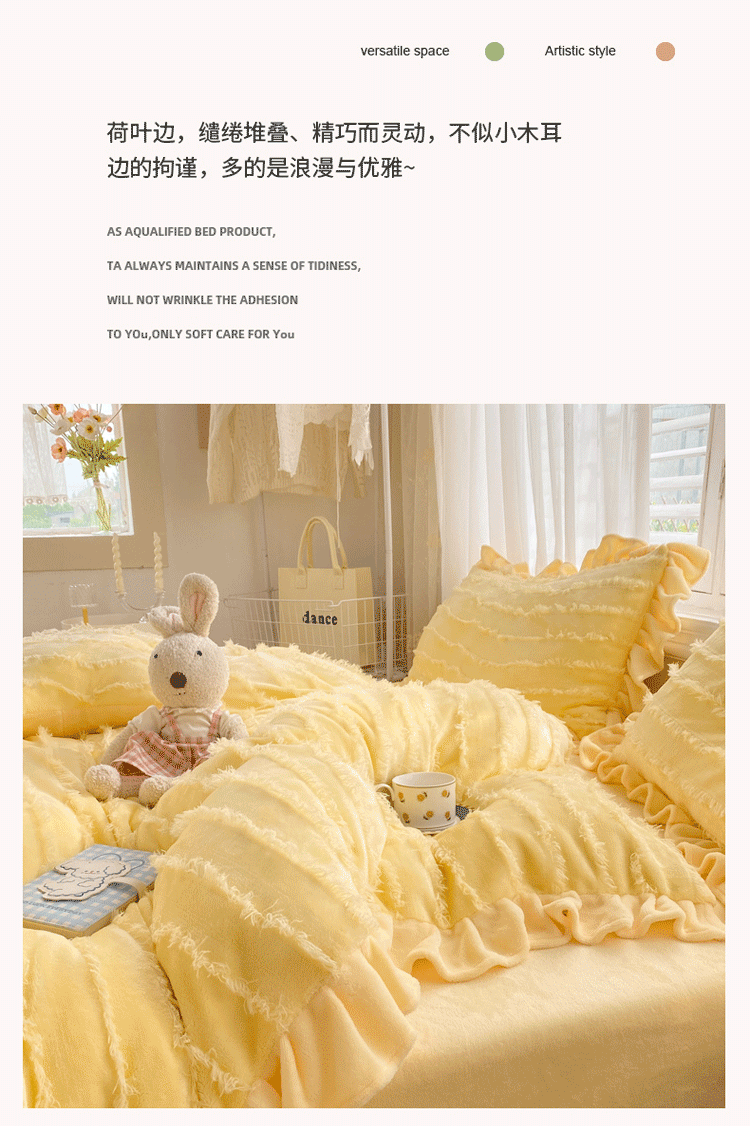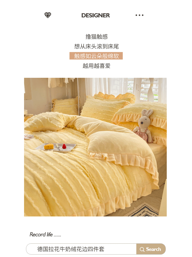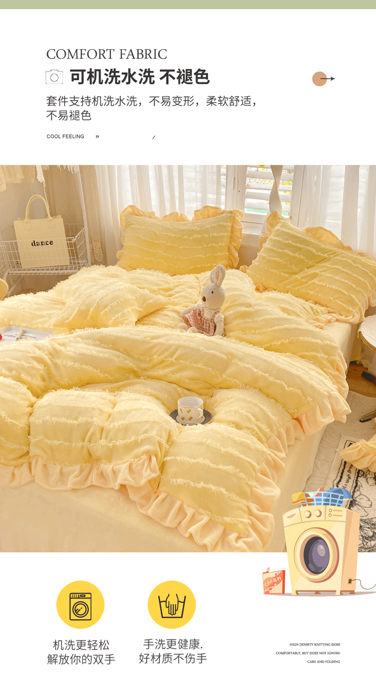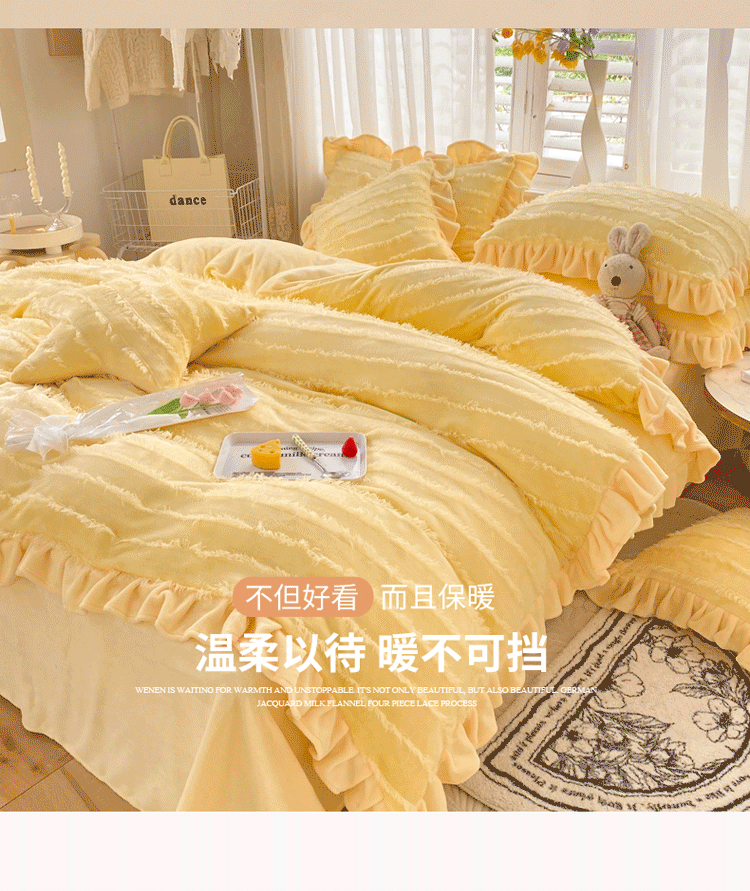 绒世界 2022新款 高端牛奶绒提花四件套 柠檬黄