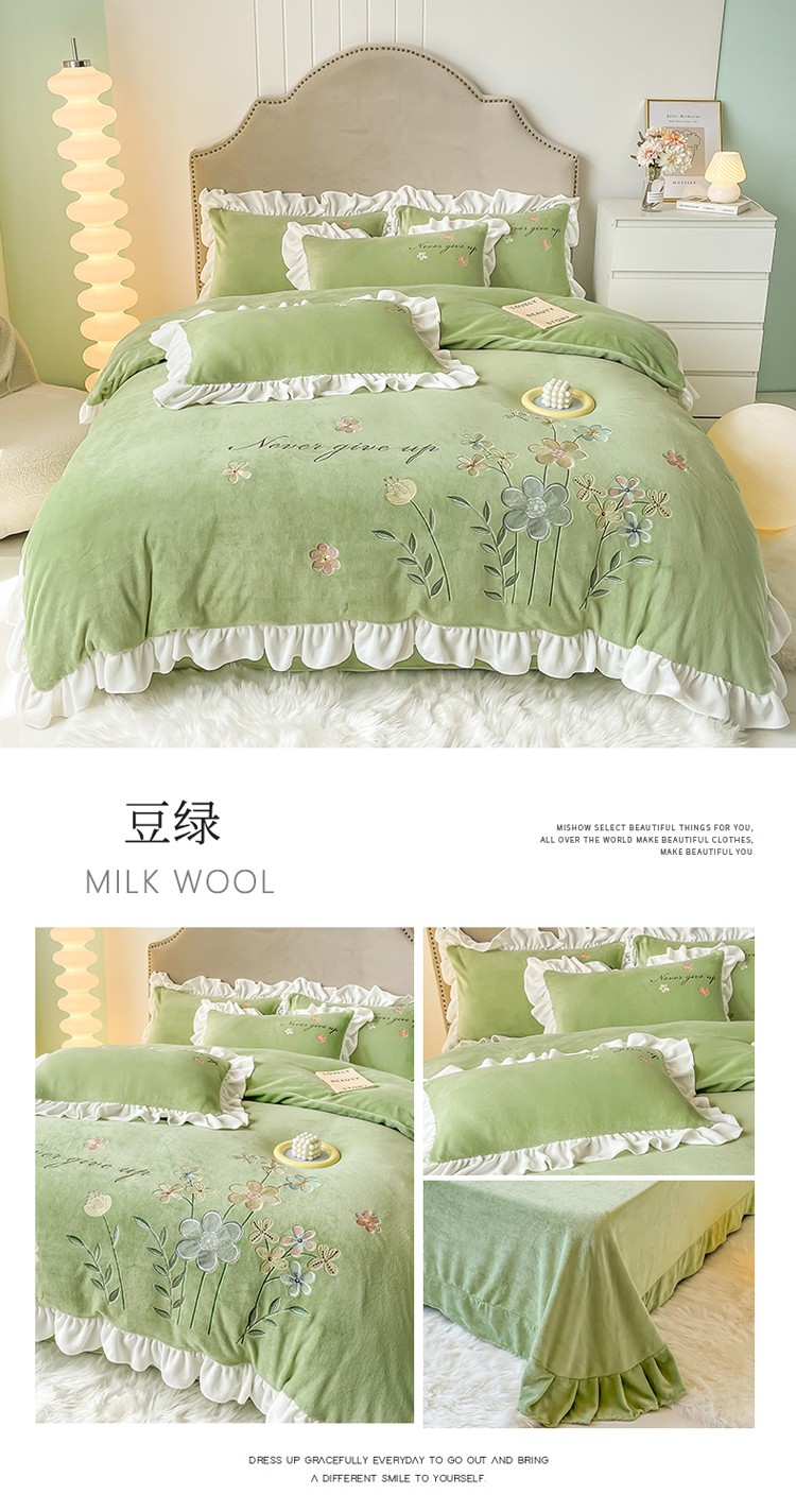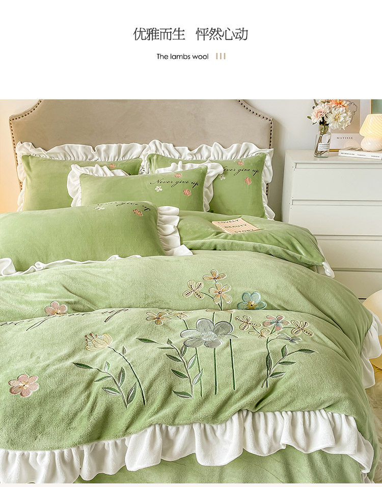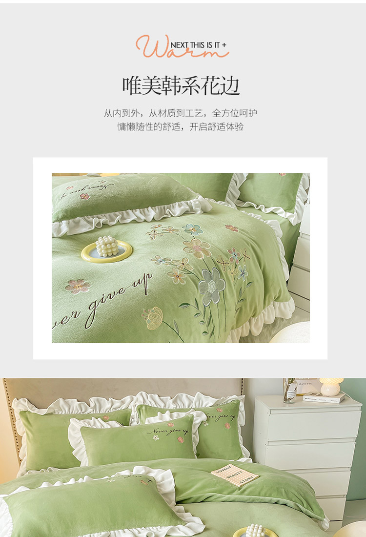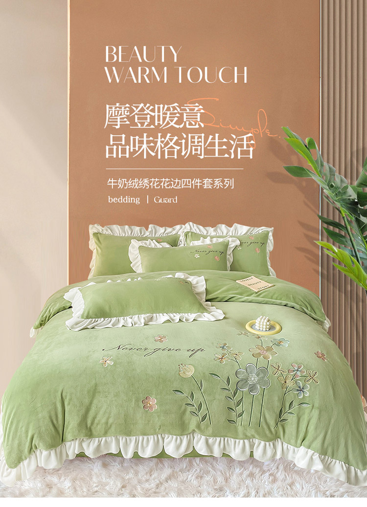 (总)凯美家居 2025新款A类牛奶绒蕾丝刺绣四件套-锦上添花,锦上添花-浅绿,锦上添花-粉玉,锦上添花-奶白,锦上添花-浅黄,锦上添花-浅蓝,锦上添花-浅紫