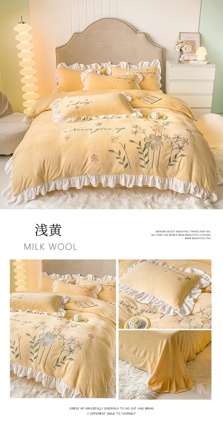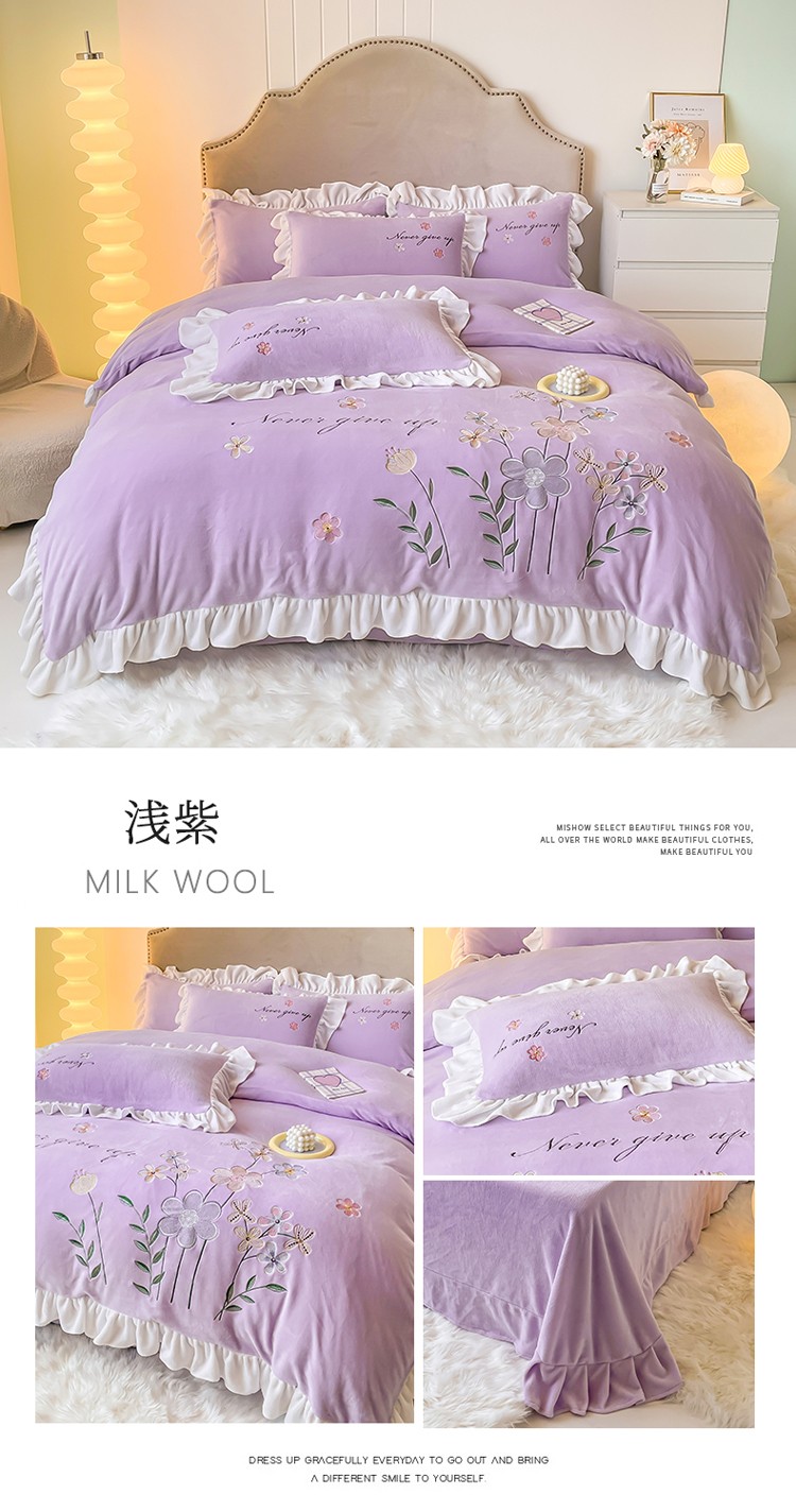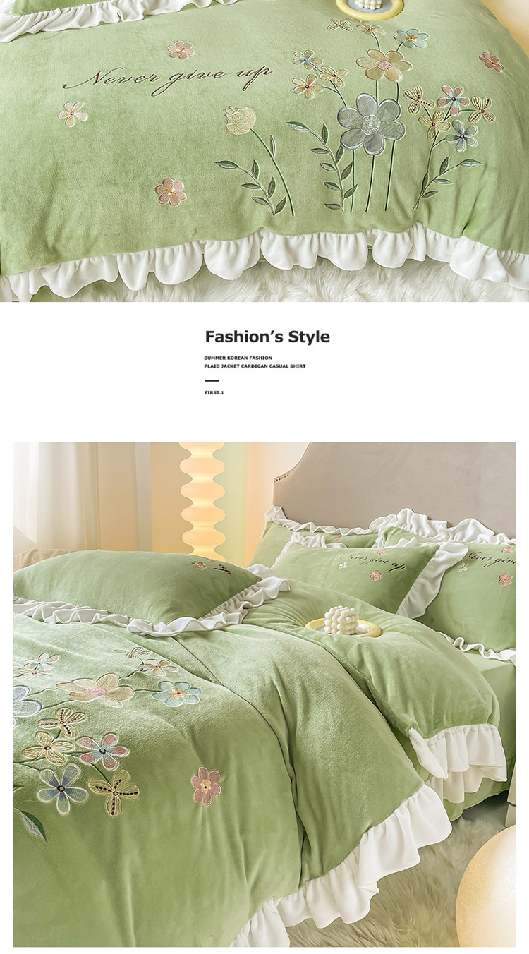 (总)凯美家居 2025新款A类牛奶绒蕾丝刺绣四件套-锦上添花,锦上添花-浅绿,锦上添花-粉玉,锦上添花-奶白,锦上添花-浅黄,锦上添花-浅蓝,锦上添花-浅紫
