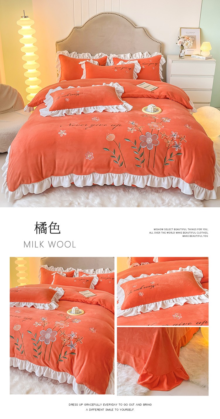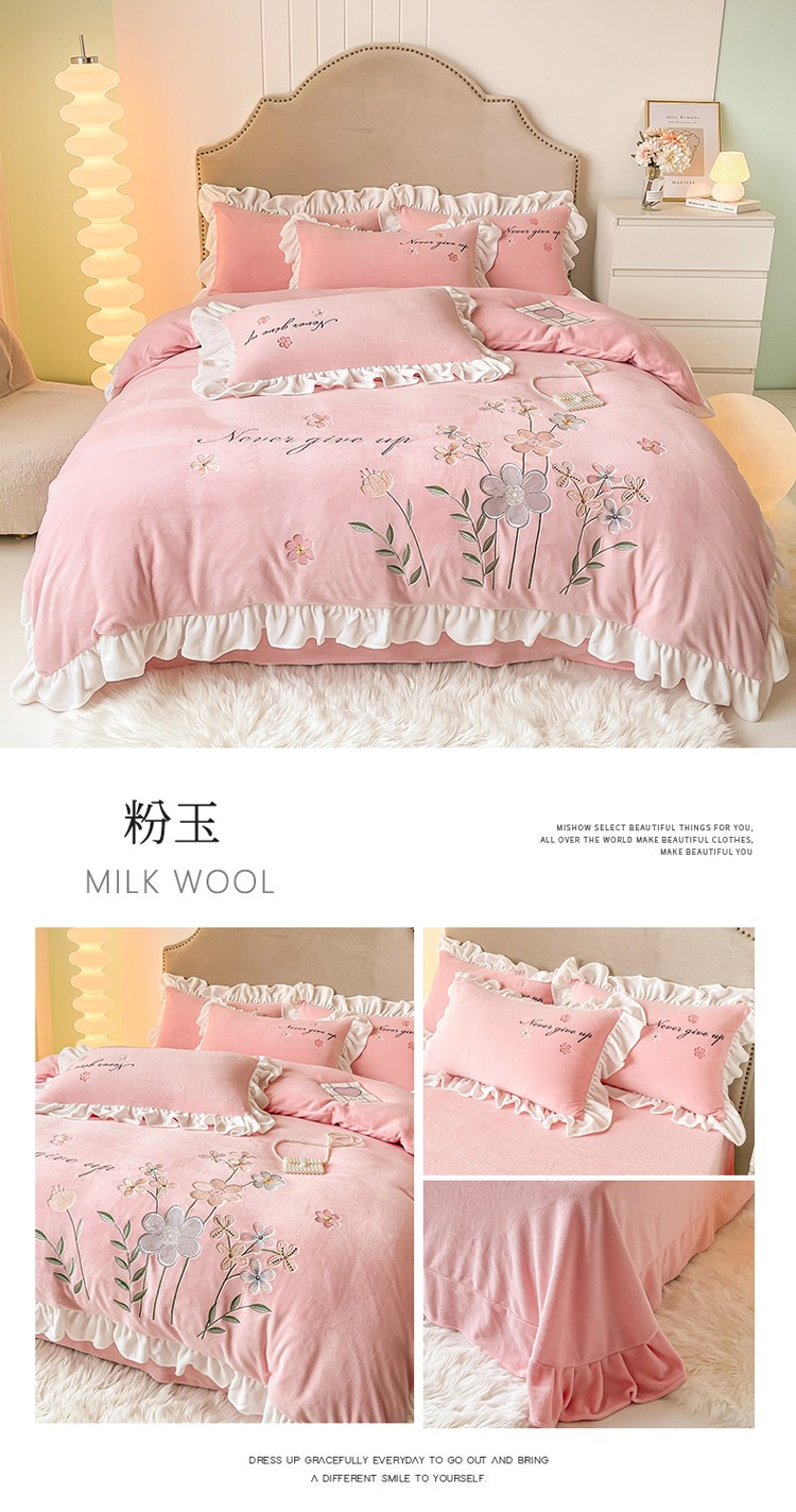 (总)凯美家居 2025新款牛奶绒重工刺绣特种工艺四件套-可露丽,可露丽-粉玉,可露丽-蓝,可露丽-奶白,可露丽-浅绿