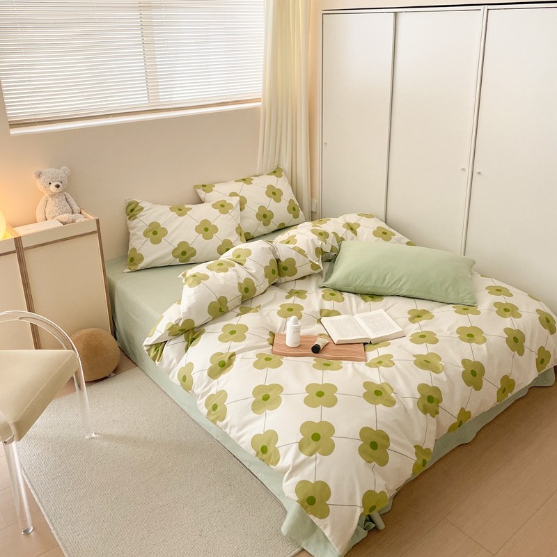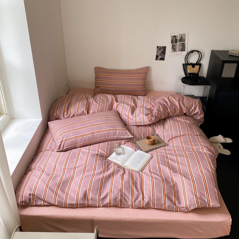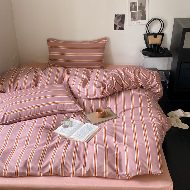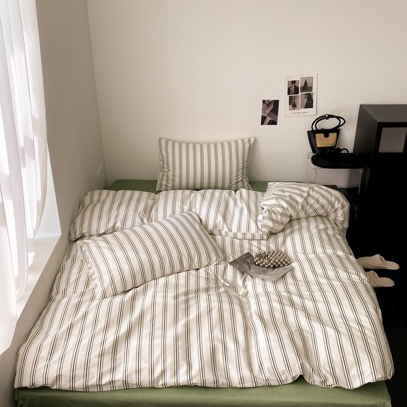 (总)昔可 2023新款全棉ins格子混搭系列四件套,ins简约绿格,粉蓝格,开心果格,学院格纹,粉绿格,海盐兰格,黄绿格,夏日蓝条,芝士黄条,紫芋泥芝士格