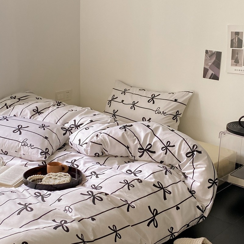 (总)昔可家纺 2024新款印花牛奶绒四件套系列-ins少女系列,芭蕾蛋糕,芭蕾美学,粉格蝴蝶结,黑粉芭蕾蝴蝶结,蓝格蝴蝶结,樱桃奶油蛋糕