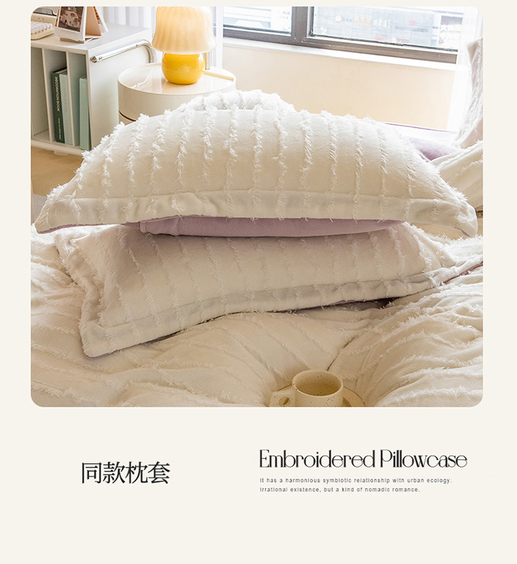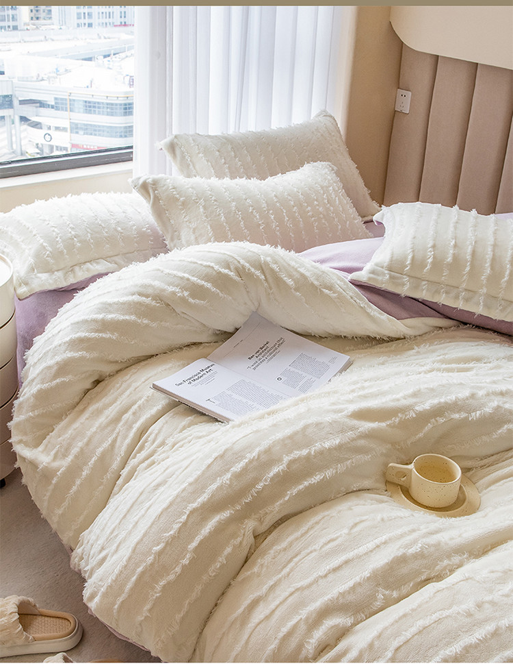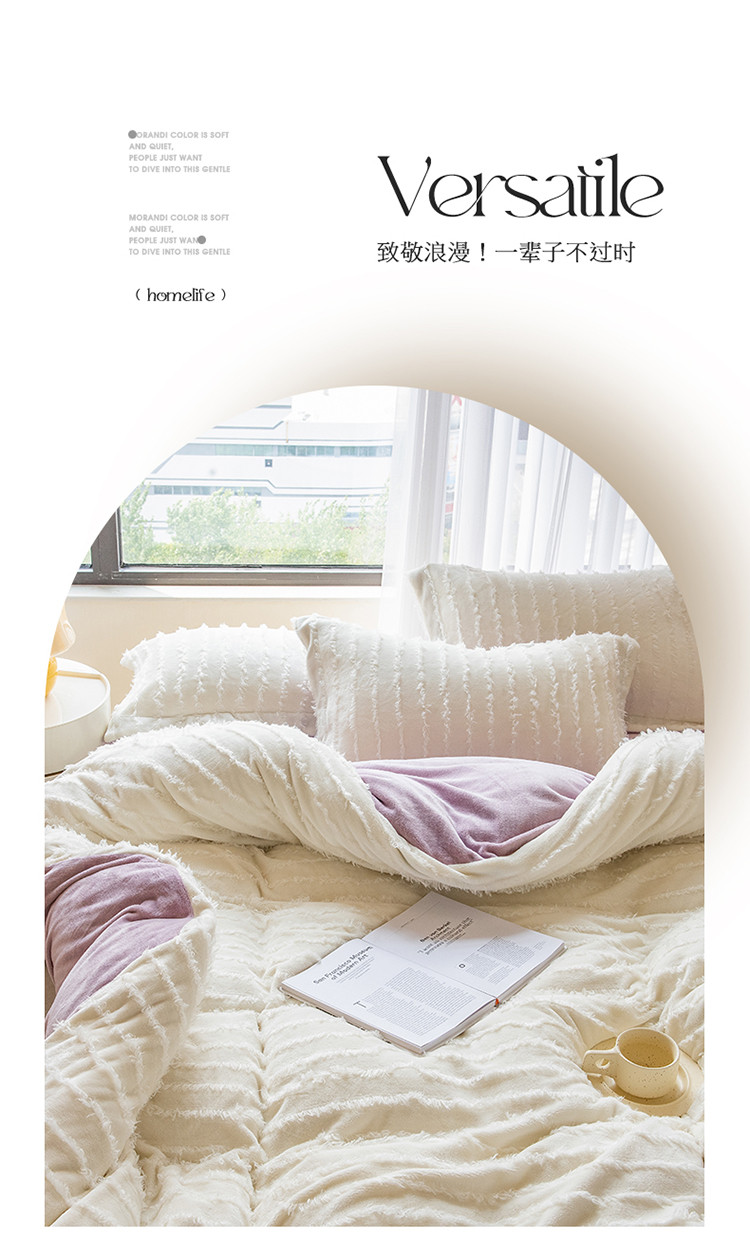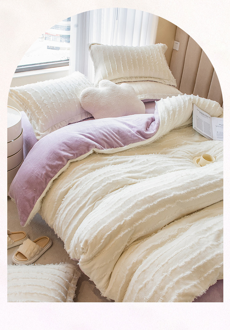 骏腾 2022直播爆款纯色流苏牛奶绒四件套法莱宝宝绒 朵拉-奶白芋紫