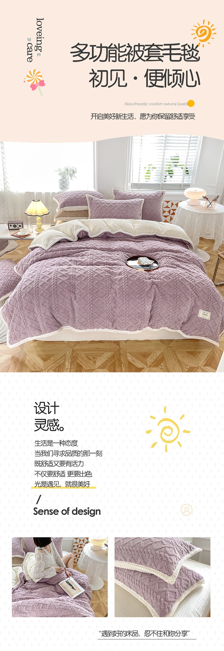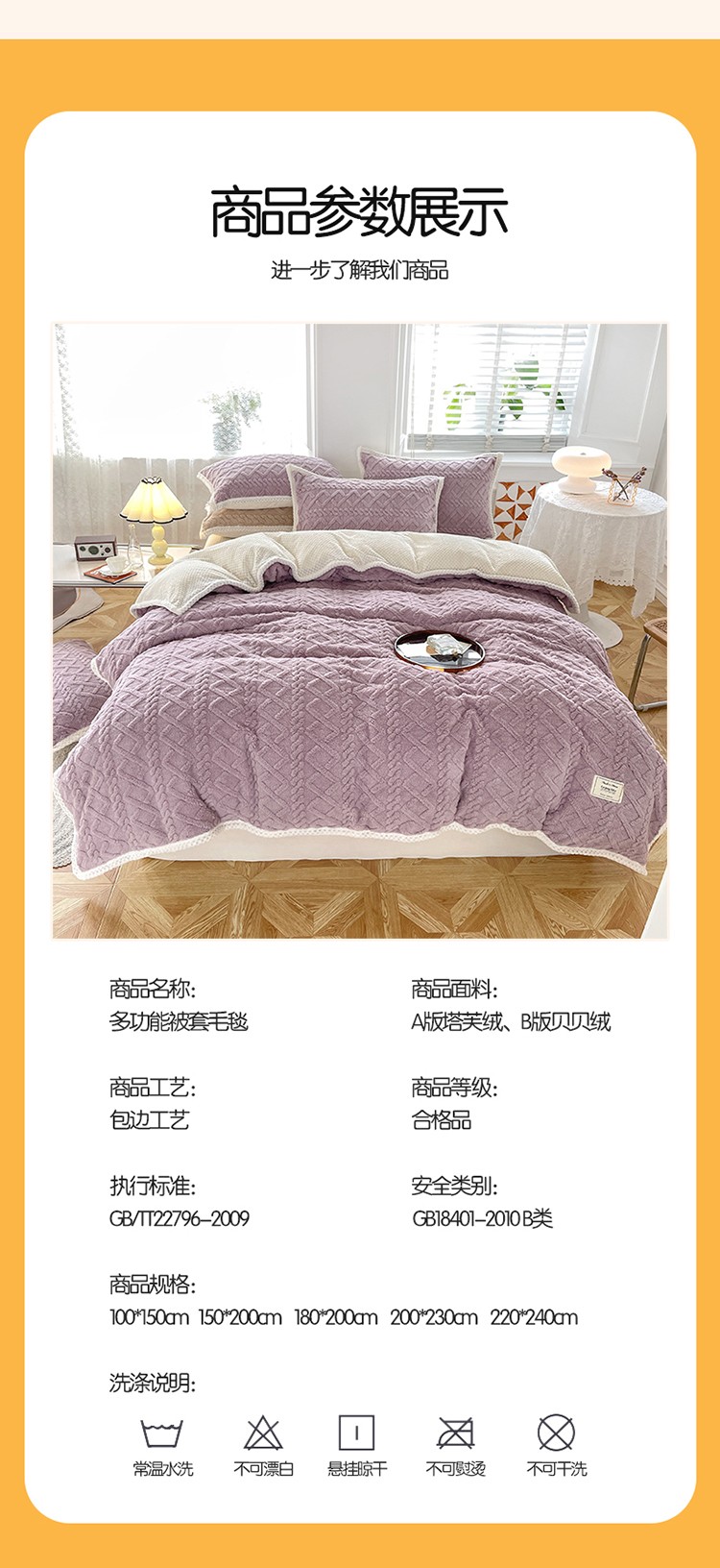 当前位置: 91家纺网 > 商品网购 > 毛毯休闲毯绒毯 > 毛毯 > 宜派家纺 2022新款塔芙绒贝贝绒纯色多功能被套毯 芋紫